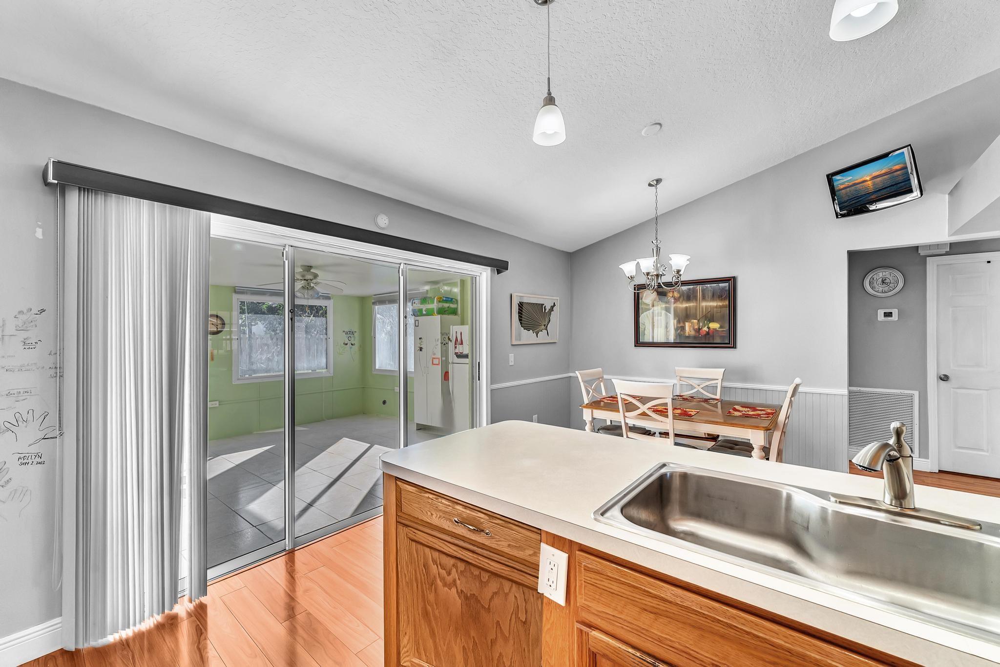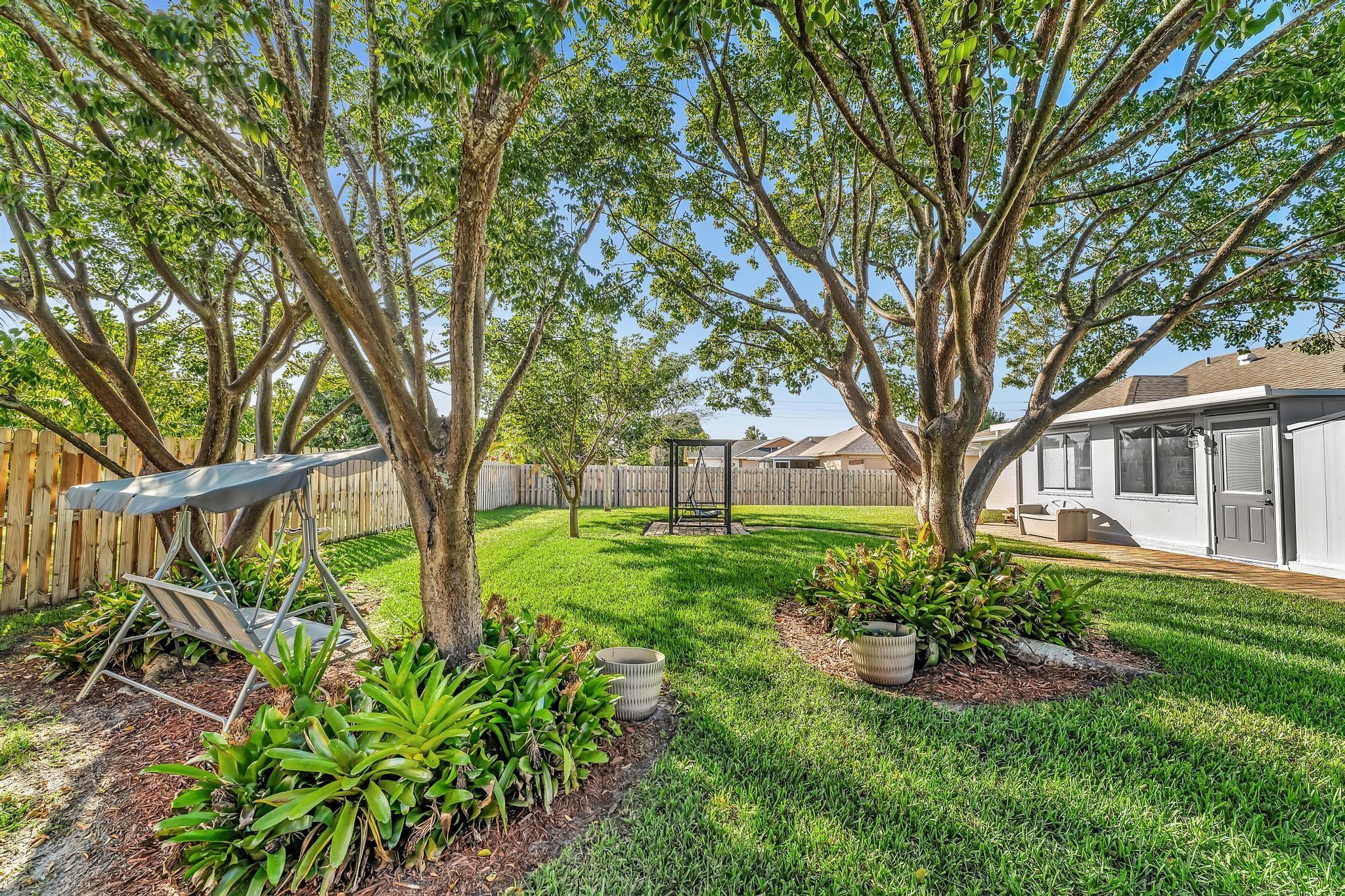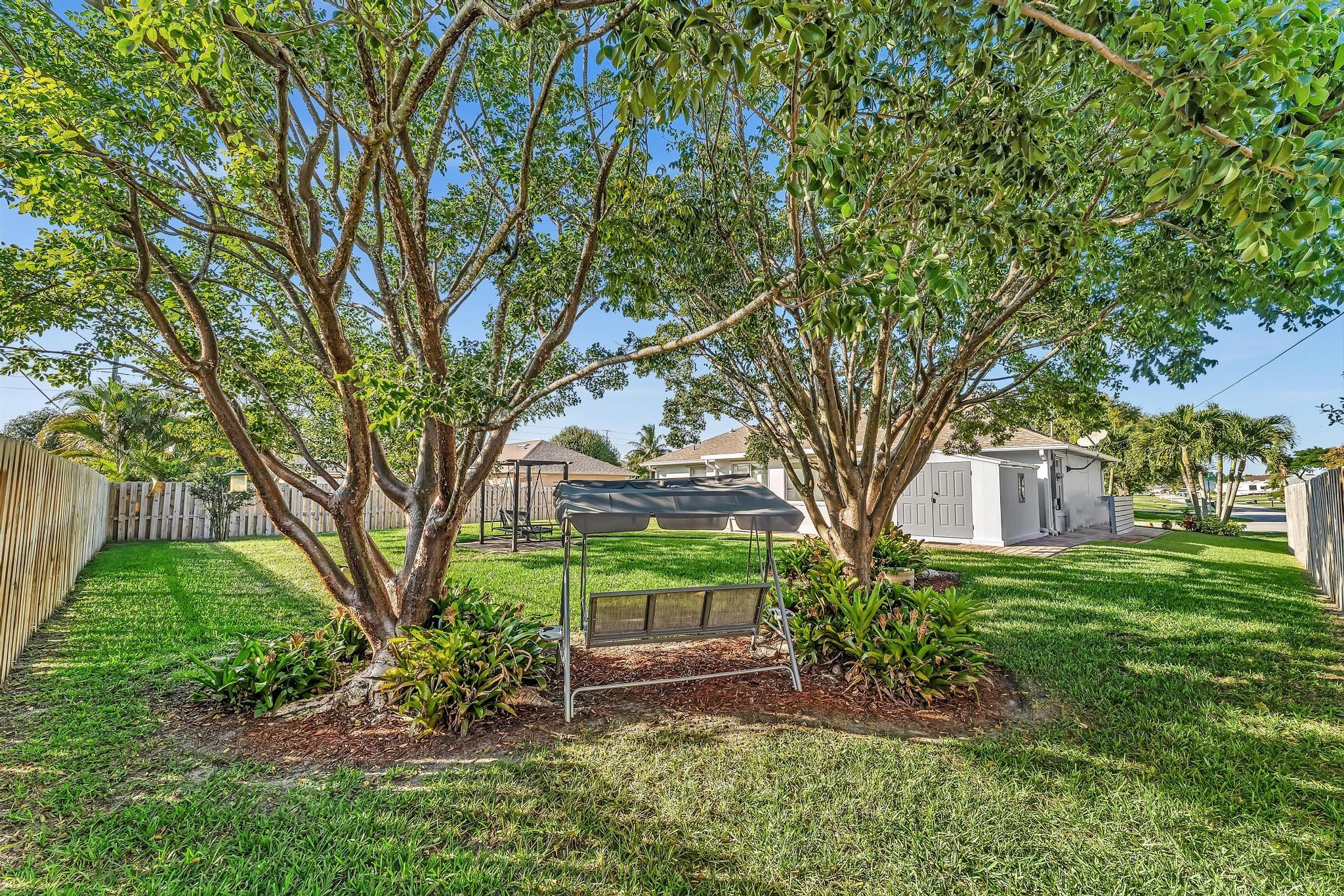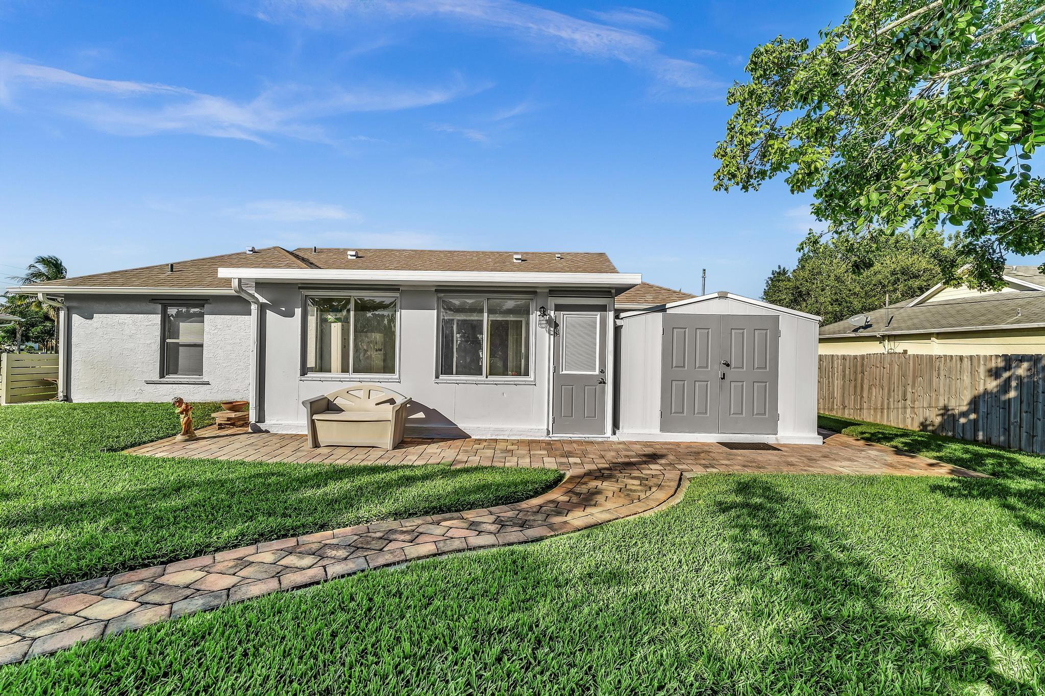 Welcome to 634 SE Thanksgiving Ave a charming CBS a well maintained home featuring a spacious split floor plan, laminate flooring, and a serene primary suite with a walk-in closet. Enjoy a bright kitchen, a laundry room, and inviting Florida room with wall unit A/C. Step outside to your tranquil garden oasis with pavers, well-water sprinklers, septic sewer with city water, and a storage shed. Roof 2017, A/C 2022, water heater 2025, shutters throughout, and a freshly painted driveway. Even the garage is carpeted, with dual fans and a newer opener! This property does not have a dishwasher, but the space is there!