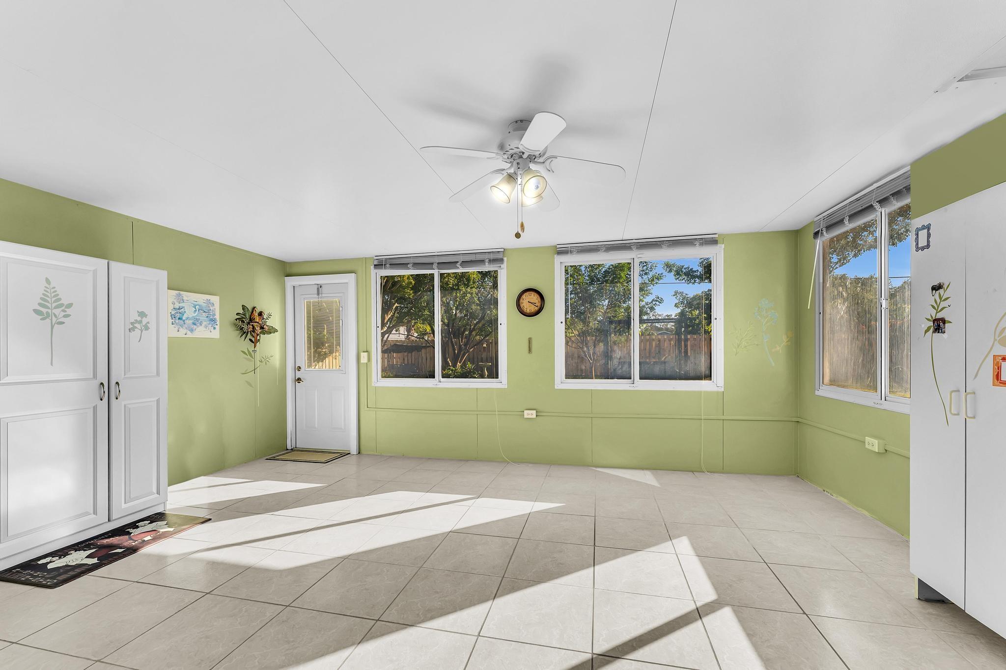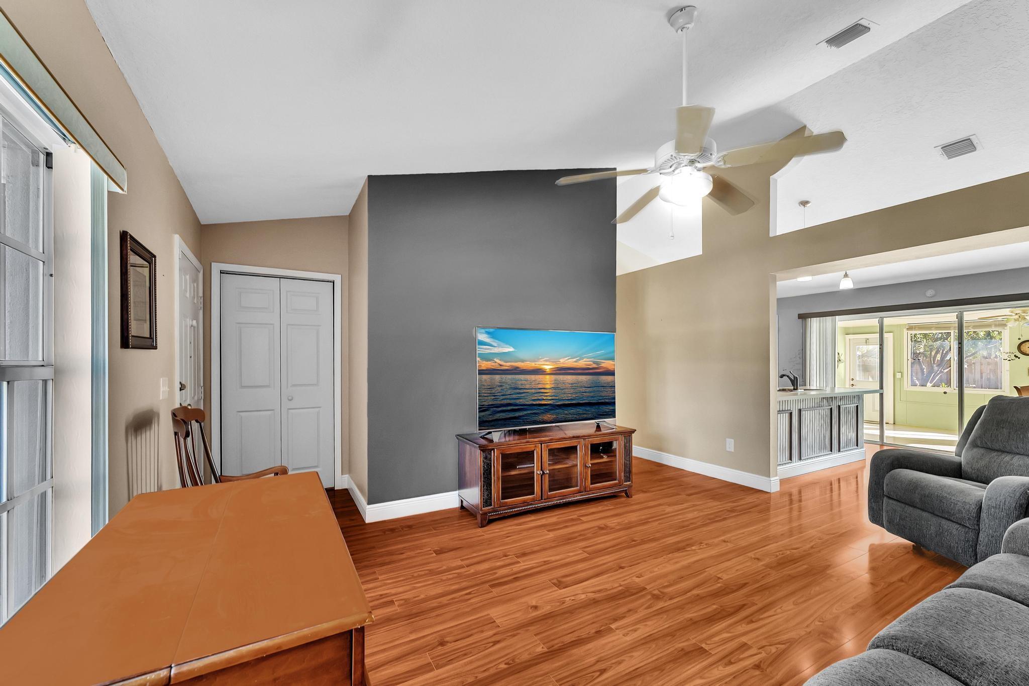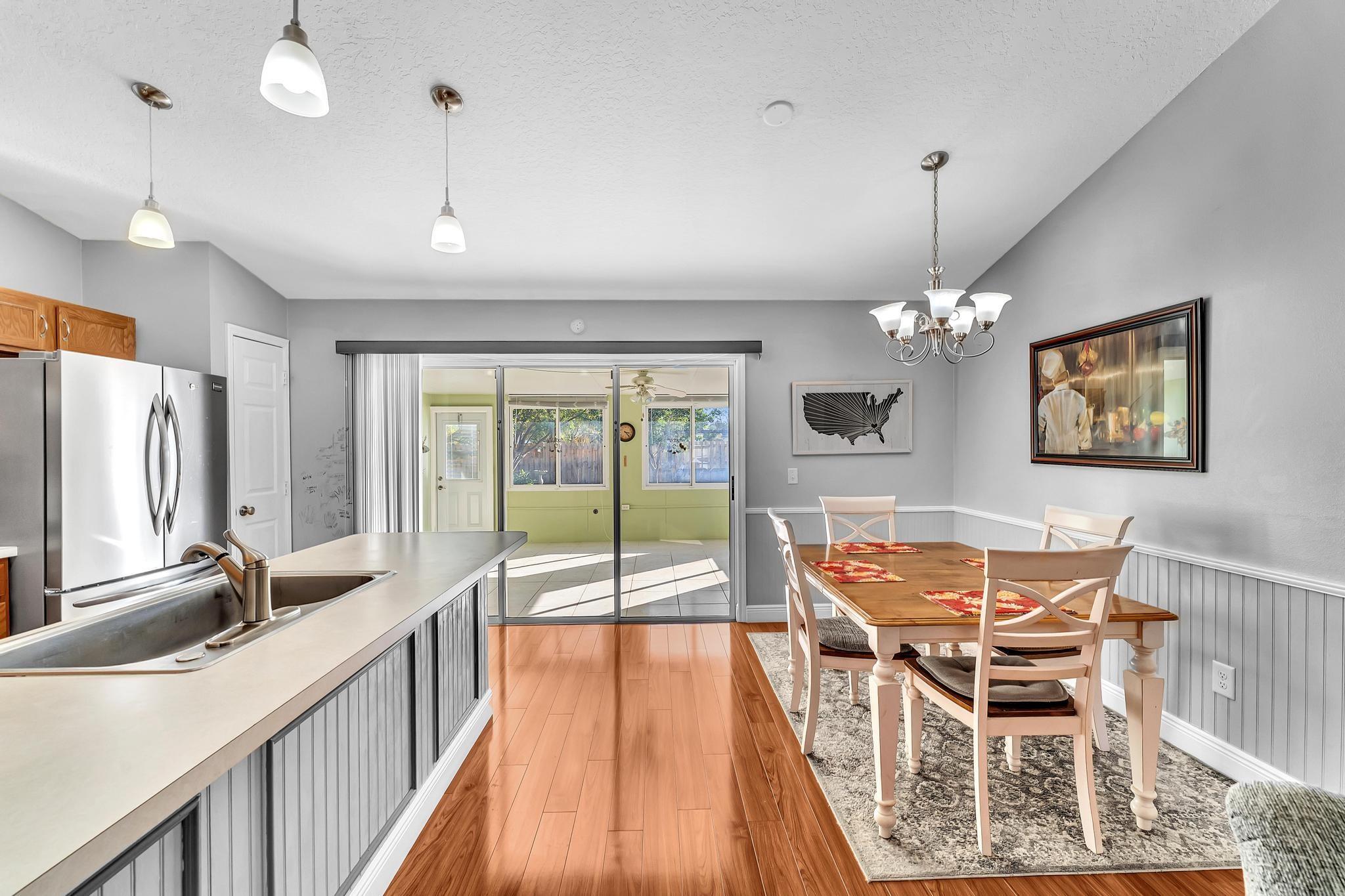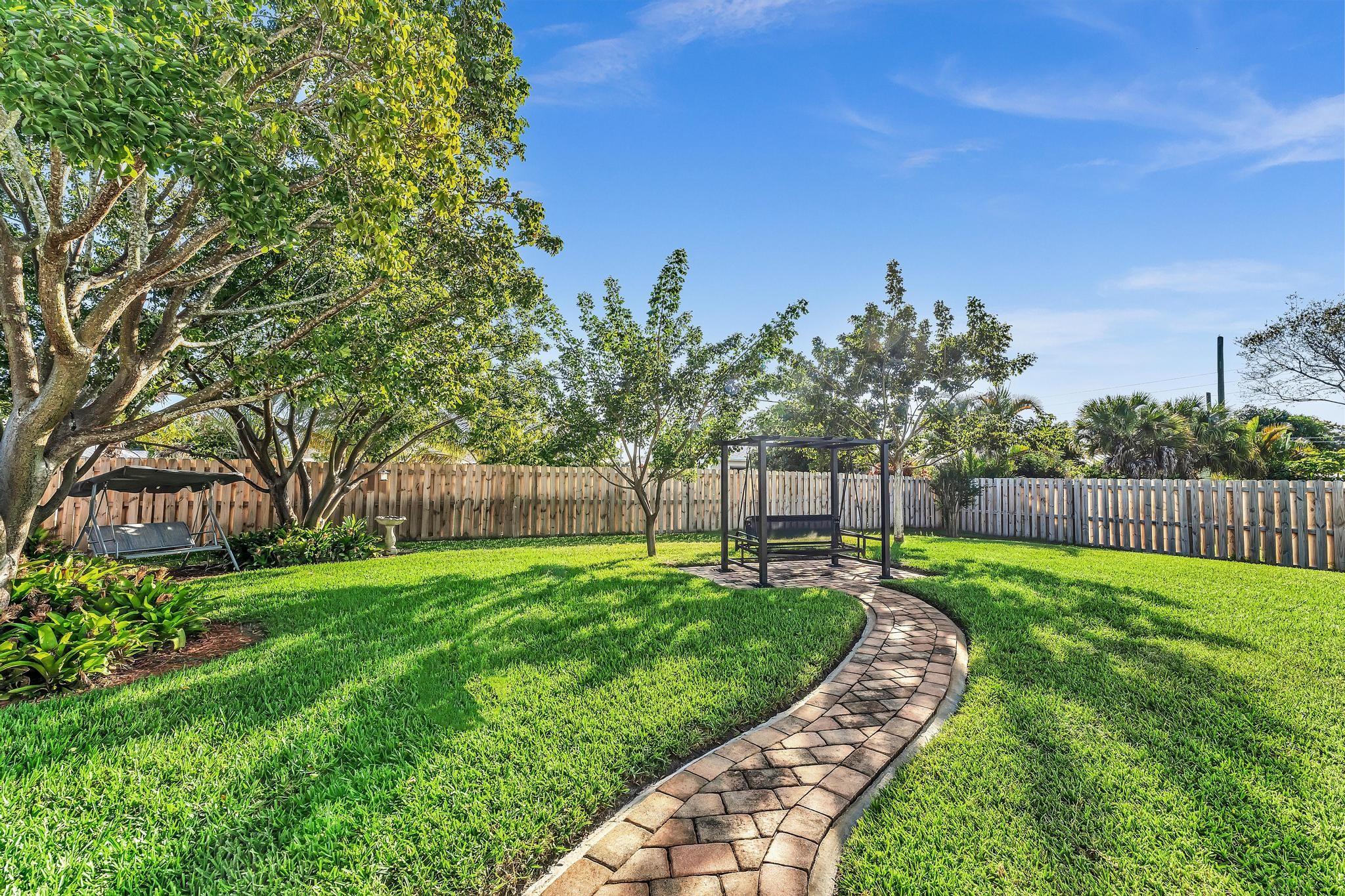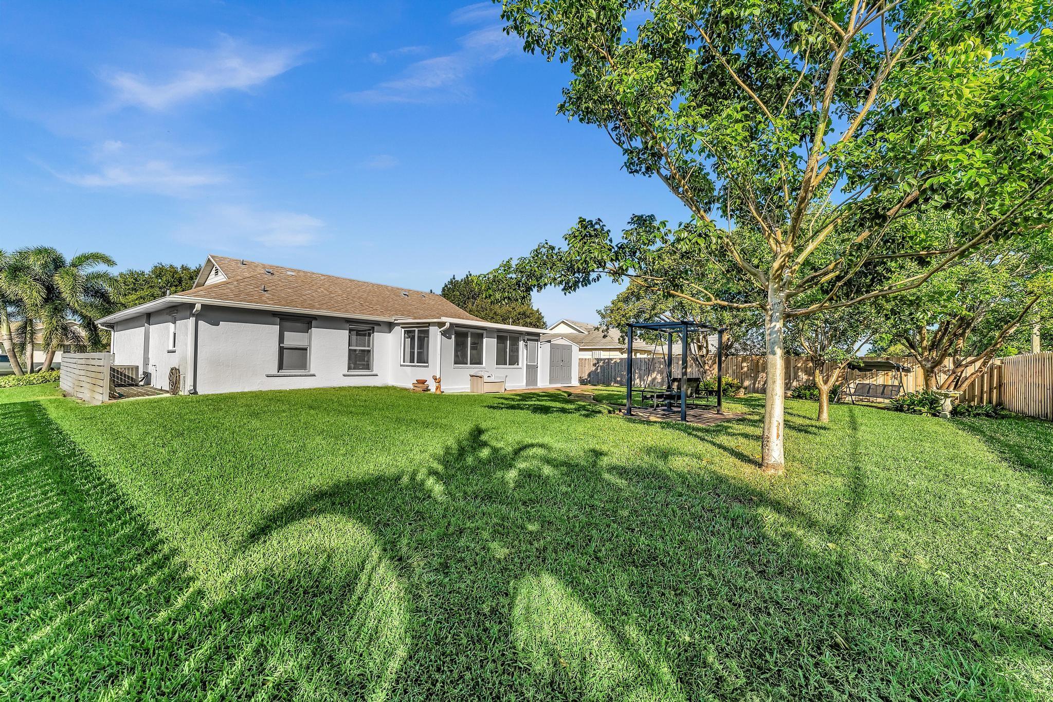 Welcome to 634 SE Thanksgiving Ave a charming CBS a well maintained home featuring a spacious split floor plan, laminate flooring, and a serene primary suite with a walk-in closet. Enjoy a bright kitchen, a laundry room, and inviting Florida room with wall unit A/C. Step outside to your tranquil garden oasis with pavers, well-water sprinklers, septic sewer with city water, and a storage shed. Roof 2017, A/C 2022, water heater 2025, shutters throughout, and a freshly painted driveway. Even the garage is carpeted, with dual fans and a newer opener! This property does not have a dishwasher, but the space is there!