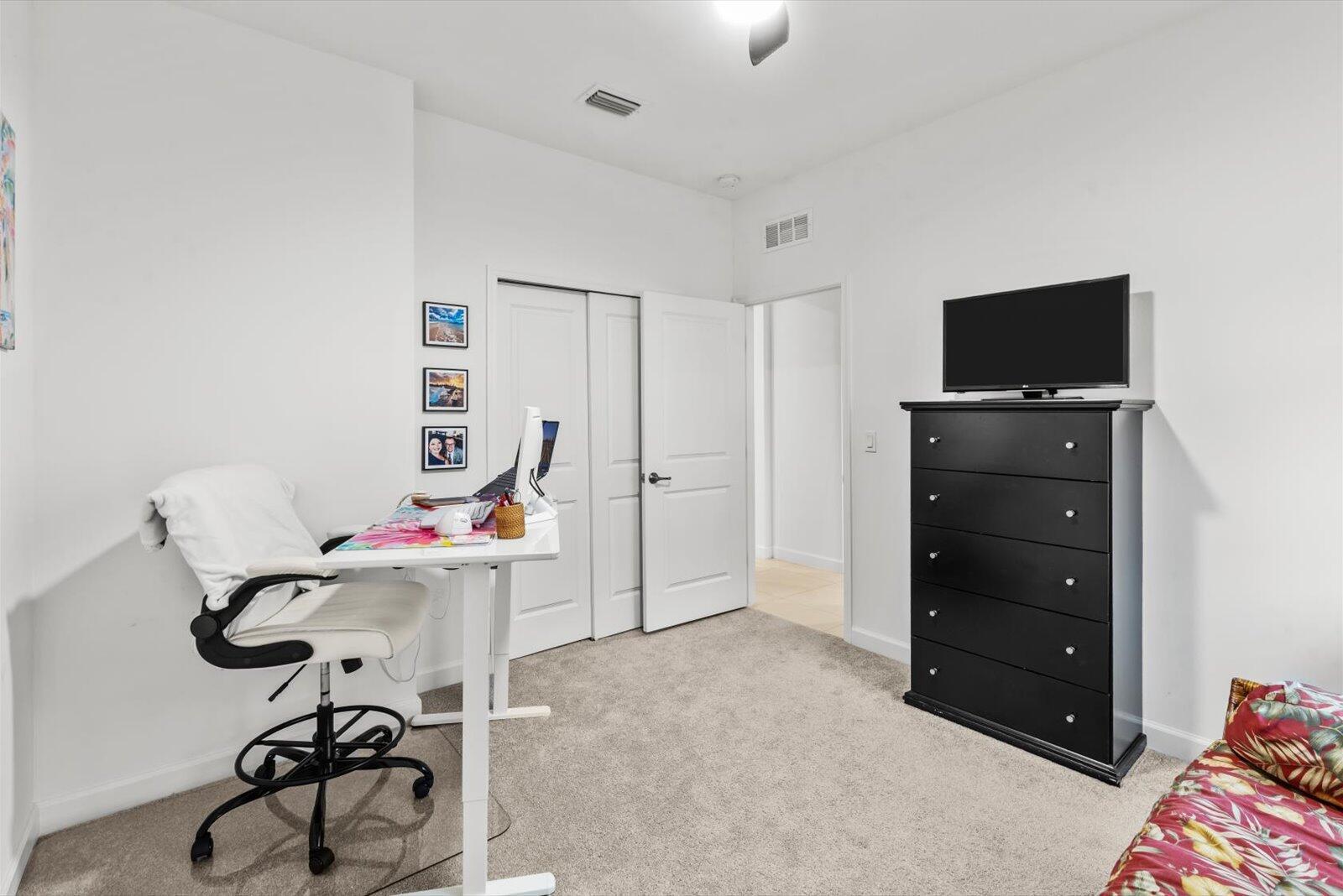 Beautiful like-new 2024-built 3-bedroom, 2-bath home with a flexible den in the desirable low-HOA community of Tradition! This gorgeous coastal-elevation home offers a bright, functional open floor plan with impact windows and doors, an extended patio overlooking the lake, and an east-facing front exposure for breathtaking sunset views over the backyard. The kitchen features quartz countertops, stainless steel GAS appliances, and a large island perfect for gatherings. Elegant tile flooring runs throughout the main living areas, combining modern finishes with comfortable Florida living. Enjoy a resort-style community pool, lush walking trails, and easy access to shops, dining, and I-95, everything you love about Tradition living! Landscaping, security, internet & cable INCLUDED with HOA!