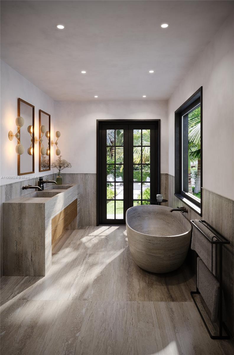 COMING SOON! LOCATED ON PRESTIGIOUS NORTH BAY ROAD THIS MEDITERRANEAN FAMILY VILLA IS WRAPPED IN LUSH GREENERY FOR TOTAL PRIVACY & SECURITY! Gated Entry into this Beautiful Family Home with Pool. Timeless Architecture reimagined with Modern Elegance. Developed by Josh Flagg and Carolwood & re-designed by BuiltIN studio/Gary Eisner, this approximate 4,000 square foot house sits on a 10,000 sqft estate, for resort style living. Main house offers 4BD/5BA, detached pool house with sauna and cold plunge, powder room, and outdoor shower. Soaring vaulted ceilings and new wood flooring throughout interiors anchored by an original limestone fireplace. White oak kitchen with SubZero appliances and Waterworks fixtures, travertine-accented baths, custom millwork, custom steel windows and doors.