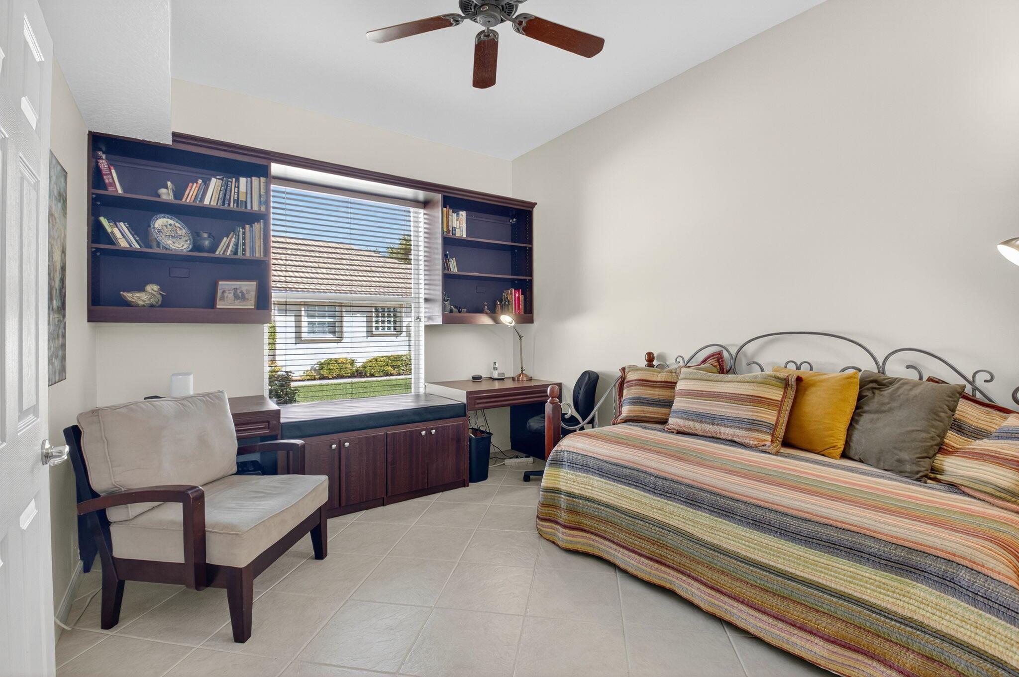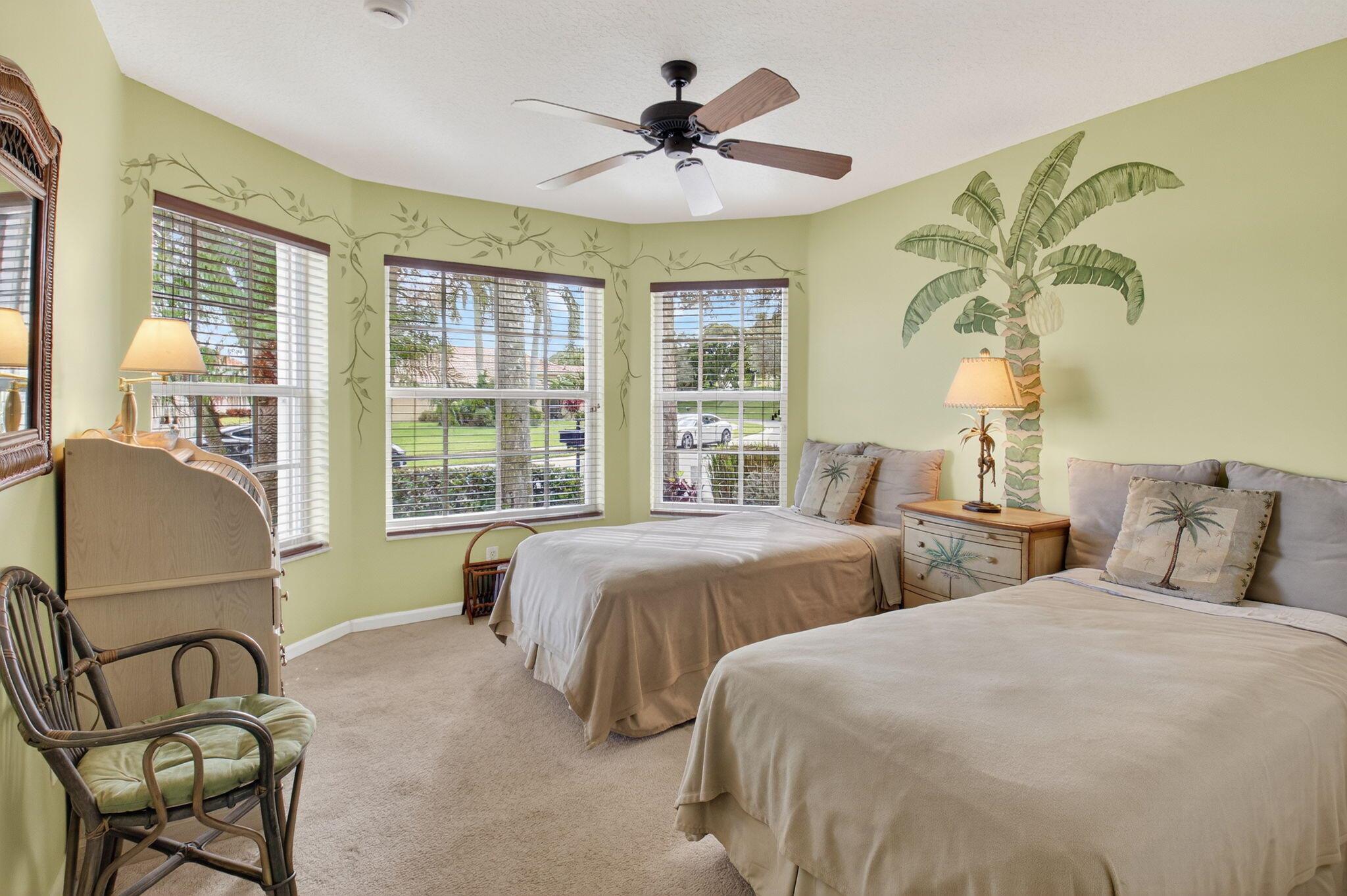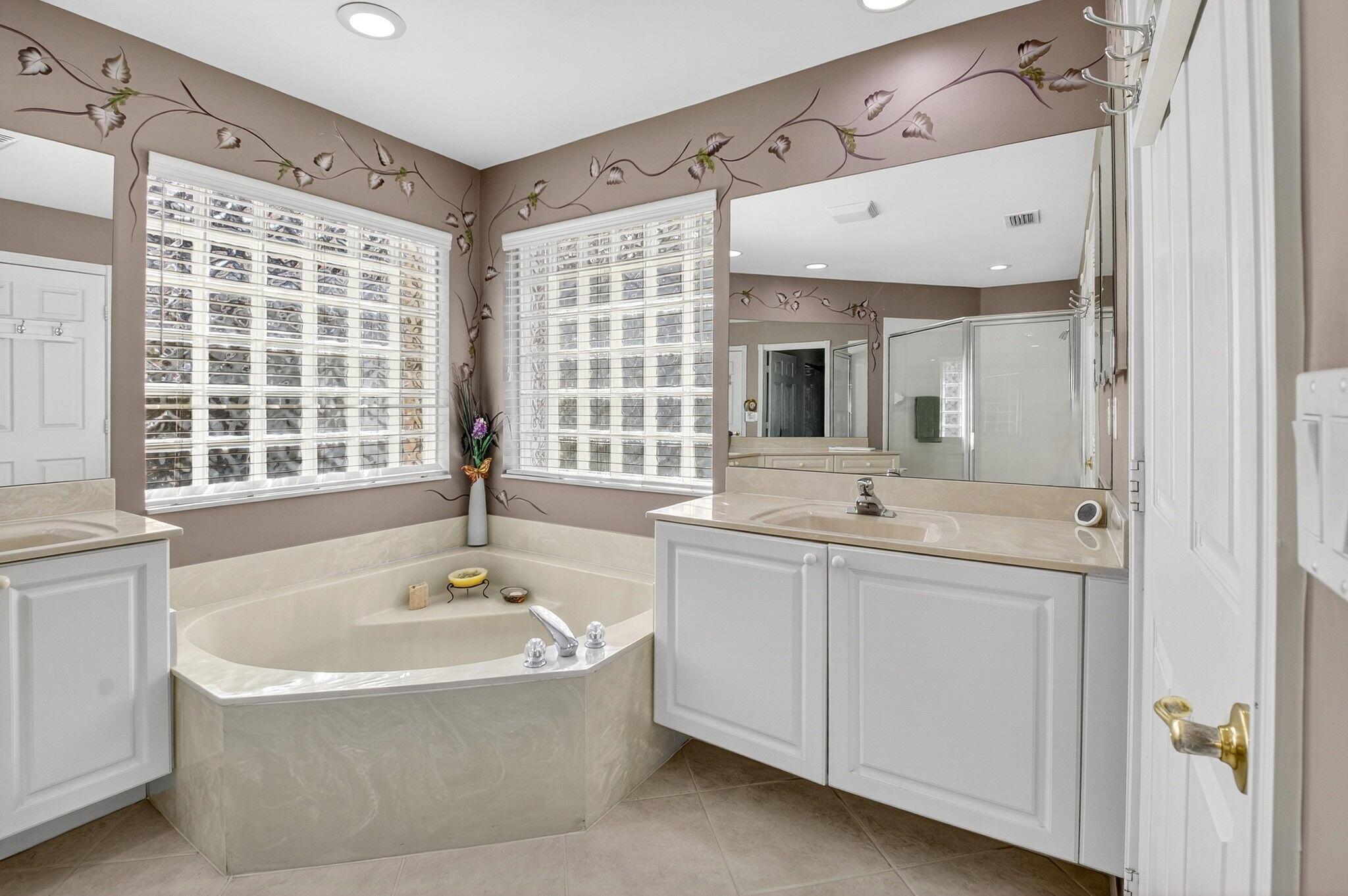 Experience the Delray Beach lifestyle in Valencia Falls offering first class resort-style amenities. This beautifully maintained rarely offered lakefront Ritz model is move in ready! Situated on a quiet tree lined street with the absolute best wide lake views from the living areas & primary bedroom. Tranquil and relaxing oversized L-shaped lanai with sweeping lake views perfect for entertaining and dining al-fresca. Desirable split bedroom floorplan with neutral tile. White kitchen with granite countertops/backsplash & breakfast area. Large greenspace side easement lets the sun shine in. Wake up to the sweeping lake vistas from your primary suite offering a tray ceiling, two walk-in closets, primary bath with dual sink vanities, soaking tub & separate shower. Full accordion shutters.