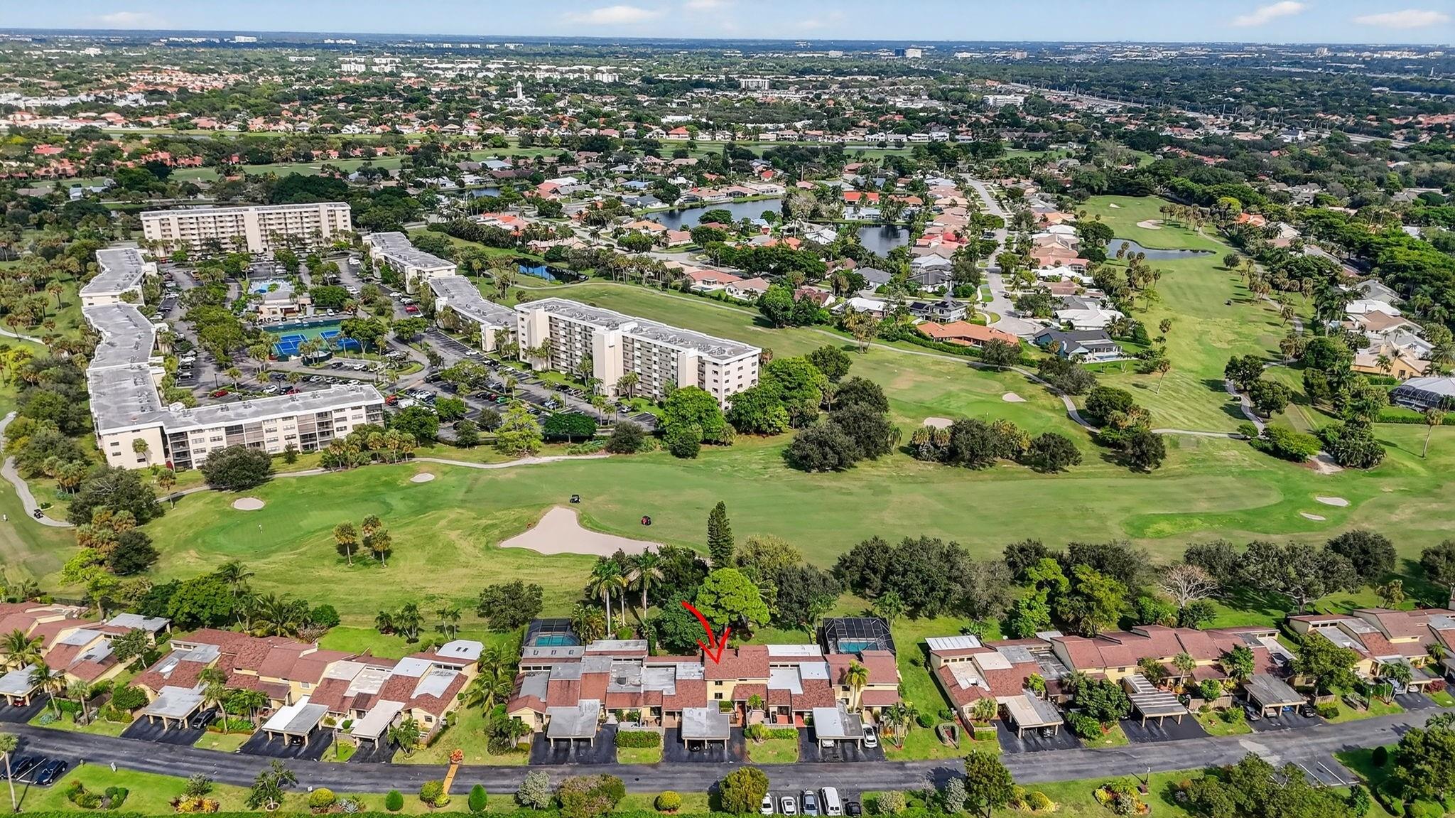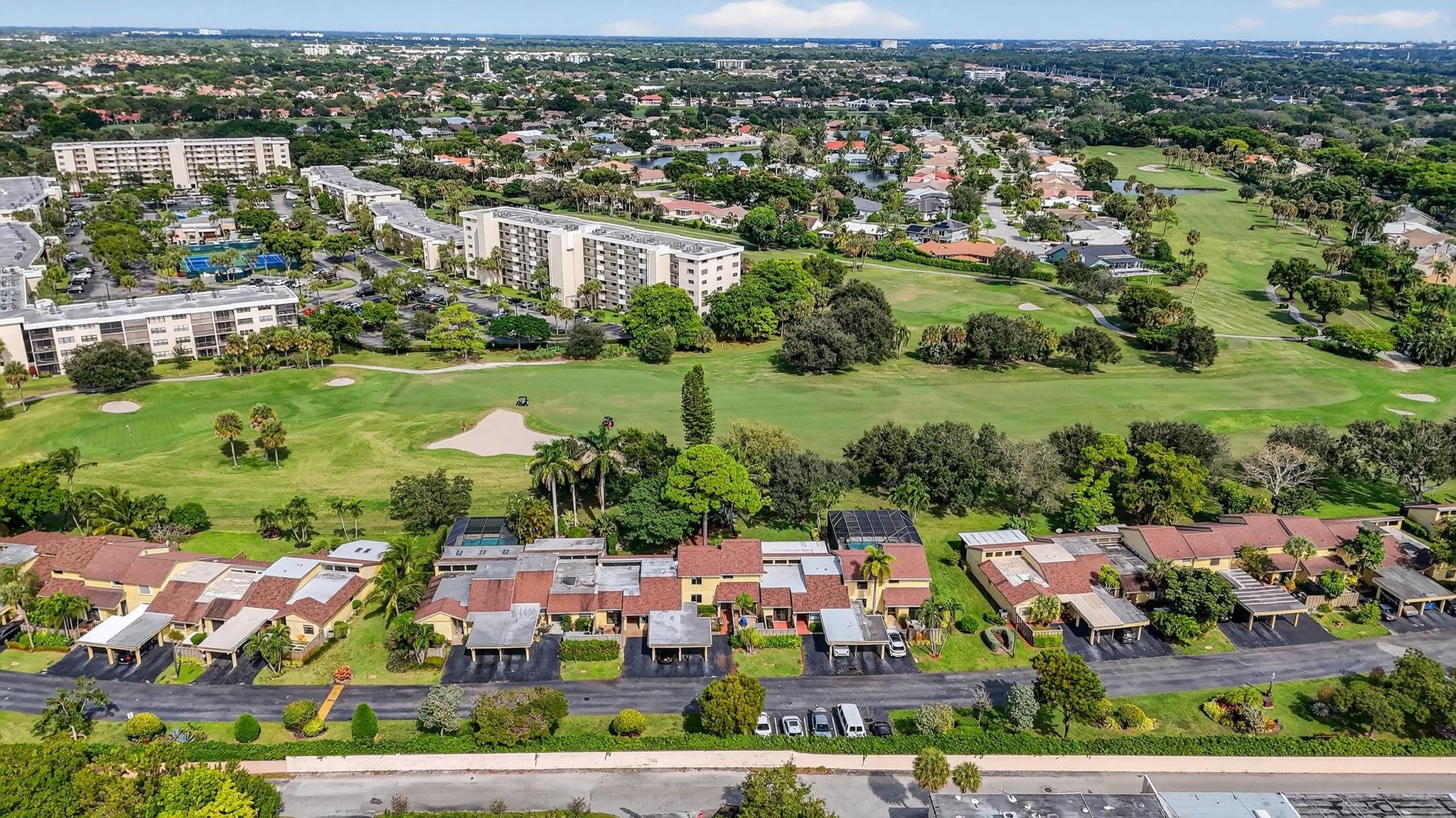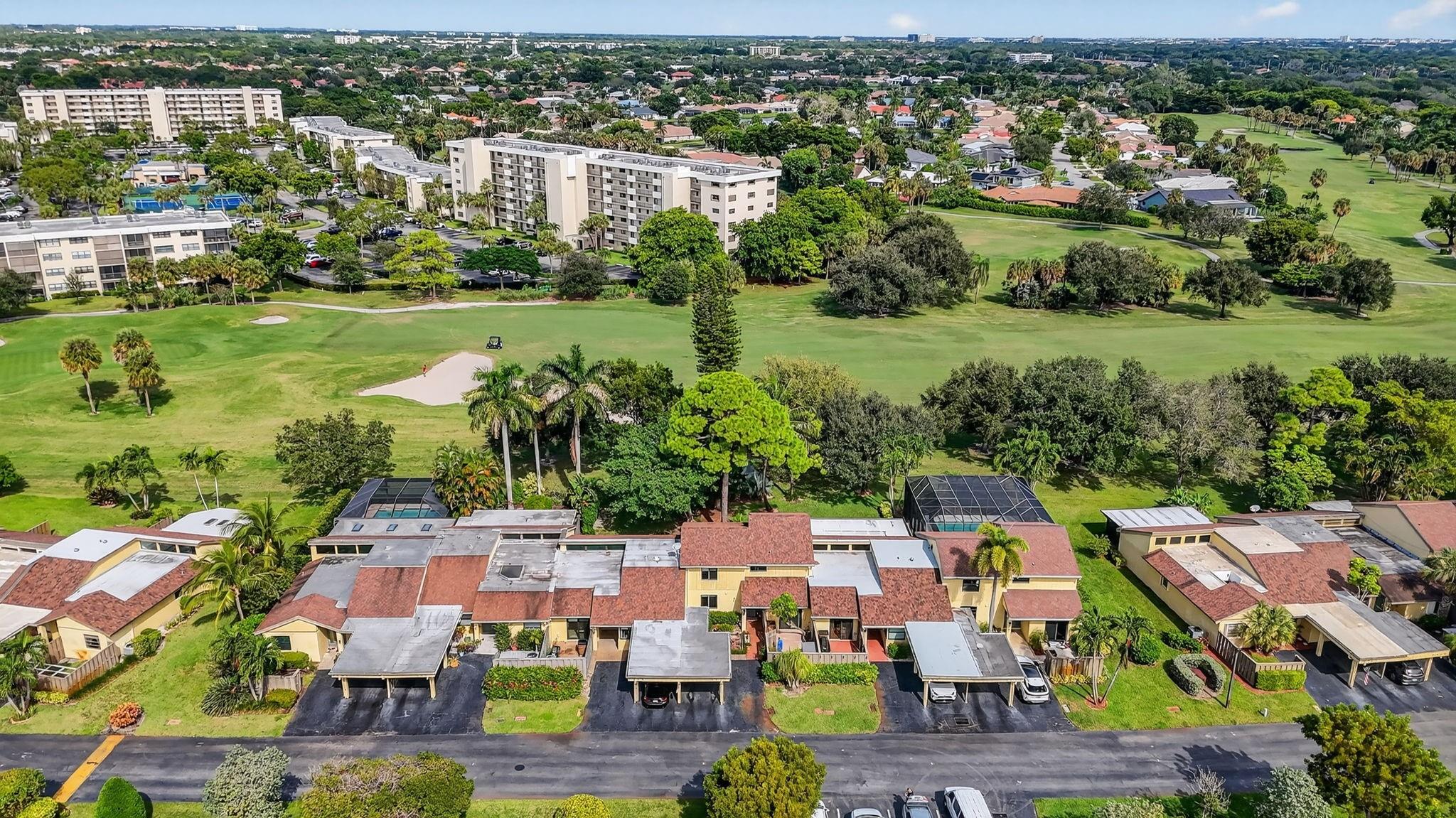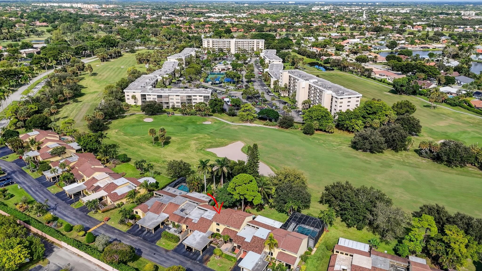 Senstional 3/2.5 TH w/ 1,800+SF. Enjoy GOLF COURSE w/ expansive views of intersecting fairways! Enter into wide-open LA w/ 20' soaring ceiling featuring wood beam finish. HUGE FR/LR w/ neutral tile has a triple slider to patio-perfect for parties! DR w/ BIG pass thru. Entertaining is a breeze in your great kitchen w/ granite counters & backsplash. Newer Maytag S/S appliances, tons of 30" cabinets + extra island! Gorgeous shiplap accent wall has IMPACT stider to fenced courtyard. Guest BR on ground floor! Beautiful rich laminate floors upstairs. Fall in love in the primary BR w/ scr balcony w/ views. UPDATED pr bath has counter ht vanity w/ granite counter. Huge tub to soak away your worries. Walk in closet-perf for fashion fan. BR w/ walk in closet. Savor coffee on the BIG DECK! LOW HOA!