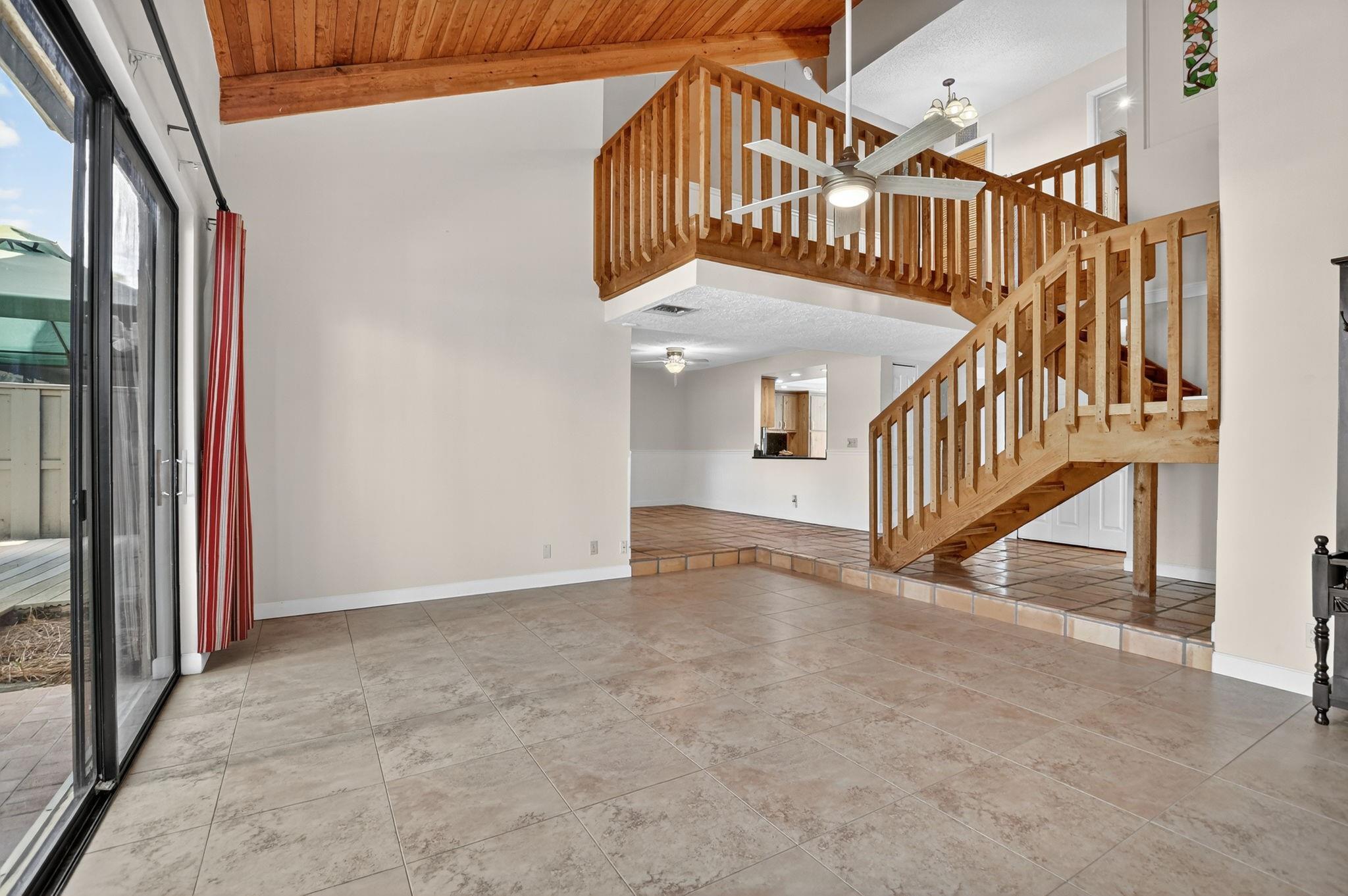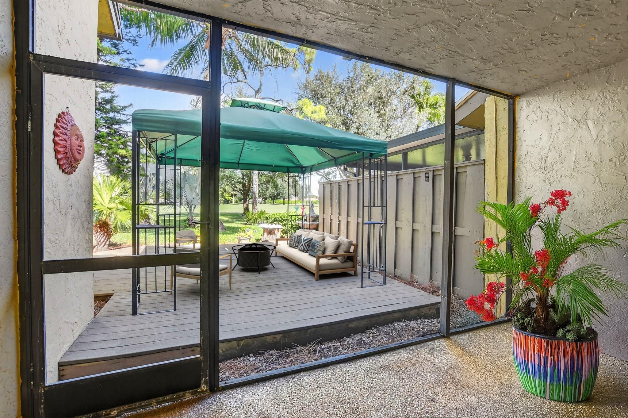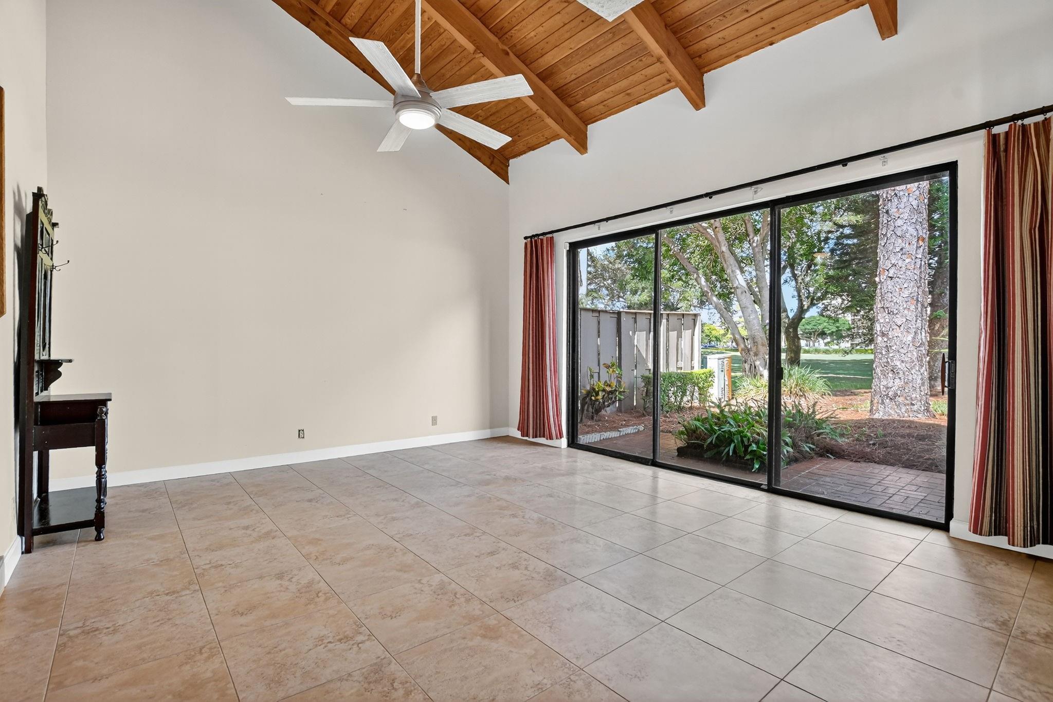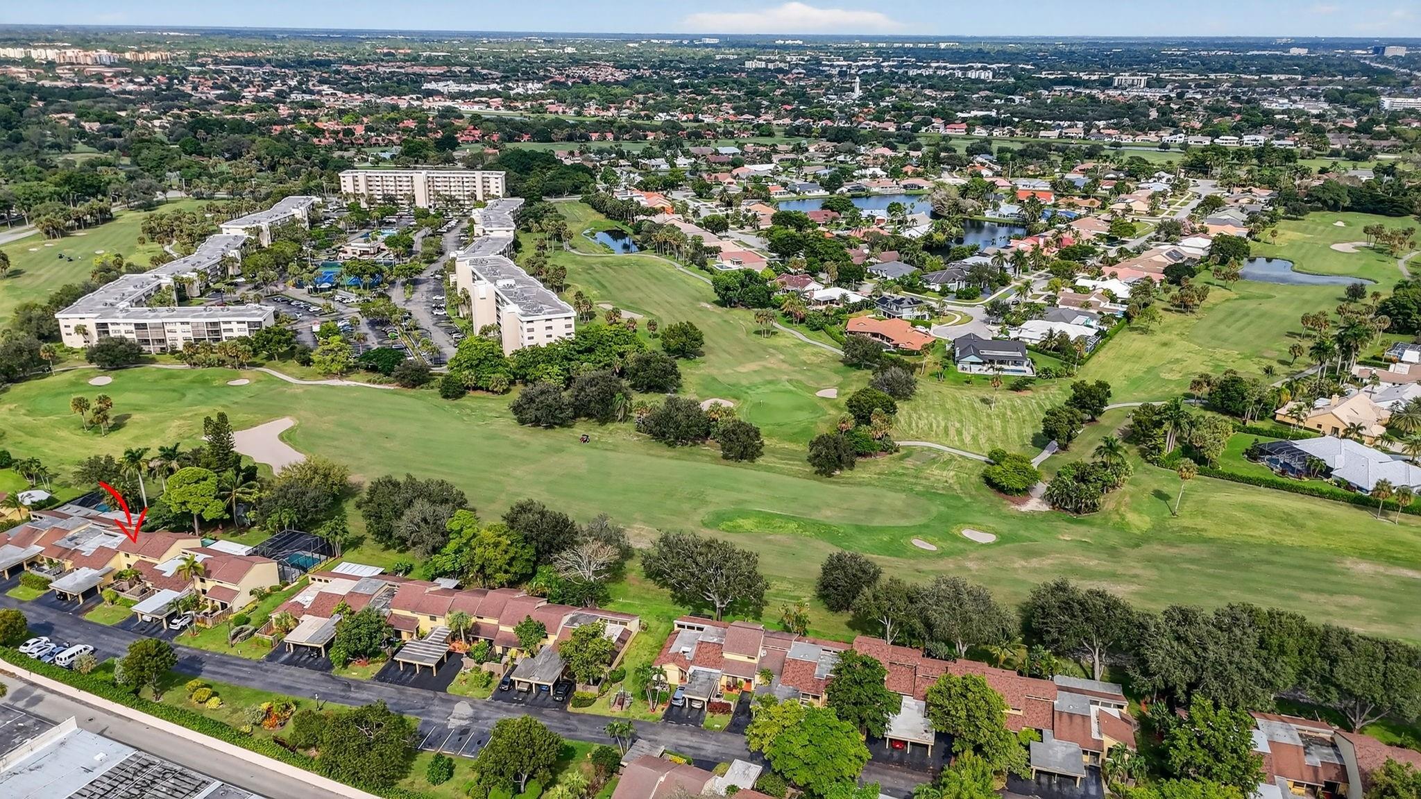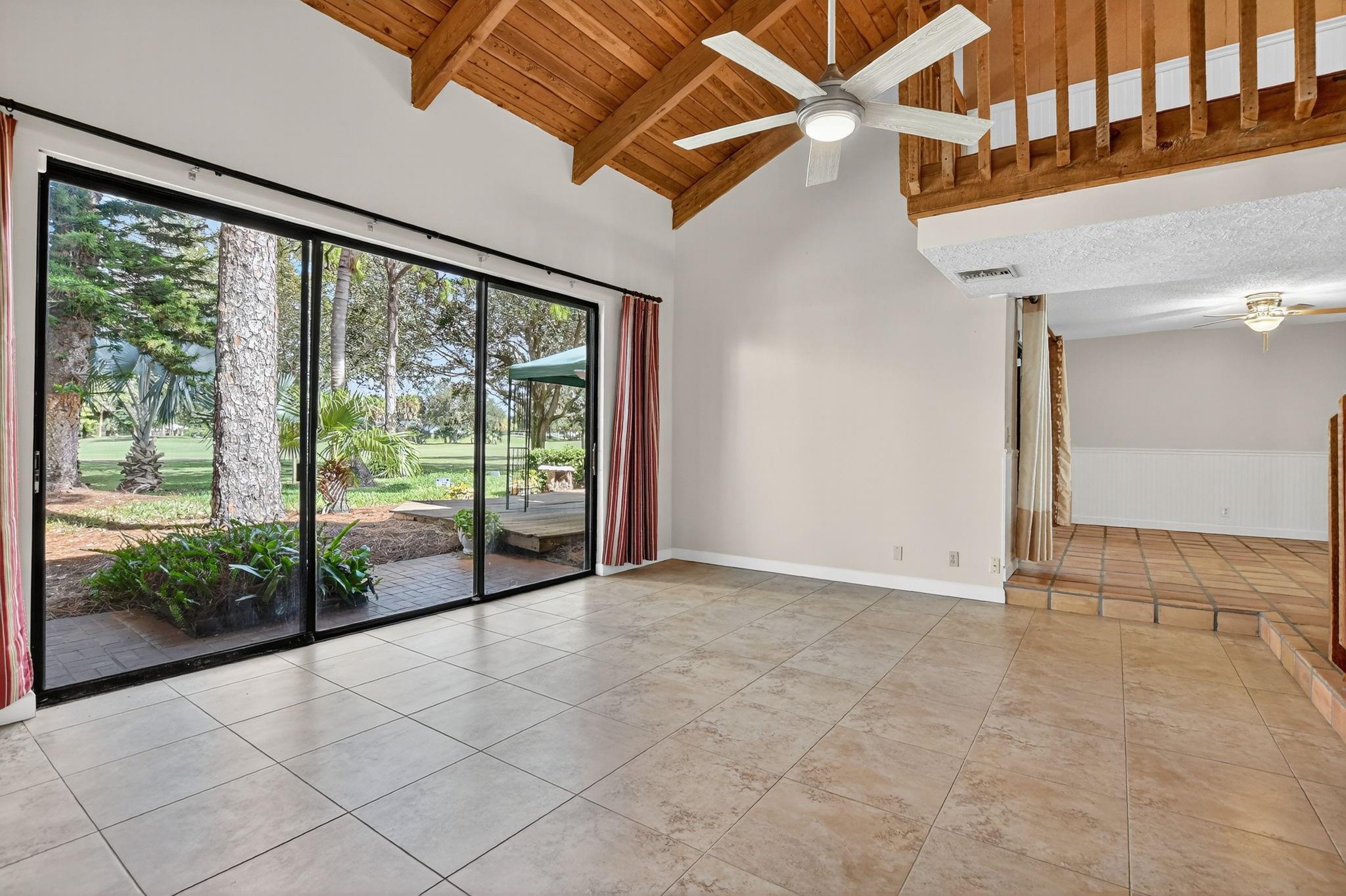 Senstional 3/2.5 TH w/ 1,800+SF. Enjoy GOLF COURSE w/ expansive views of intersecting fairways! Enter into wide-open LA w/ 20' soaring ceiling featuring wood beam finish. HUGE FR/LR w/ neutral tile has a triple slider to patio-perfect for parties! DR w/ BIG pass thru. Entertaining is a breeze in your great kitchen w/ granite counters & backsplash. Newer Maytag S/S appliances, tons of 30" cabinets + extra island! Gorgeous shiplap accent wall has IMPACT stider to fenced courtyard. Guest BR on ground floor! Beautiful rich laminate floors upstairs. Fall in love in the primary BR w/ scr balcony w/ views. UPDATED pr bath has counter ht vanity w/ granite counter. Huge tub to soak away your worries. Walk in closet-perf for fashion fan. BR w/ walk in closet. Savor coffee on the BIG DECK! LOW HOA!