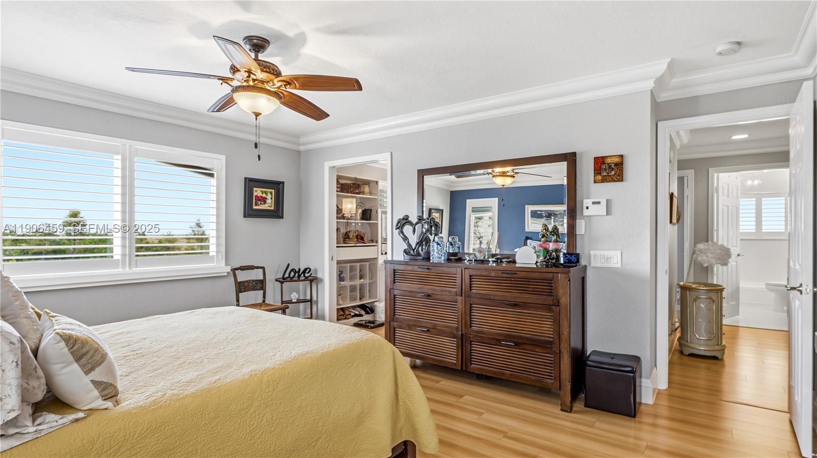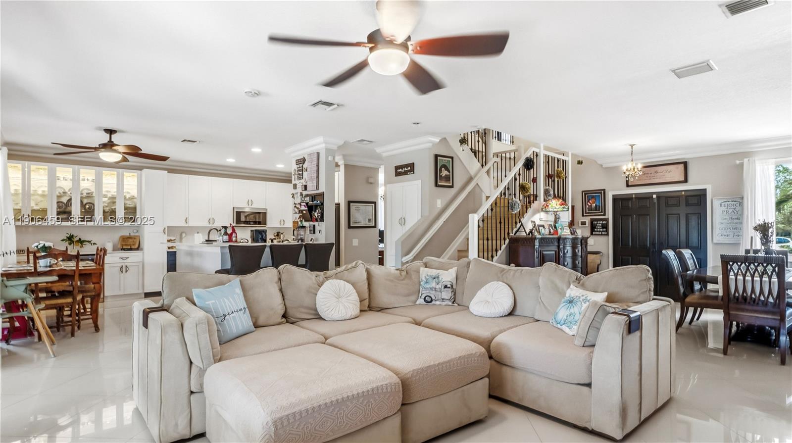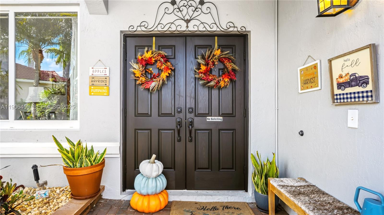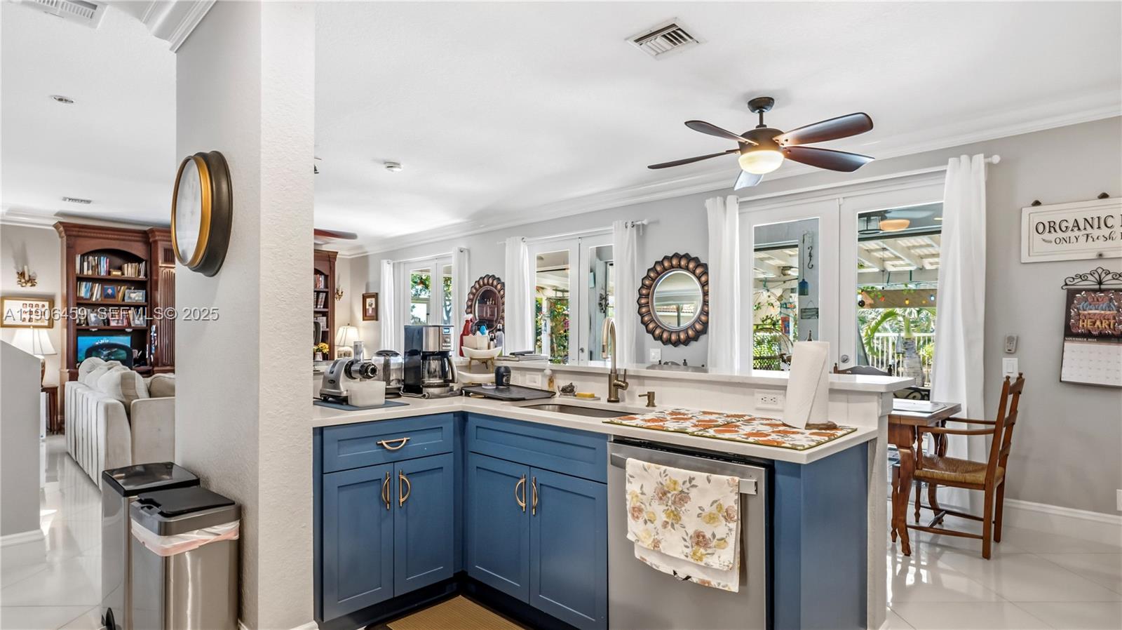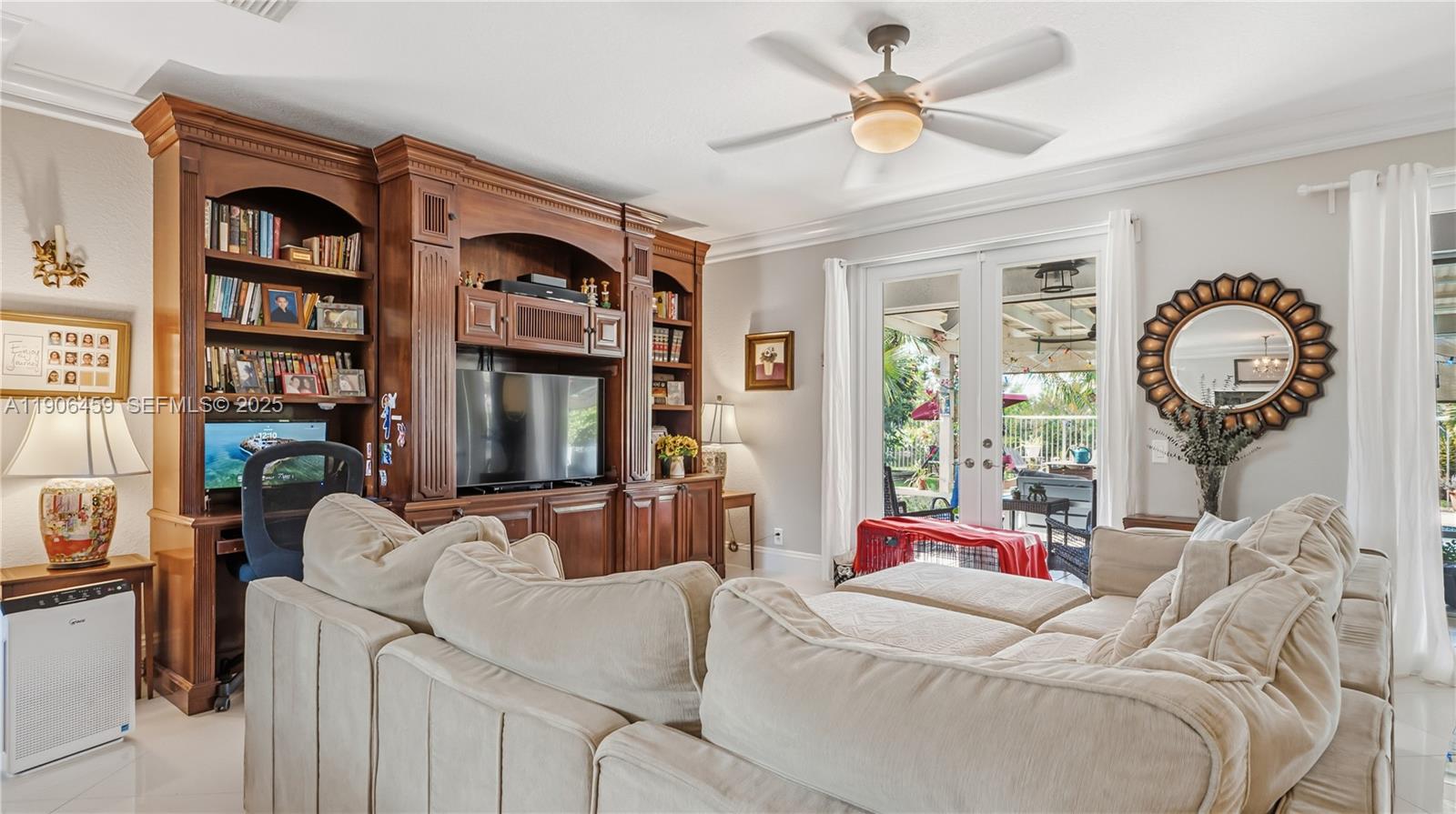 Come for the home, stay for the sunsets! Fully upgraded tropical retreat with heated/jetted saltwater pool, travertine deck, screened patio, and custom pergola with summer kitchen. Enjoy stunning canal sunsets and total privacy—no rear neighbors! New A/C (2025), water heater (2024), Cat 5 Hurricane Impact windows/doors, plantation shutters. Built-in garage storage system. Kitchen and all 4 baths remodeled, 24x24 Porcelanosa floors, laminate upstairs, crown molding. Expanded driveway fits 3 vehicles. Lush yard with mature fruit trees (mango, avocado, soursop, lime, banana, orange, coconut), herb garden, and privacy hedges. Guard-gated community with resort-style pools; Olympic lap pool, pickleball, mini golf, café, and A+ schools. A rare blend of elegance, comfort, and everyday paradise.