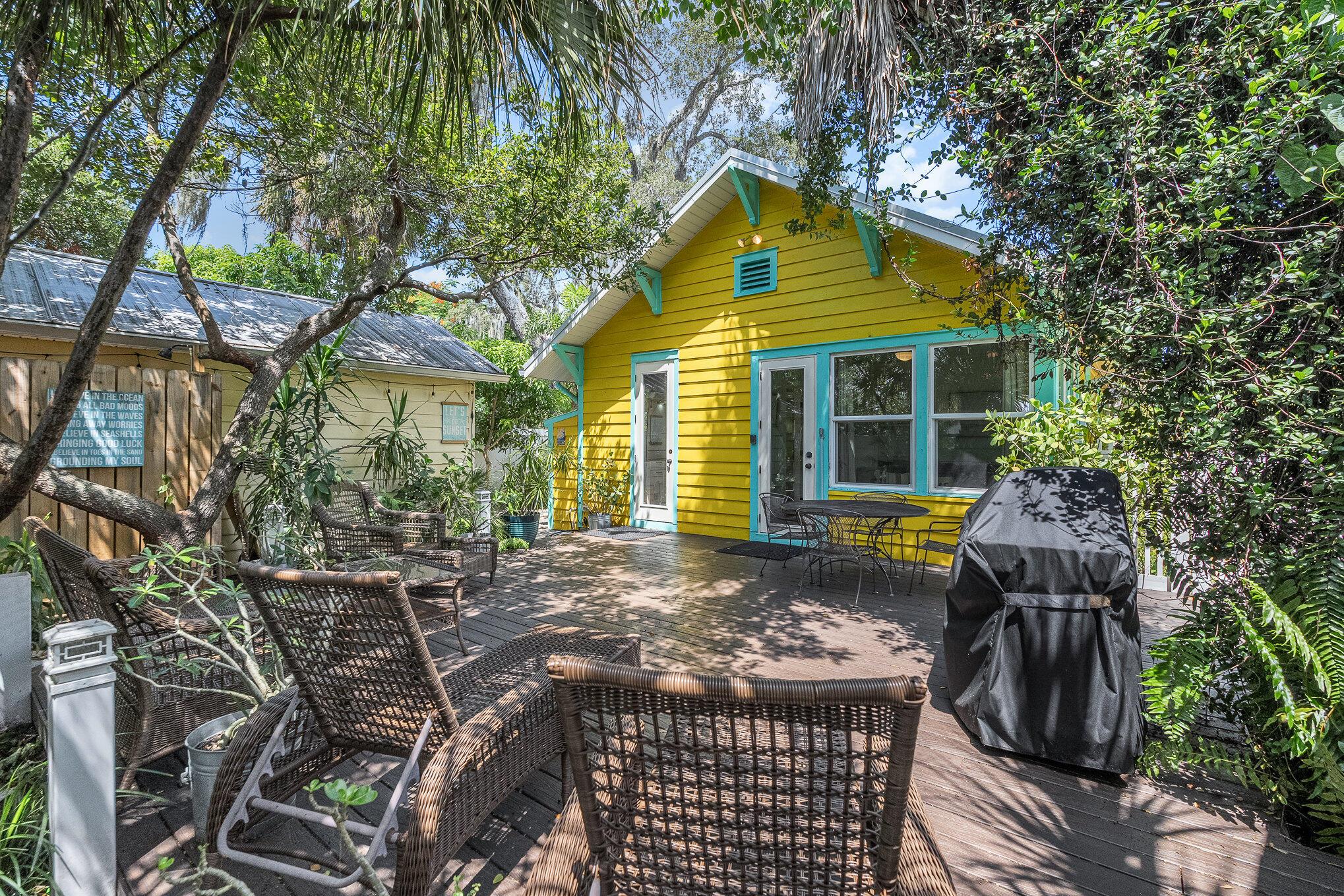 Recently remodeled 1934 cottage in Melbourne's Eau Gallie Arts District! This charming 2BR/1BA home offers 916 sq. ft. of light-filled living with high ceilings and vintage character. Central A/C. Metal roof. Wood flooring. Kitchen and bathroom were recently renovated. Enjoy a private front yard, spacious back deck, and detached shed with potential for workshop or guest suite. Walk to breweries, shops, art galleries, and the library. Just 1 minute to the Indian River and 5 minutes to the beach. Perfect as a primary home or short-term rental, 703 Shady Lane combines location, lifestyle, and investment potential in one rare find!