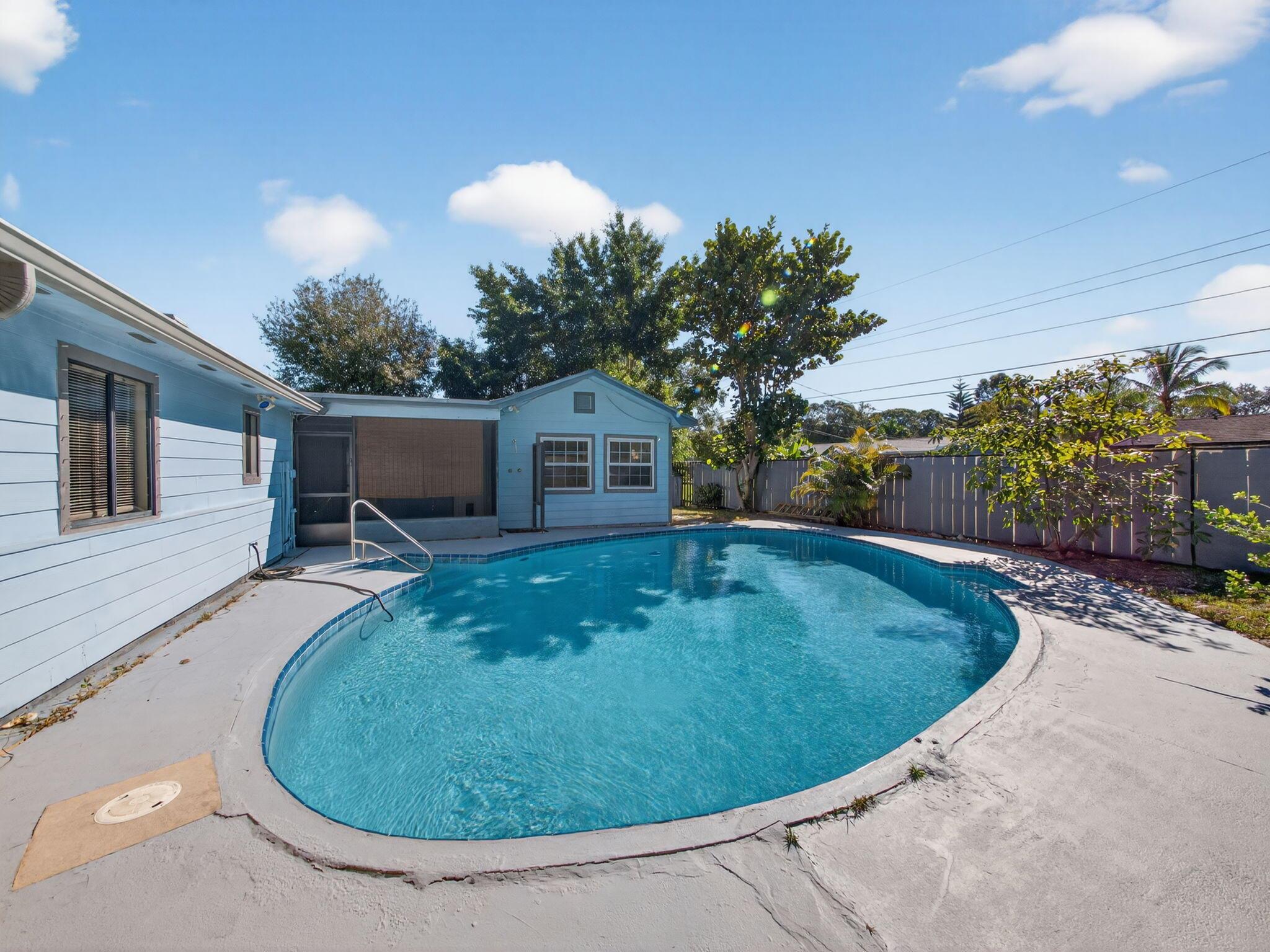 Beautiful pool home located in the wonderful Lakewood Park Community. Main house offers 2 bedroom/1.5 bathrooms, high wood beam ceiling with a fireplace in the spacious living room, completely updated kitchen, fresh paint throughout, updated master bathroom, and closet has new door/organizer. Guest house is a 1 bathroom currently an efficiency but can easily add a full kitchen. Property has a privacy fence. Welcome to your dream home.
