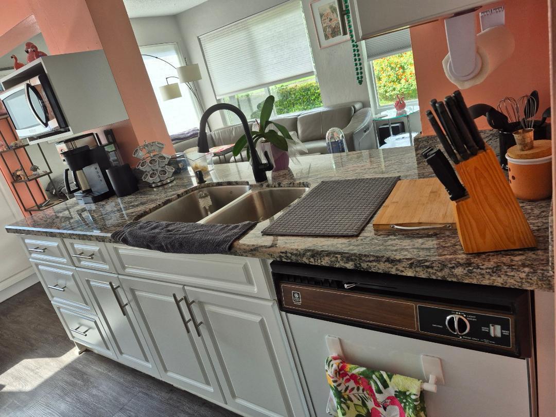 LIVE ON THE LAKE! OUTSTANDING OPPORTUNITY TO LIVE IN AN UPDATED AND UPGRADED LAKE FRONT HOME IN THE MAINLANDS. UPGRADES INCLUDE-ROOF 2021, ALL IMPACT WINDOWS AND DOORS, NEWLY PAINTED, AIR-CONDITIONING JULY 2025, REMODELED KITCHEN, 1 REMODELED BATHROOM WITH STEP IN SHOWER, NEW GORGEOUS TILE FLOORING. LAKE FRONT VIEWS FROM LARGE ENCLOSED PATIO ROOM WITH LOW $125 HOA FEE. ACCESS TO LAUNDRY ROOM FROM KITCHEN OR CARPORT. COMMUNITY POOL AND PARK A SHORT WALK (1 BLOCK) AWAY. EXTERIOR PAINTING AND LAWN ARE INCLUDED IN THE VERY LOW HOA FEE. NO SCHEDULED ASSESSMENTS. HEATED POOL AND CLUBHOUSE WITH LOTS OF ACTIVITIES.