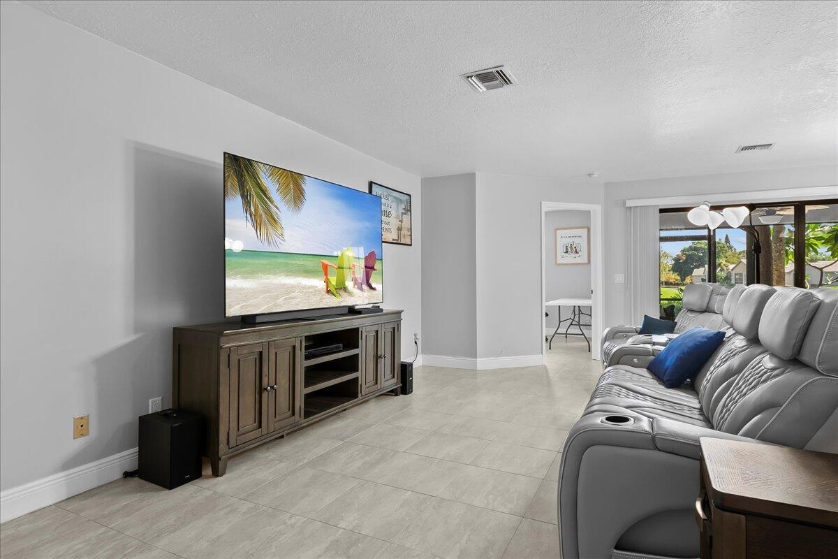 Enjoy serene lakefront living in the desirable gated community of River Bridge! This beautifully updated 2-bed, 2-bath condo offers stunning water views, new tile floors throughout, a modern kitchen with breakfast bar, and a spacious open layout filled with natural light. Both bathrooms have been tastefully renovated, and the home includes a new A/C and new washer and dryer. Enjoy resort-style amenities including two heated pools, a kids' pool, spa, pickleball, tennis, gym, and clubhouse with year-round activities. The association covers roof maintenance, landscaping, cable, and internet. Conveniently located near the Turnpike, I-95, Wellington Mall, golf, and area parks--your perfect lakefront retreat awaits!