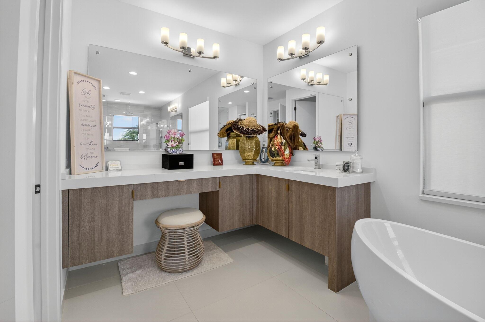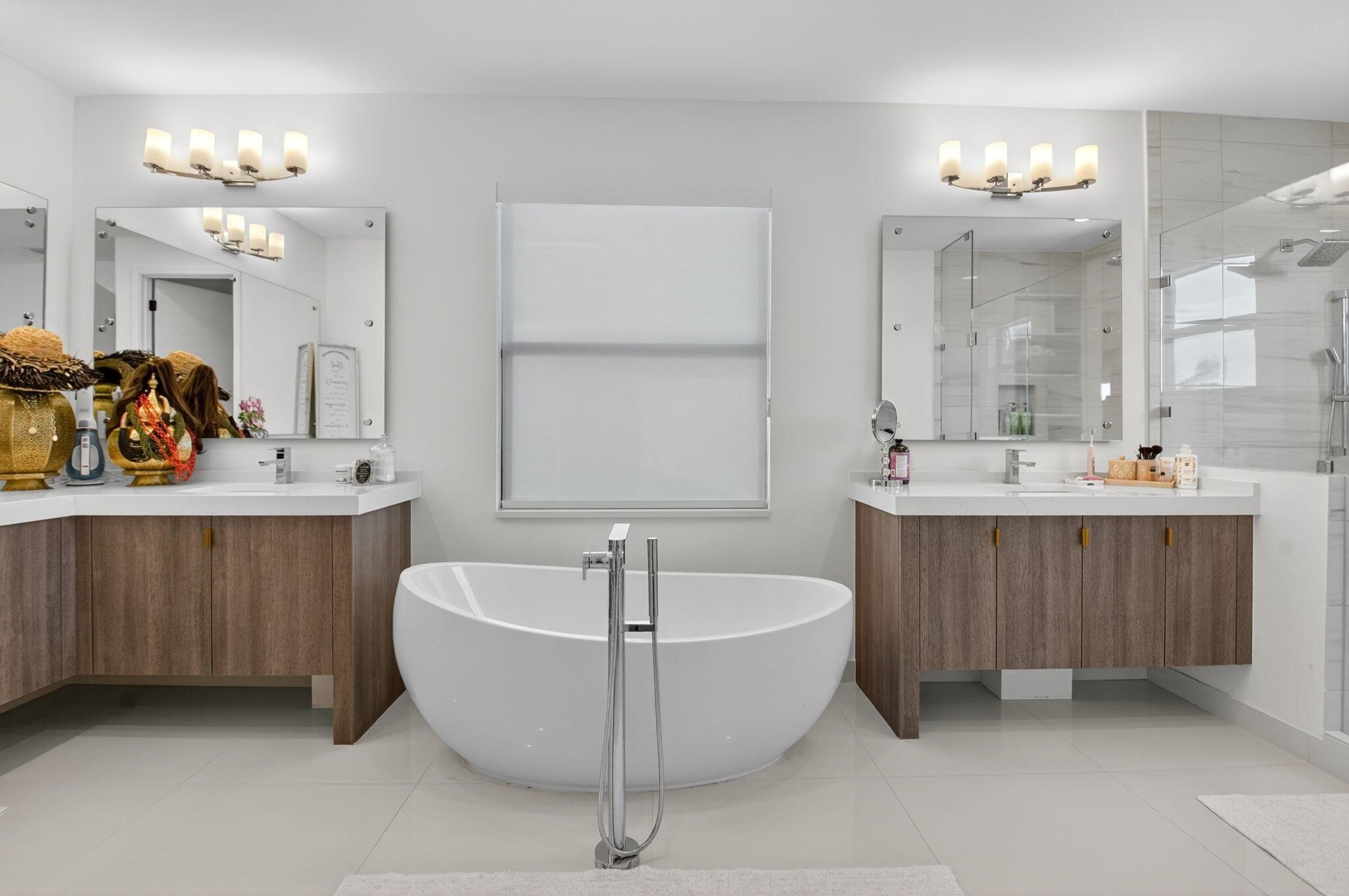 This stunning 5 bedroom, 5 full bathrooms Contemporary Home boasts numerous high-end features and designer finishes, including breathtaking lake views. This modern home is just 4 years young, its situated in the highly sought-after Lotus Community, No club membership fees. The expansive Salt Water Pool, patio, and yard offer picturesque views of the lake. Upgrades throughout the home include glass banisters, porcelain and hardwood flooring, and a sleek kitchen equipped with top-of-the-line high end appliances, a Ferguson Frig, including gas stoves and wall oven too!Relax in on the 2nd floor Balconies with the serene Lake Views facing East .The Club House Is The Icing on The Cake ! with numerous amenities Tennis, Pickleball, and So Much More!