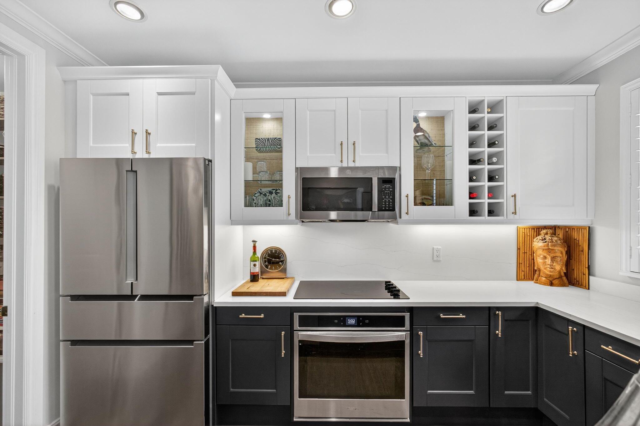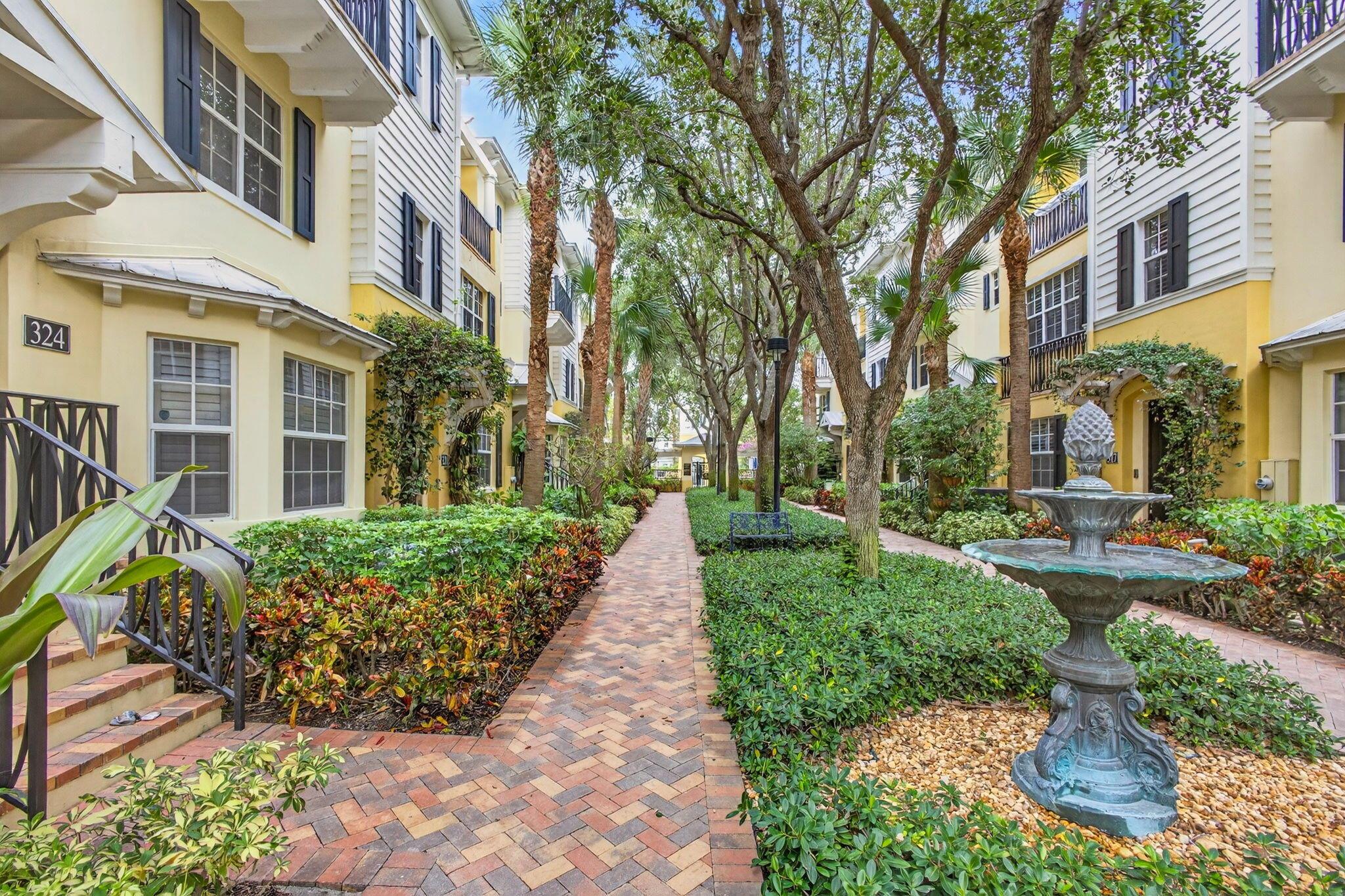 Located 1 block off the Intracoastal Waterway in downtown West Palm Beach, this stunning Magnolia townhome blends timeless British West Indies design with modern comfort. Lot #24, facing south, is positioned in the most popular courtyard location with tropical landscaping & tranquil fountains. This spacious 3BR/4BA/2CG combines high ceilings with abundant natural light,creating a home that feels sophisticated & welcoming. The 1st floor features a large flexible bedroom/den with a charming bay window overlooking the lush courtyard. This space works perfectly as a guest suite, home office or media room. A full bath with slate-inspired tile, laundry room & 2 car garage add to the home's everyday convenience. The 2nd level is designed for entertaining with solid imported hardwood