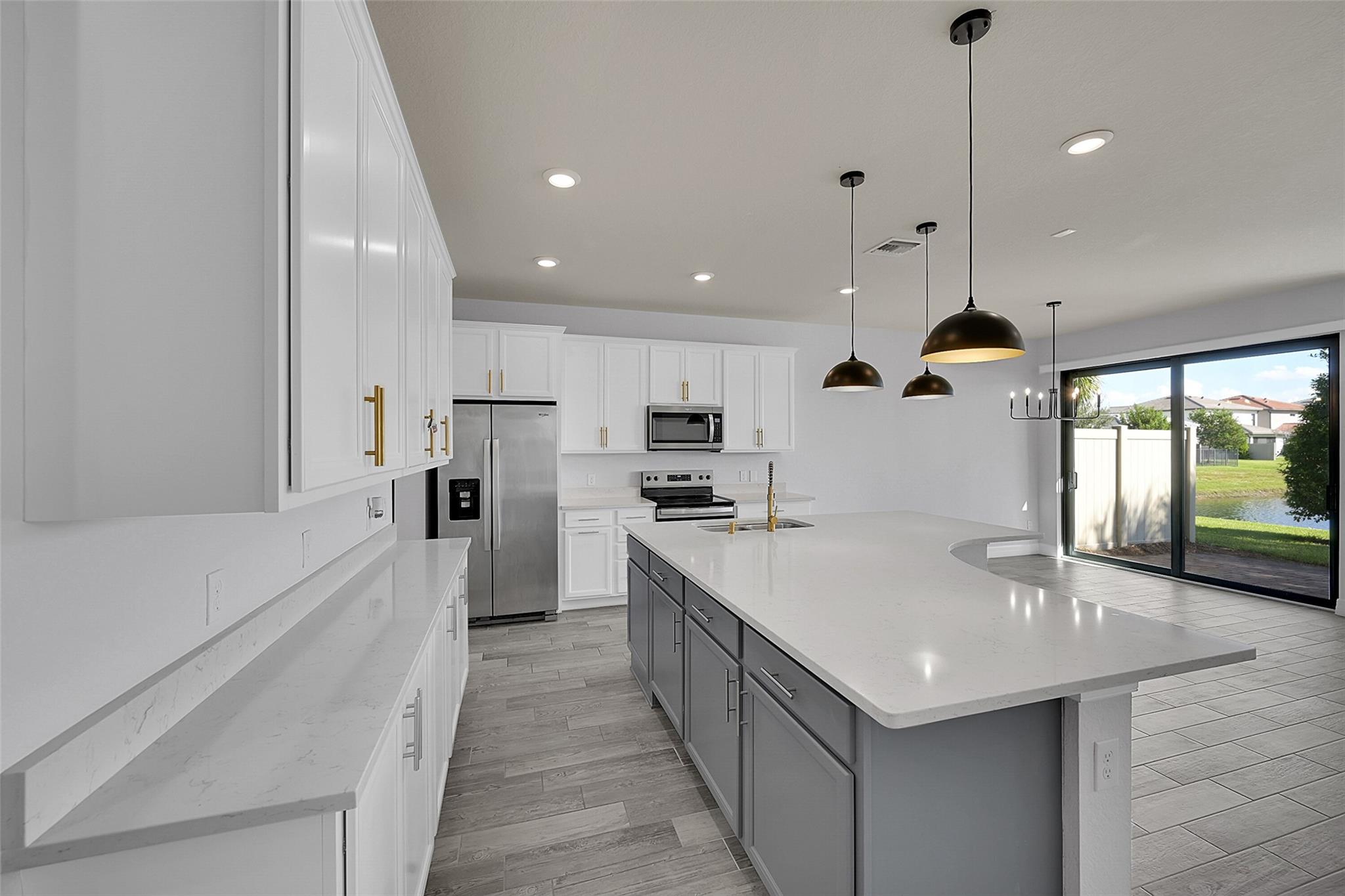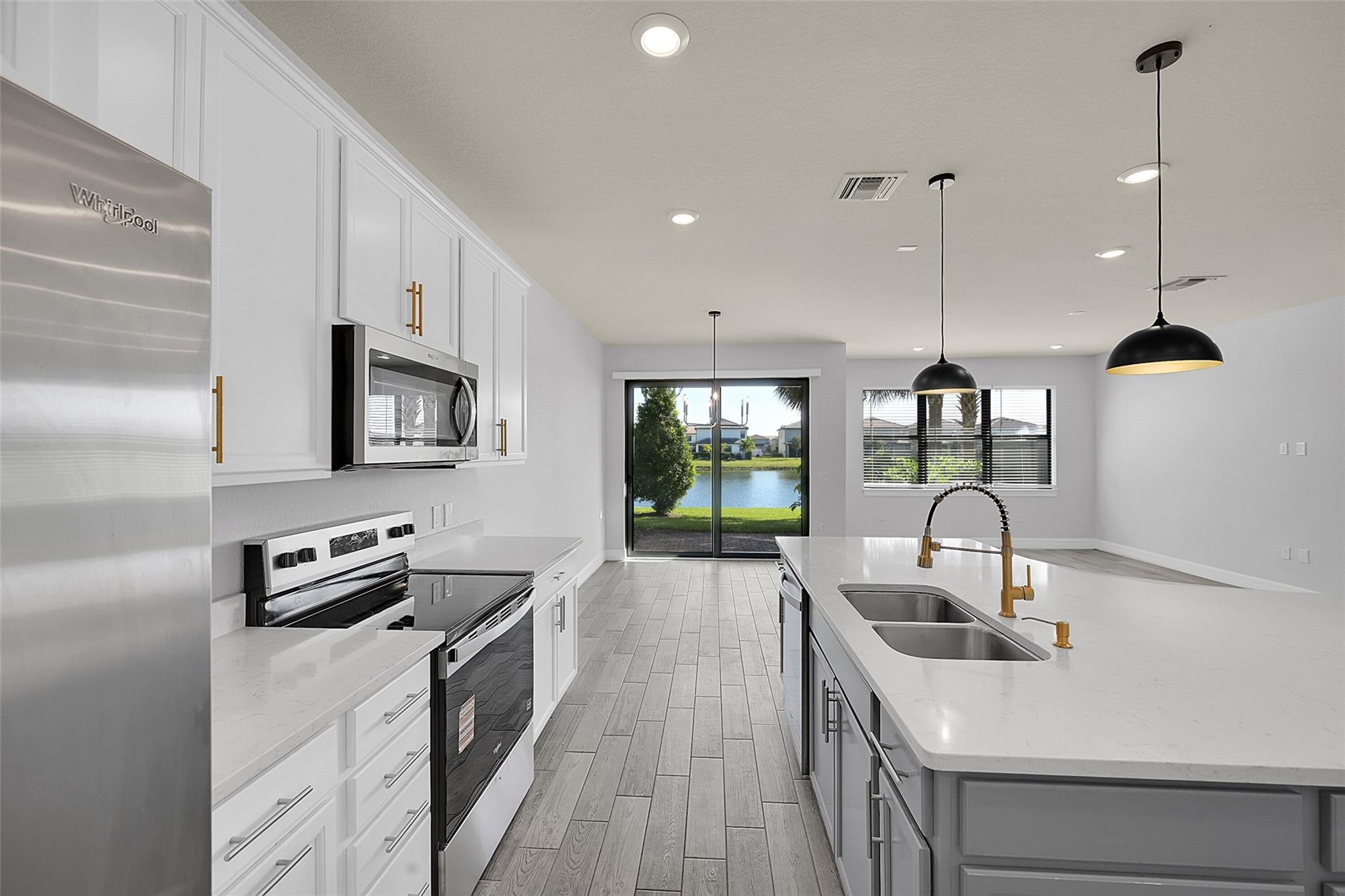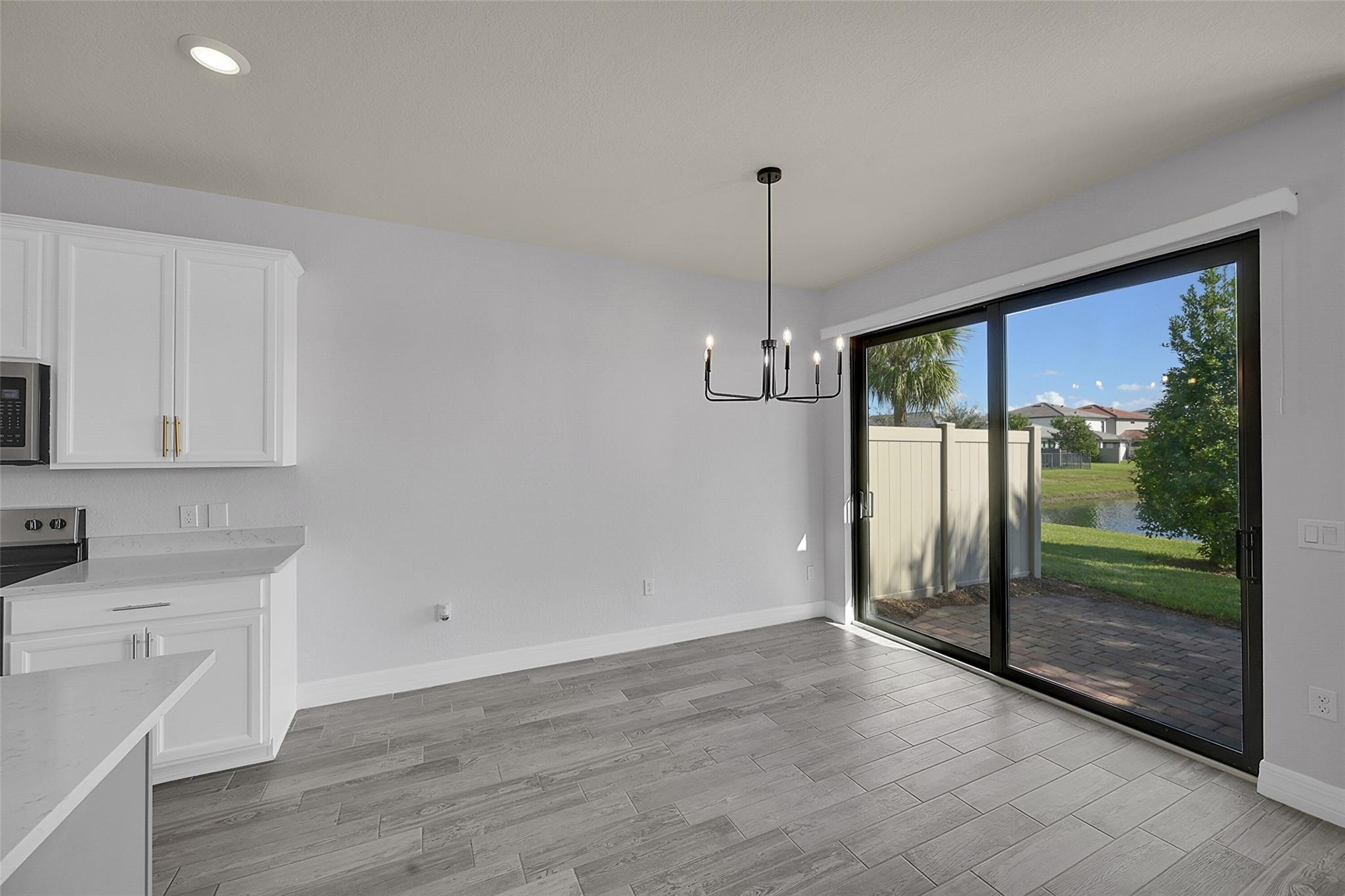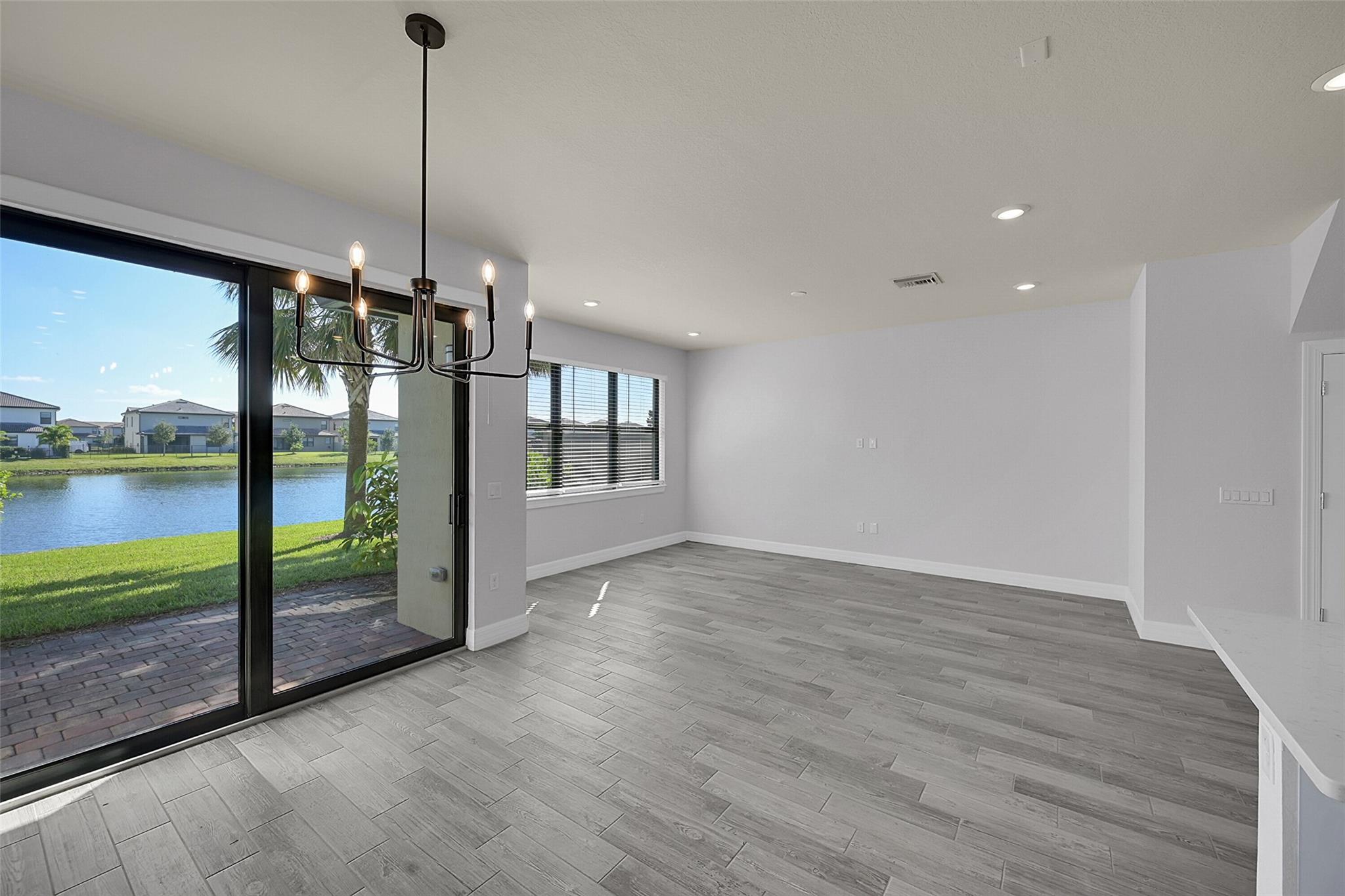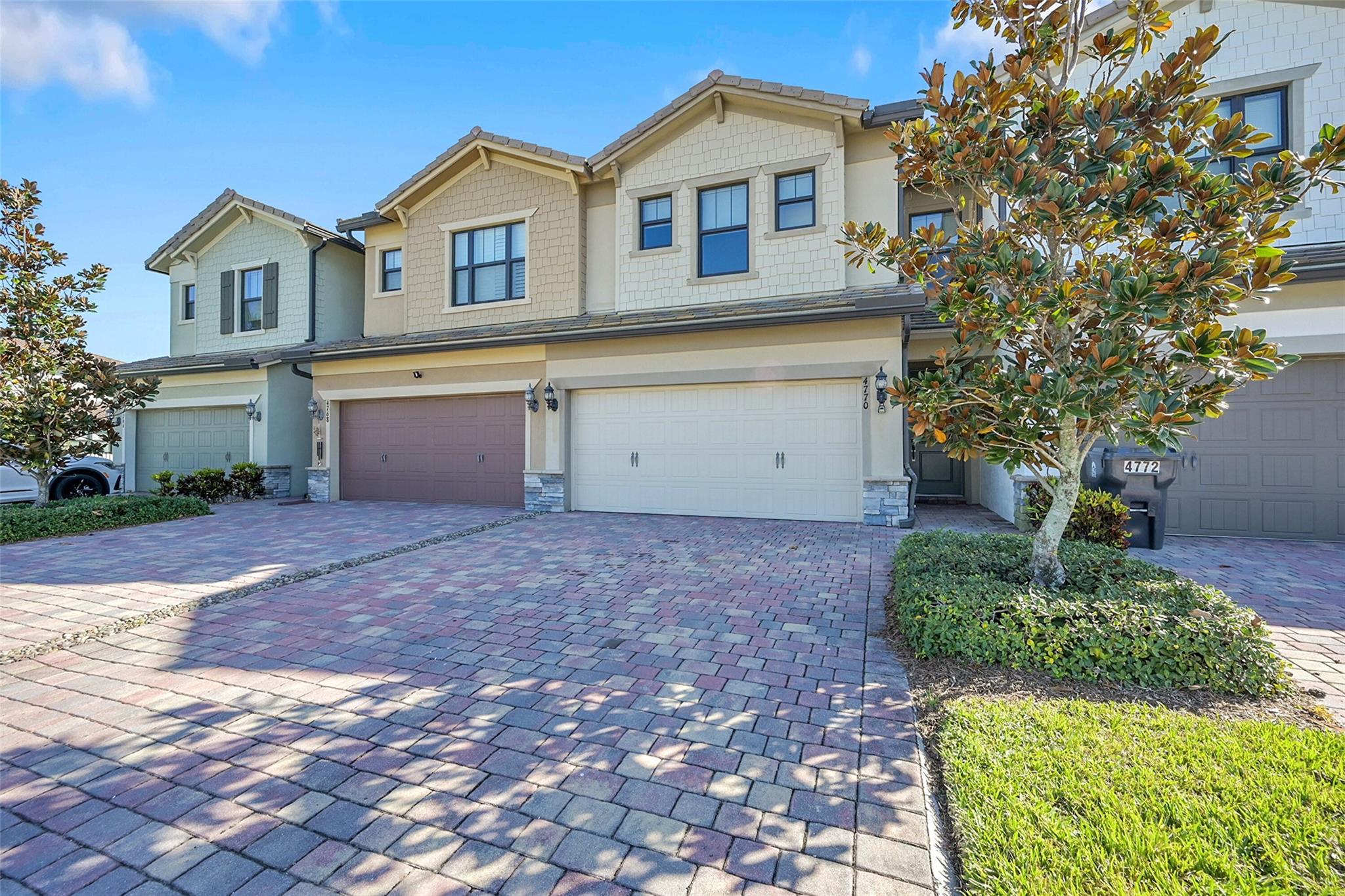 Beautiful water front townhome in the sought-after gated community of The Fields! This home features 3 bedrooms, 2.5 bathrooms, a 2-car garage, all conveniently situated walking distance gorgeous luxury amenity centers of the community. This home includes full house impact glass, a concrete tile roof, & lake front paver patio for outdoor entertaining. This beautifully designed home boasts custom upgrades throughout its open floor plan.