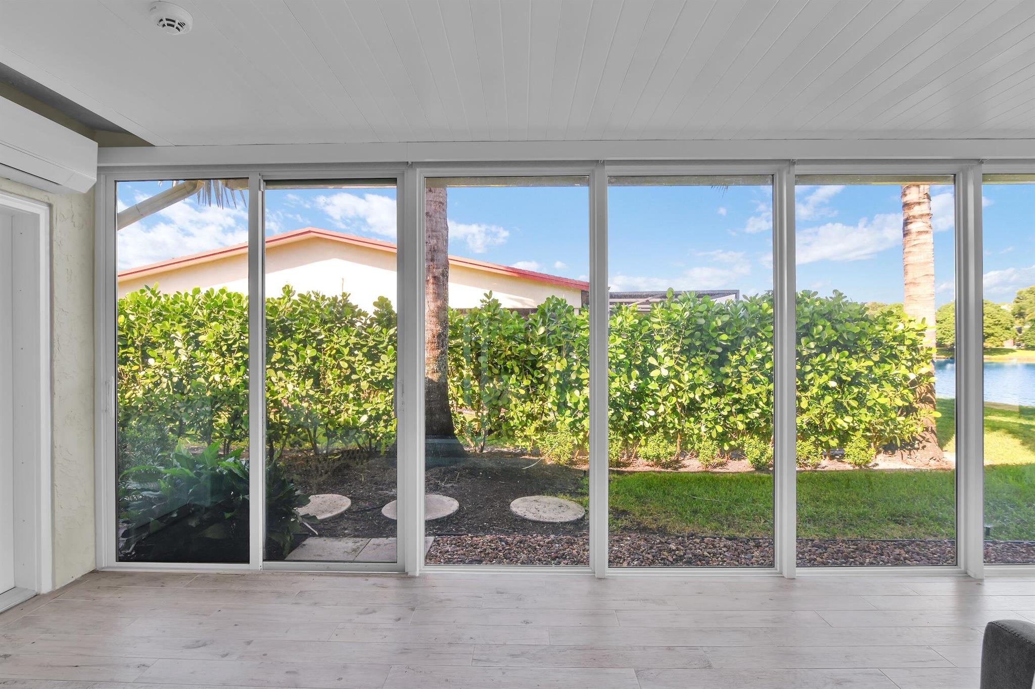 Experience lakeside living at its finest in this beautifully updated 2B/2BA waterfront home with a 2-car garage in Coco Wood Lakes- one of Delray Beach's most convenient, active-adult & pet-friendly communities near Atlantic Ave & the beach. This light-filled home offers open living areas flowing to a lanai & outdoor patio- perfect for relaxing or entertaining with tranquil lake views. A new glass-enclosed sunroom with split A/C adds versatile space for an office, studio, or gym. Modern kitchen features stainless appliances, dual barn-door pantries & a large island. Savoia Italia porcelain tile throughout, new impact windows/sliders, fresh interior/exterior paint, custom closets, updated baths, new W/D, Vivint security & landscape lighting. Low HOA includes cable, internet & amenities.