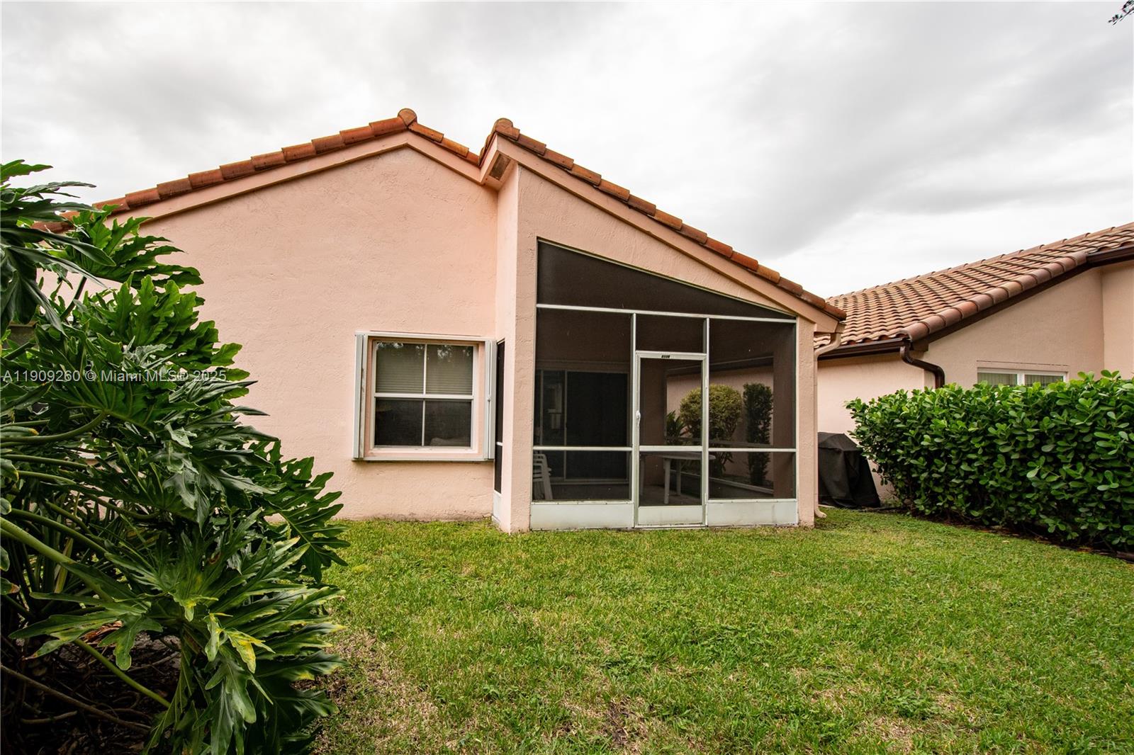 Immaculate & Serene 2BR/2BA Home in a Premier Resort-Style Community. Enjoy comfort and elegance in this impeccably maintained residence with a spacious split-bedroom layout and versatile floor plan. The bright galley kitchen features a cozy eat-in area, ample cabinetry, and a full-size pantry. Vaulted ceilings enhance the sense of space, and elegant chair rail molding in the dining area with an offset built-in bar and cabinets. The primary bedroom includes an excellent walk-in closet, and the primary bath includes a Roman tub, separate shower, dual vanities, and a linen closet. The second bedroom features built-in office furniture and a Murphy bed for guests. A serene screened-in patio overlooks beautifully maintained landscaping.
