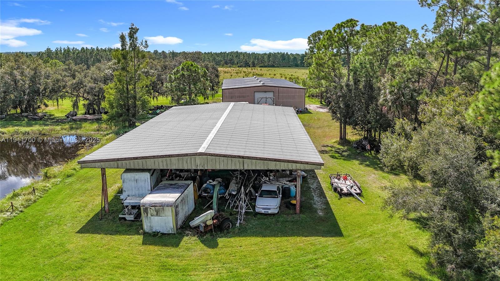 NATURE LOVERS! NATIVE FLORIDA AT ITS VERY BEST! Home plus hangar plus 5,000 SF equipment steel pole barn plus 1,100 SF RV/Boat port! A rare country estate that combines comfortable living and versatility in the peaceful Muse area of LaBelle. This top-of-the-line and custom designed 2004 modular home has 3 bedrooms, 2 baths plus a family room/den, and over 2,400 sq ft of heated living space (3,567 sq ft total under roof). The property’s truly move-in ready—including a new 5-ton A/C system (2025), a new metal roof (2024), and a 20 KW Generac whole-home generator for complete peace of mind. A welcoming covered front porch (15' × 26') sets the tone, leading into a bright ceramic-tiled foyer and a spacious, open interior.