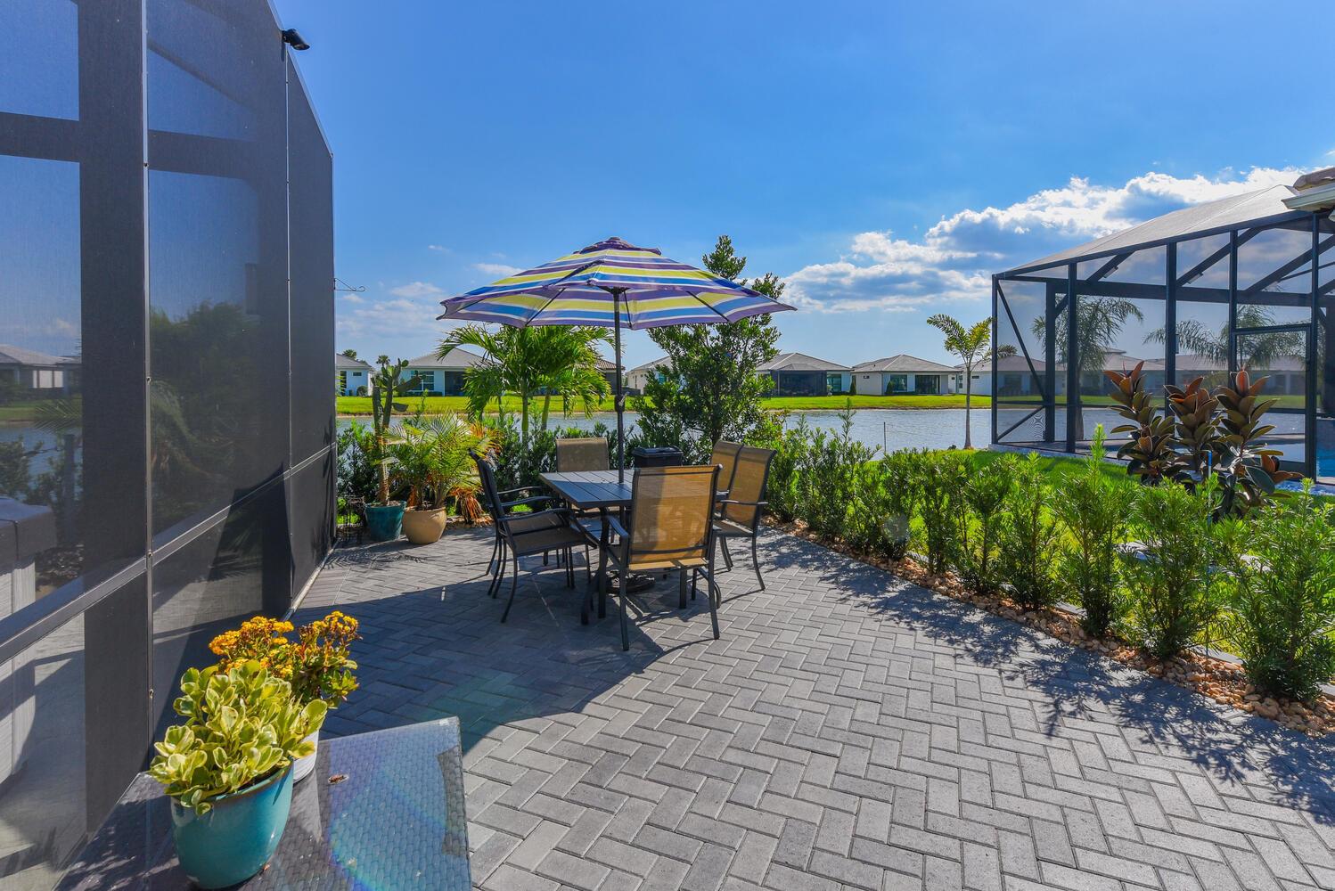 Must-see home - priced to sell and packed with WOW! This show-stopping residence offers $200K+ in luxury interior and exterior upgrades with designer finishes throughout. The desirable open floor plan features a bonus room/3rd bedroom, no carpet, & a stunning quartz kitchen with beautiful cabinetry for a sleek, modern feel. Step into your 1,466 sq. ft. outdoor oasis a beautifully screened lanai with peaceful lake views, designed for year-round living and unforgettable entertaining. This incredible space includes stamped concrete, electric shade, synthetic turf, an immaculately maintained hot tub, a summer kitchen, a Vegepod garden, 360 LED lighting, a TV mount, additional outlets, a lanai hose hookup, a hammock, with an umbrella. Lush landscaping, stone accents, & soaring Christmas Palms