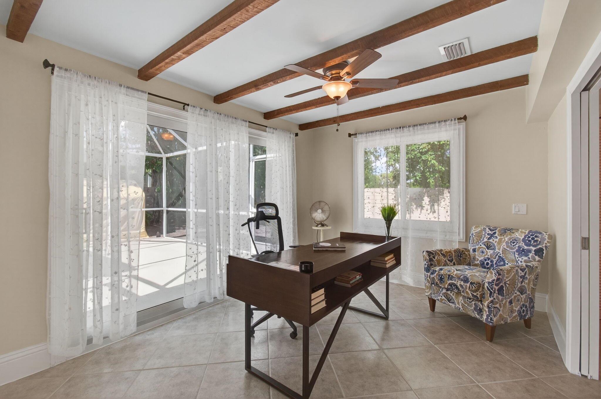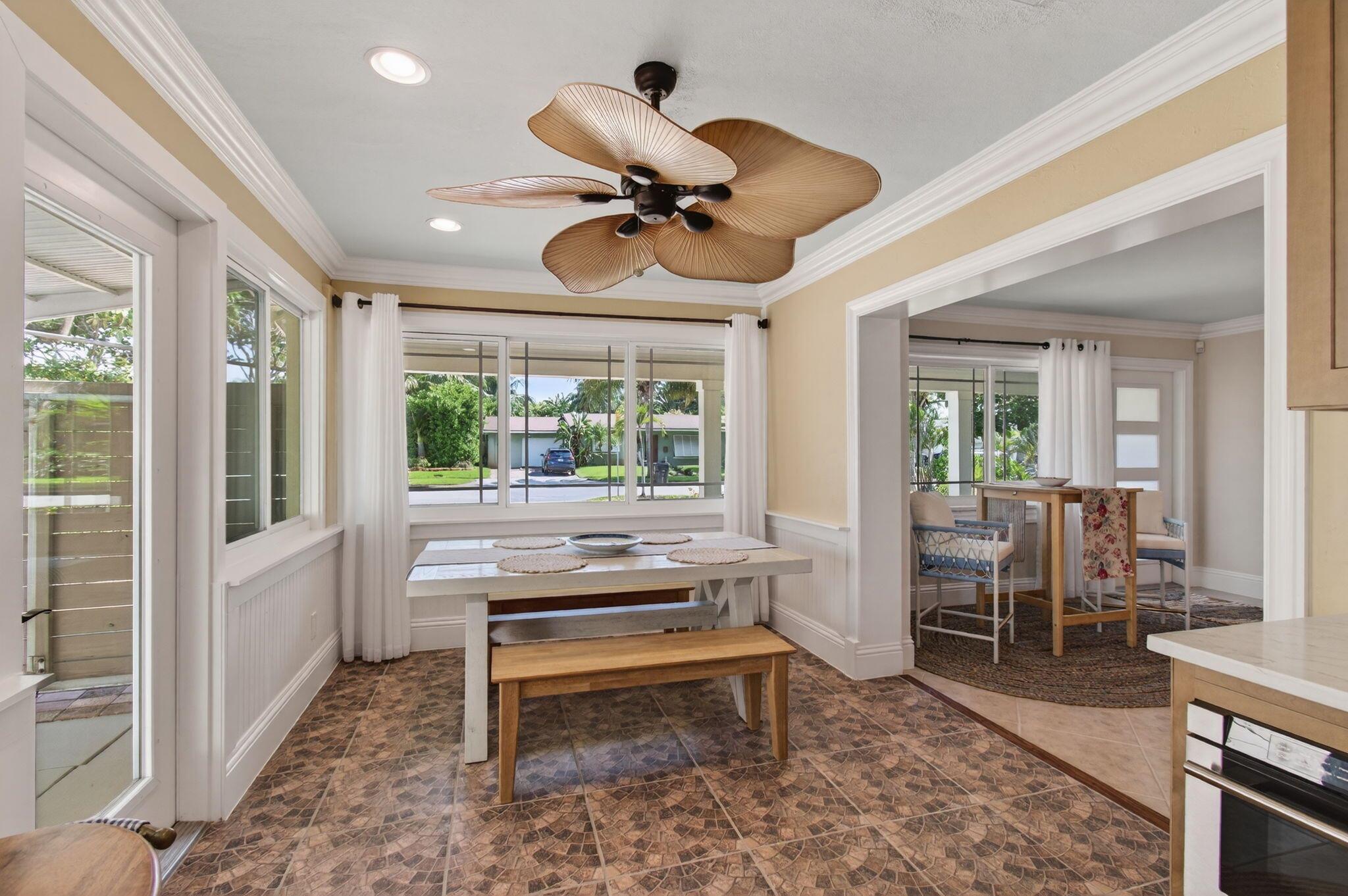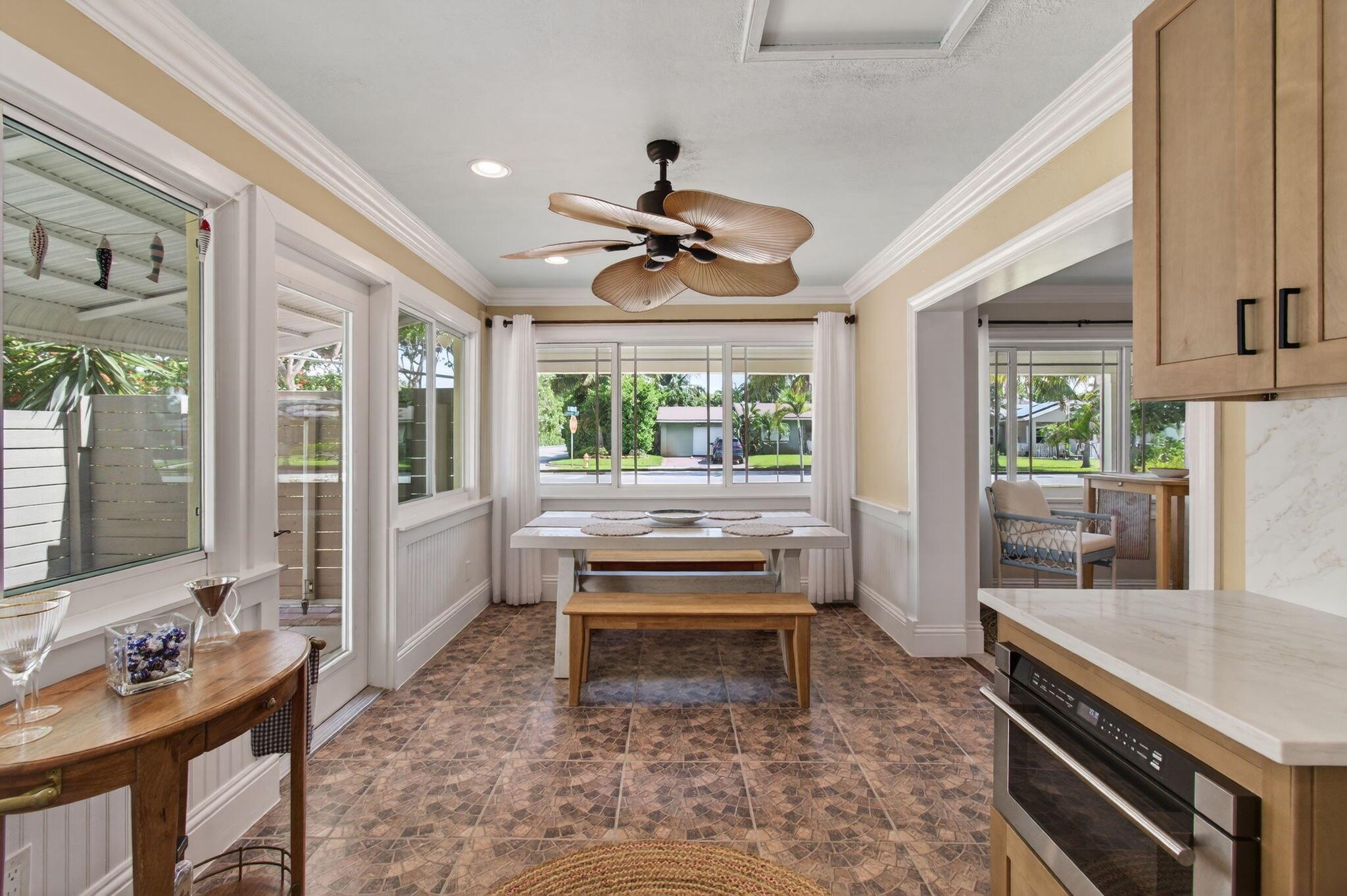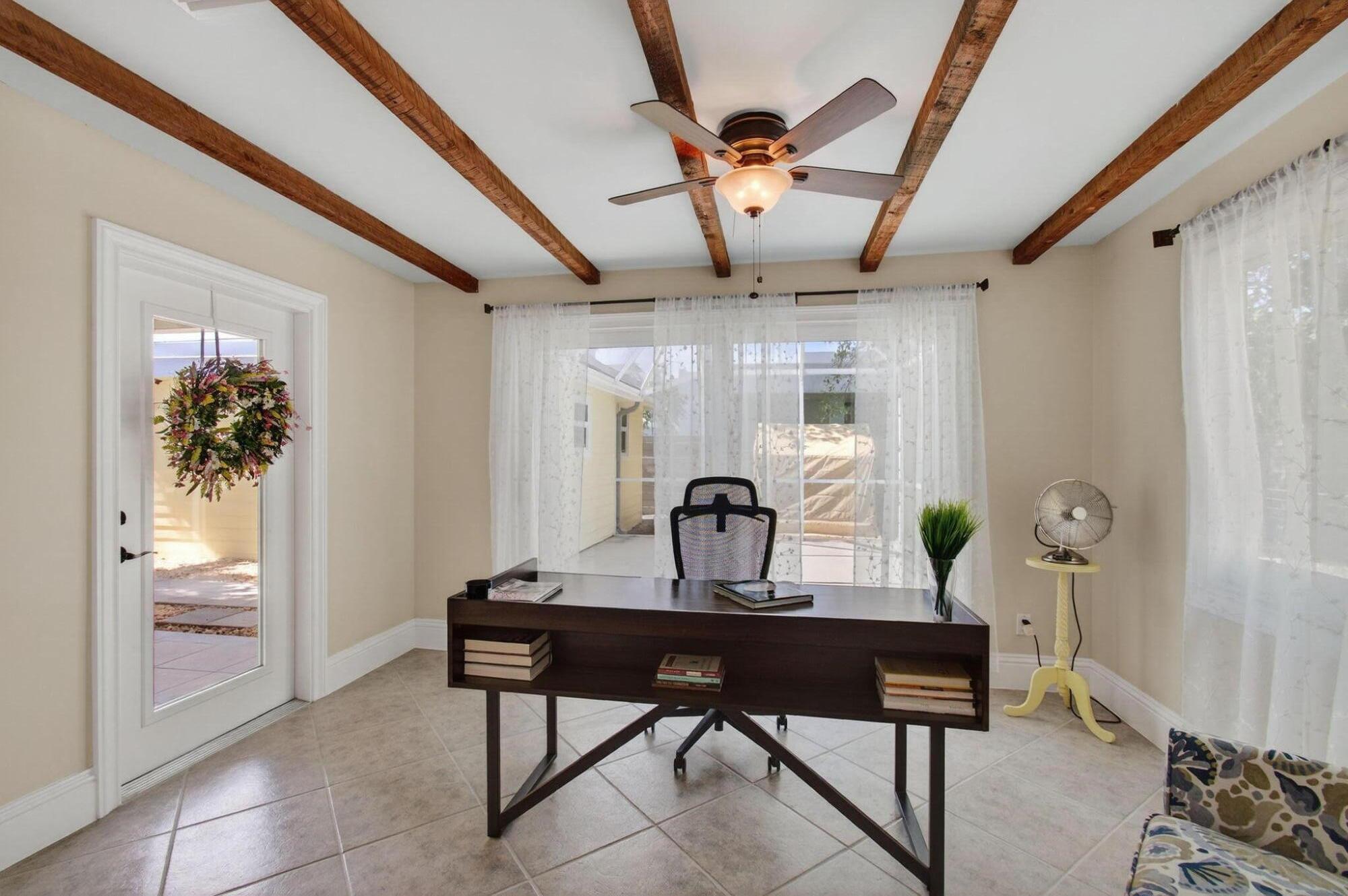 New roof installed and completed in November 2025 on both the main home and cottage, with a transferable 30-year warranty. The single-story concrete block construction (CBS) main home and adjacent cottage have been completely updated with hurricane impact windows and doors. Two new hot water heaters with transferable warranties were installed in 2024. All the work has been completed and is now waiting for a new homeowner to relax and enjoy! The main home features three bedrooms and two full baths, along with a den/office enclosed by full glass pocket doors. A newly installed kitchen (2025) in the main home showcases a neutral palette with 42-inch solid wood cabinets and dovetail soft-closing drawers. The home also features custom crown and baseboard molding throughout.
