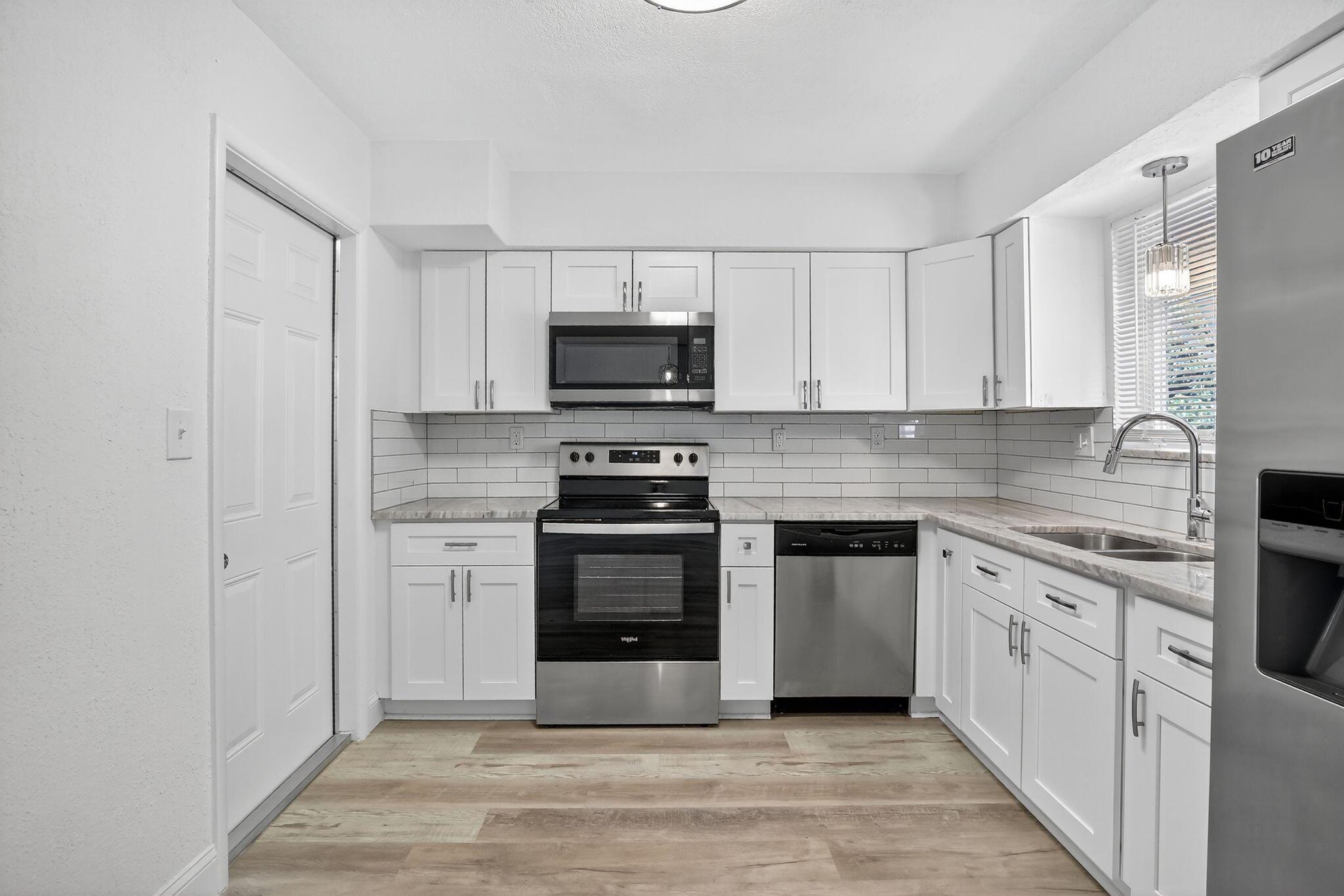 Beautifully updated 3-bedroom, 1.5-bath home featuring a modern kitchen with stainless steel appliances, updated cabinets, and sleek finishes. Enjoy the comfort of brand-new vinyl flooring throughout, an updated bathroom, and major upgrades including a NEW AC system, NEW shingle roof, and NEW tankless water heater. This move-in-ready home offers style, efficiency, and peace of mind with all the big-ticket updates already done--perfect for anyone looking for a fresh, low-maintenance home.