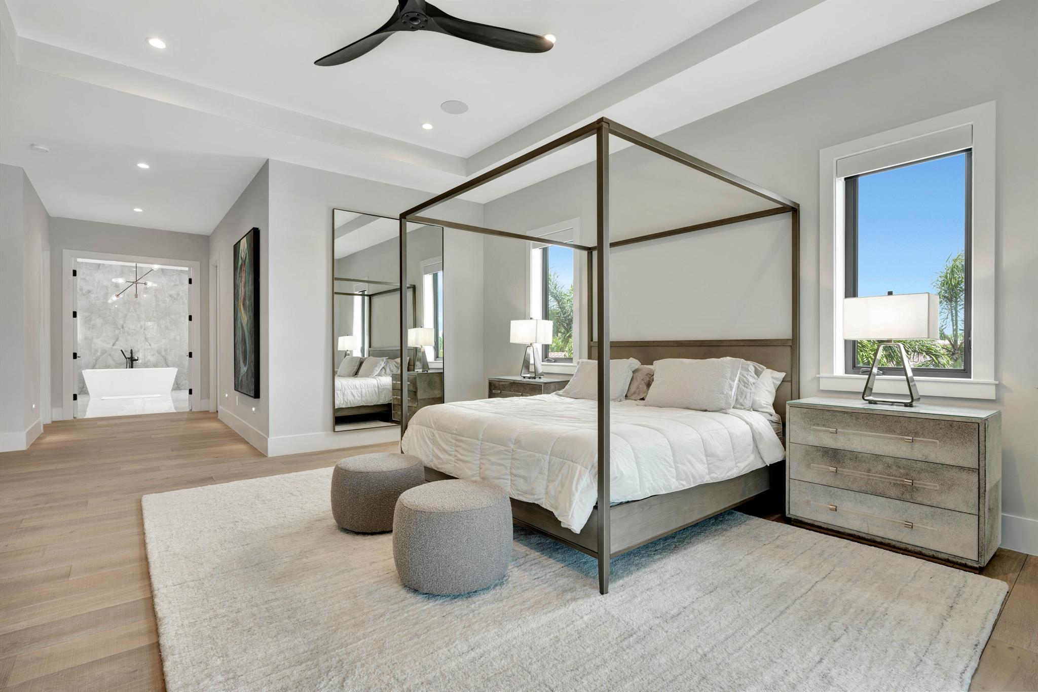 A waterfront masterpiece redefining South Florida luxury.Welcome to the kind of home that only exists in dreams and magazine spreads: a 2023 custom-built sanctuary set along 188 feet of wide, navigable water with direct ocean access and no fixed bridges. Tucked within a quiet cul-de-sac and surrounded by swaying palms and shimmering blue vistas, this modern coastal estate captures the very soul of Palm Beach luxury living.Step inside to soaring ceilings, sun-drenched living spaces, and a seamless blend of sophisticated design and resort-level comfort. The versatile plan offers six ensuite bedrooms, including three private primary suites, perfectly adaptable as a den, game room, or office, plus a club room with golf simulator and dual laundry rooms for ultimate convenience.
