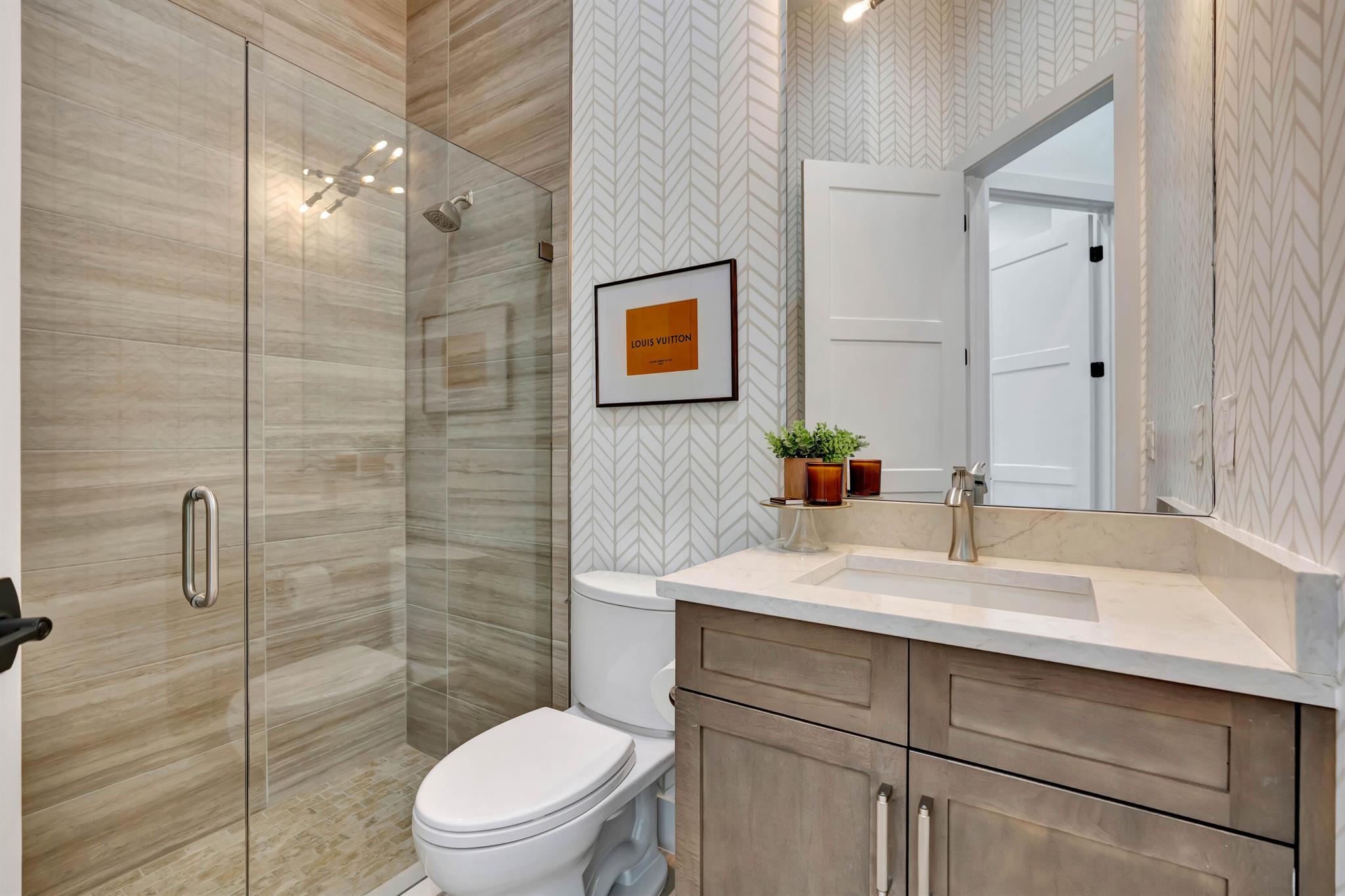 Artistry - The Decorator Fully Furnished Model You've Been Waiting ForBuilt in 2022 and upgraded far beyond builder standards, this fully furnished residence in Artistry shows like a designer model home. Every space has been elevated with thoughtful improvements, premium finishes, and custom craftsmanship, creating a luxury offering in one of Palm Beach Gardens' most desirable gated communities.Wide-plank hardwood flooring runs throughout the home. Custom cabinetry, upgraded hardware, designer lighting, and bespoke built-ins anchor each room with a polished, curated feel. The main living area features a custom media wall with integrated bar, two refrigerator drawers, and a wine refrigerator. The study includes a striking built-in workspace finished with a live-edge slab. (more)