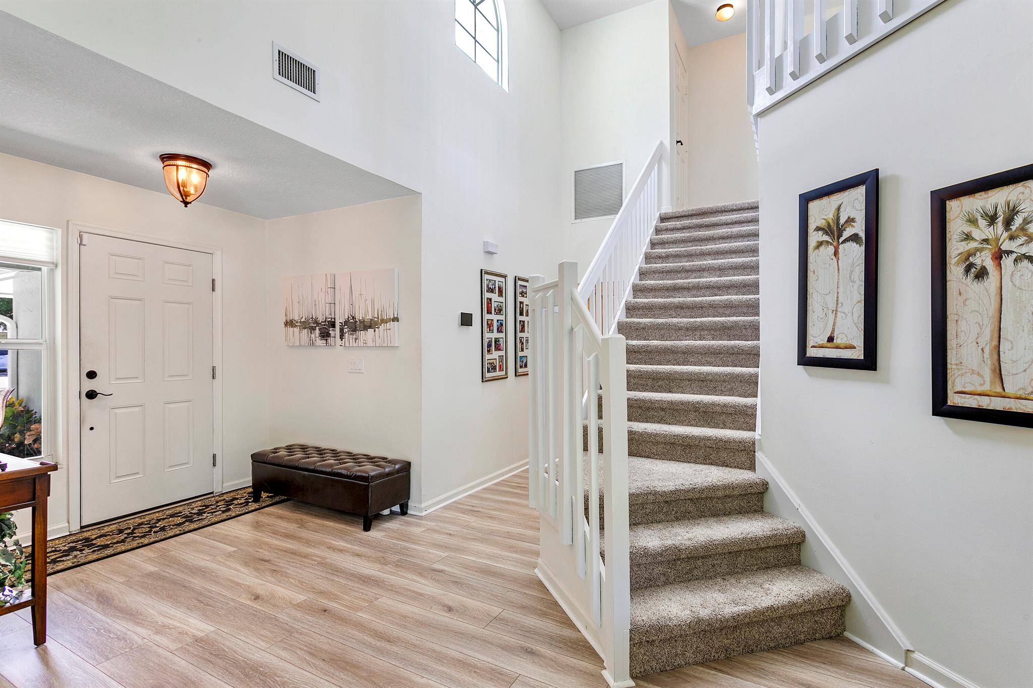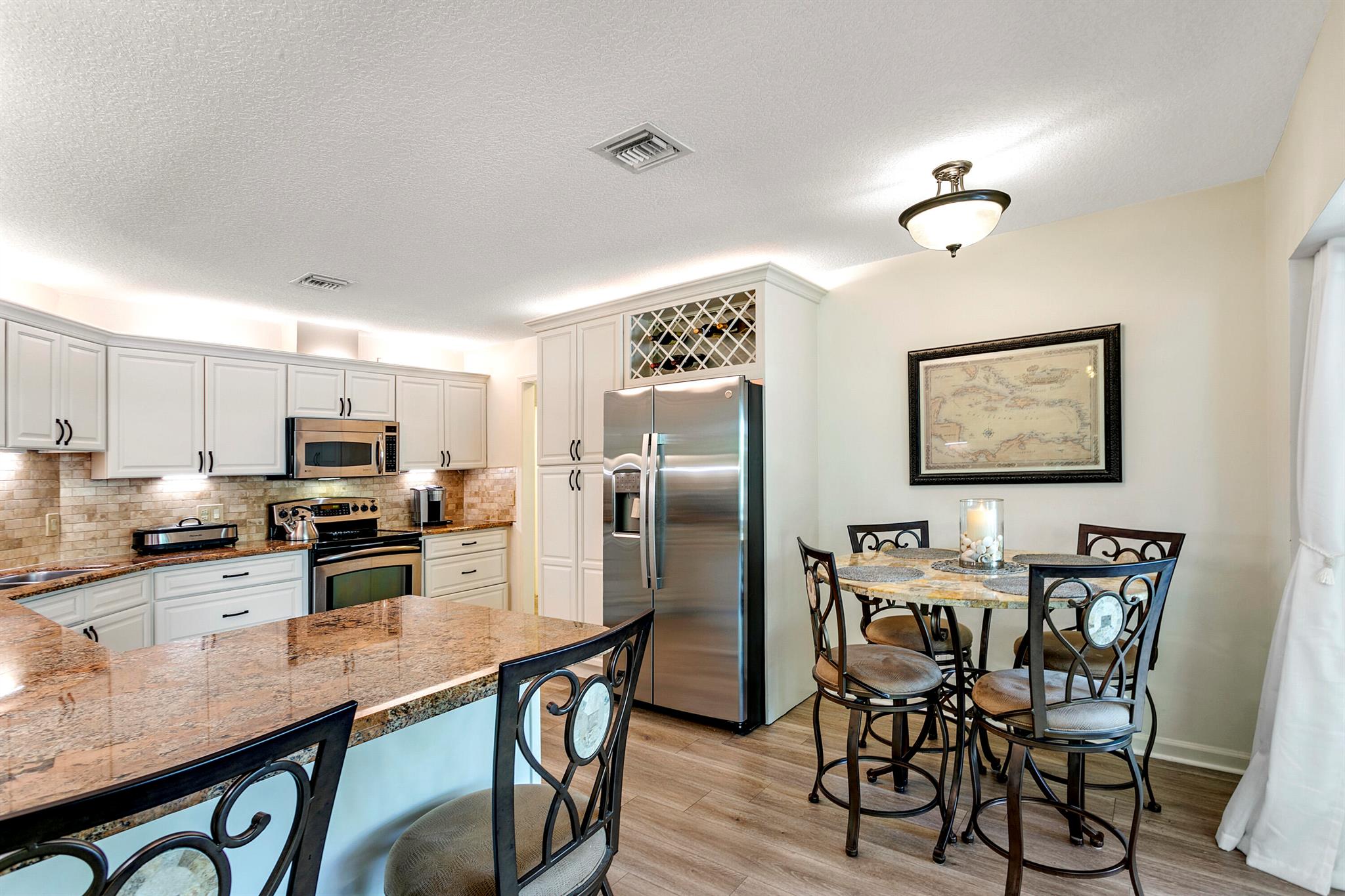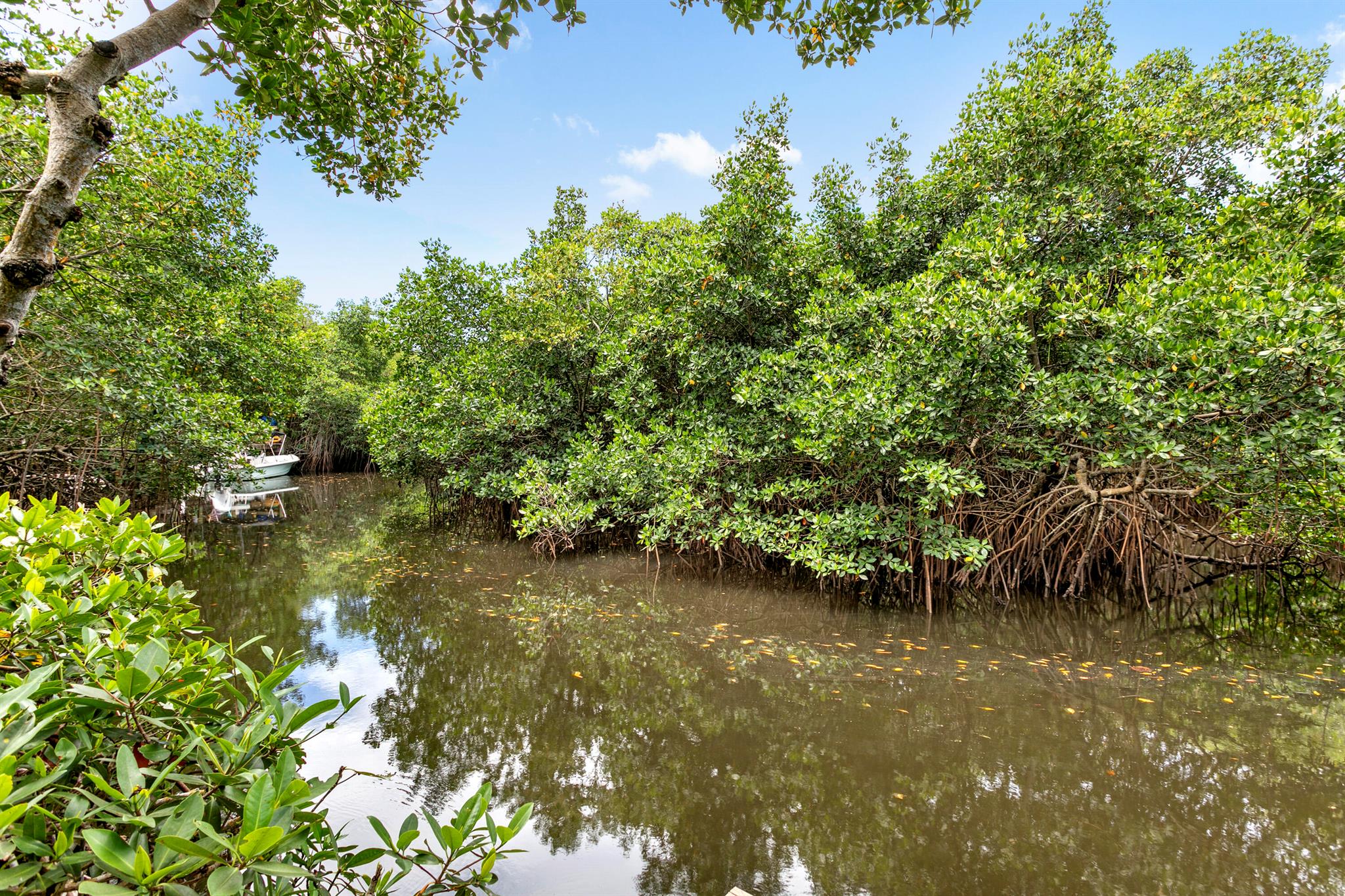 Updated CBS home on a private corner lot with 280' of waterfront on scenic Jones Creek. Enjoy boat watching and wildlife from your tropical oasis with saltwater pool, spa and upstairs balcony. Outside you'll find a spacious screened in patio and two docks! One with a lift on the canal that fits up to a 20ft boat with a covered fish cleaning station and water, electric. The second is a 12ft fishing dock overlooking the waterways of Jones Creek. 3 beds (master up) and 2 baths, 2 top of the line ACs w/dehumidifiers (2024), PGT impact windows and sliding doors, metal roof (2018), hurricane-rated garage door, alarm, surge protector, 12kW generator. Quiet cul-de-sac, spacious yard with palm trees, low HOA ($700/yr), top-rated schools (Jerry Thomas, IMS, Jupiter).