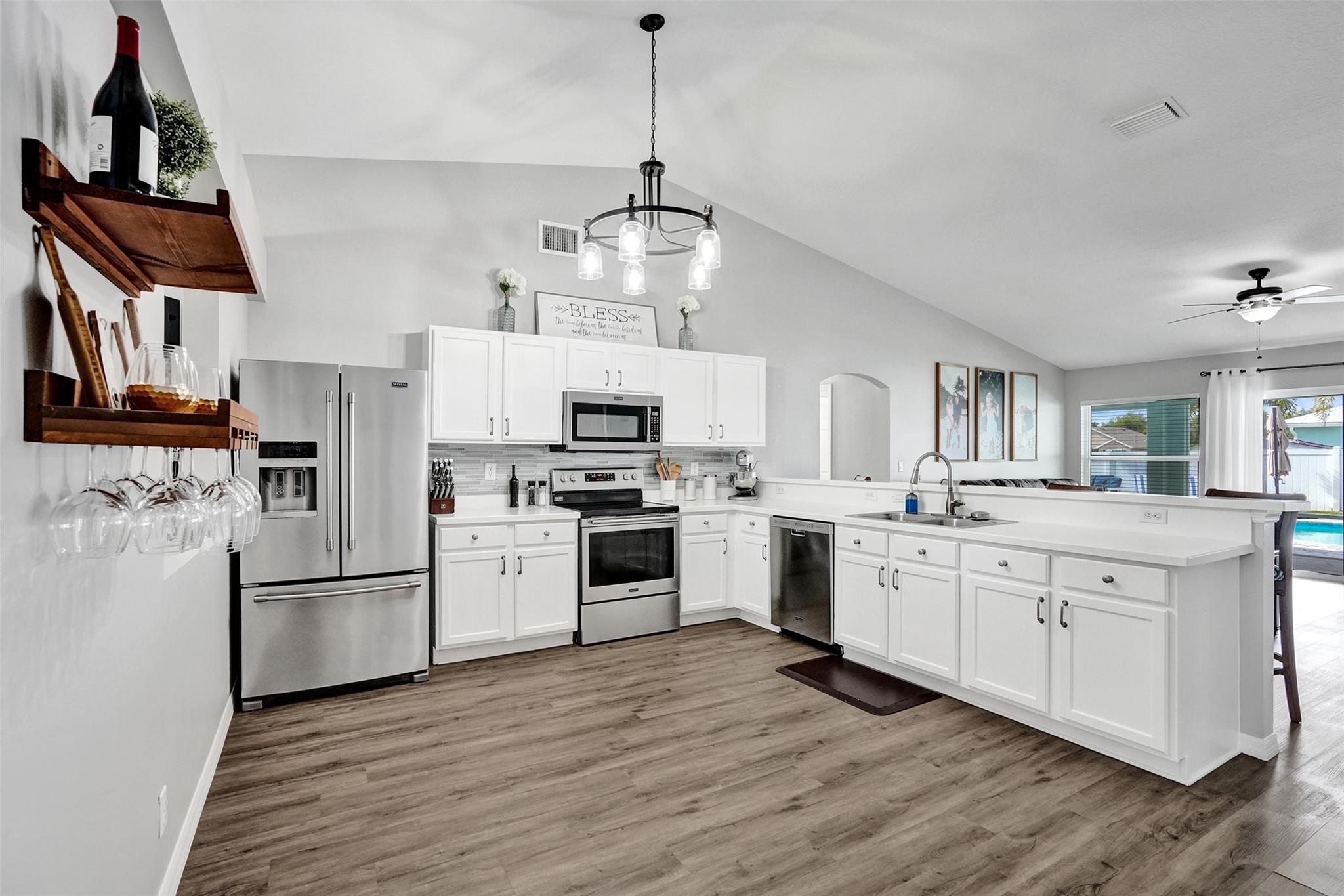 Discover this beautifully updated, coastal inspired home in pristine, turnkey condition! This 3-bedroom, 2-bath home offers 1,808 sq. ft. of living area on a spacious lot. Step inside to find a bright, open floor plan featuring luxury finishes and thoughtful upgrades throughout. You'll have peace of mind with a new metal roof (2024), impact windows (2024), and A/C unit (2023). Enjoy Florida living at its best in this private fenced backyard, complete with an in-ground pool (2023), screened-in patio, and full irrigation system—ideal for relaxing & entertaining. Great location! Located between I-95 and the Florida Turnpike, this home offers an easy commute with no HOA restrictions. Amazing nearby parks: Woodland Trails, Jessica Clinton, and Whispering Pines. Short drive to the beach!