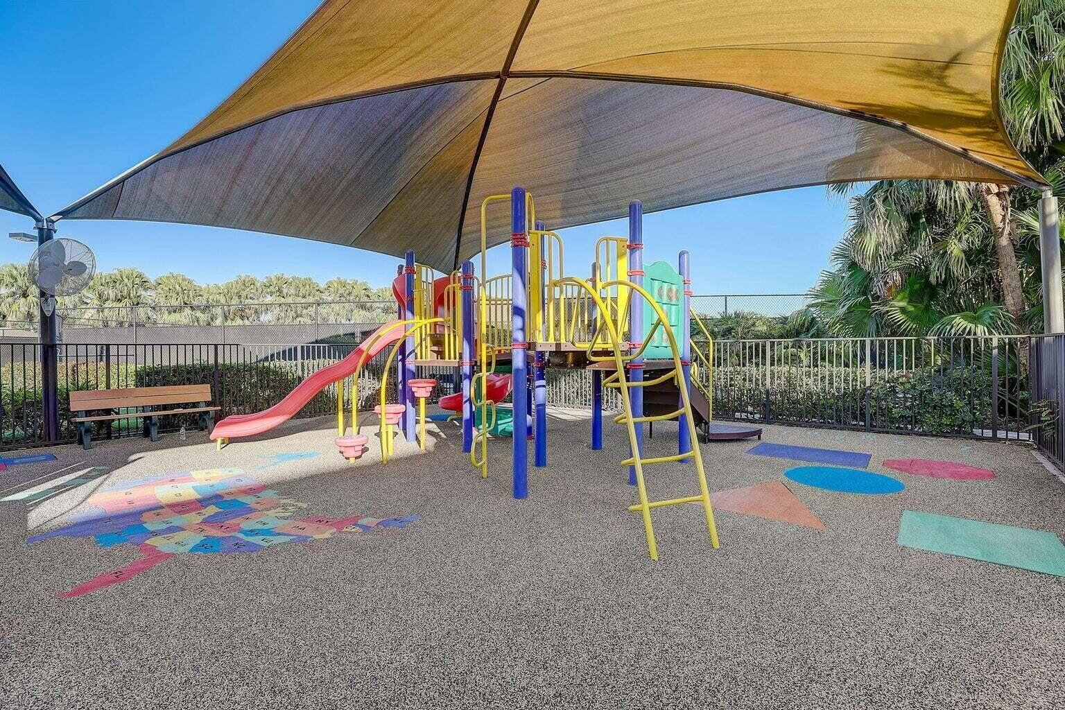 Welcome to this 4-bedroom, 2.5-bath home located in the desirable gated resort-style community of Mirabella. This extended El Prado model offers a spacious open layout with volume ceilings and a split floor plan with tile throughout; 4th bedroom currently set up as den. Perfect for both everyday living and entertaining the home features a large gathering room, open dining and kitchen with updated appliances and access to a private backyard oasis, complete with both covered and open patio areas and a peaceful green space. Additional upgrades include remodeled bathrooms with frameless glass showers, accordion shutters for storm protection, a tankless water heater, modern coach lights, and an extended-width driveway. Mirabella offers resort-style amenities including a gorgeous pool and