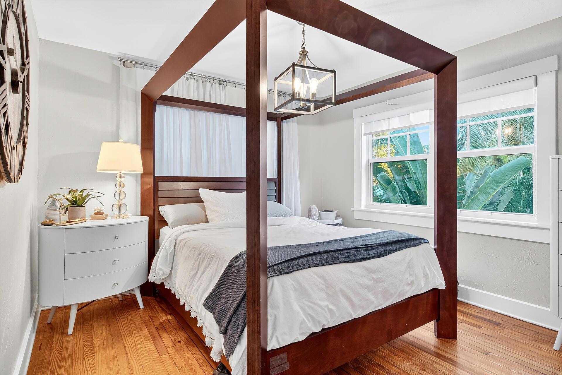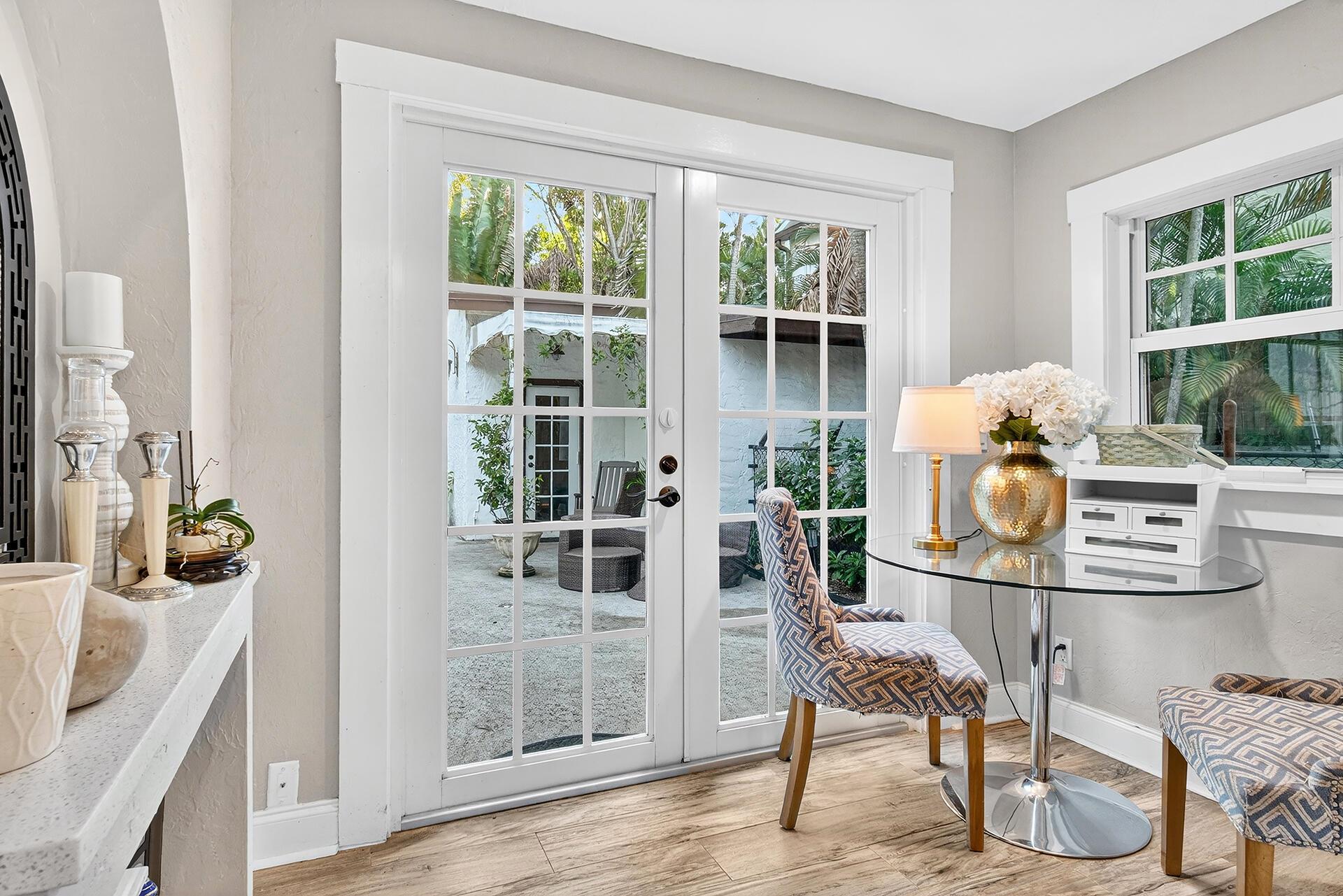 Welcome to 704 Claremore Drive in the heart of Flamingo Park. Built in 1925, this tranquil Spanish residence captures the grace of West Palm Beach's historic era while offering the comfort of modern living. 3 BD/2.5 BA Main House (Note: all 3 bedrooms are upstairs), a powder room/cabana bath downstairs, 2042 tsf/1834 under air, covered parking, a sunroom, a generous living room w/ original hardwood floors, high ceilings, wood-burning fireplace, charming dining room, updated kitchen, & cozy breakfast nook. Private backyard: mosaic-tiled, newly resurfaced, salt swimming pool & serene patio. 1 BD/1 BA Cottage (ground floor), 568 tsf, full kitchen. With impact windows, updates throughout & brick-paver driveway, this historic home offers a blend of period character & modern comfort.