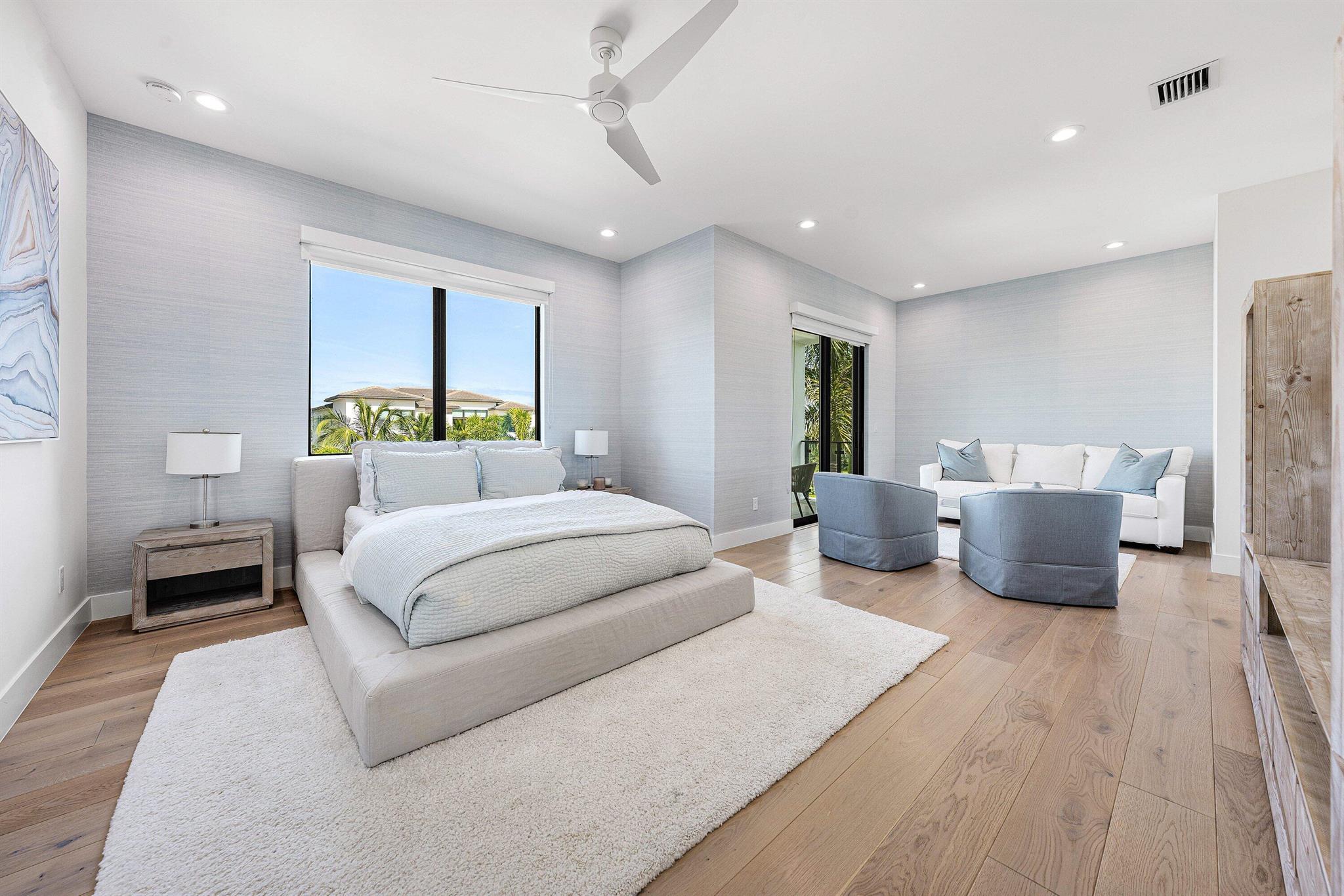Welcome to a one of a kind, custom-built ''Contemporary Veneto Estate'' in the exclusive Boca Bridges community. Meticulously crafted for the most discerning homeowner, spanning approximately 6,000 SF, 17416 Ponte Chiasso Drive features 5 generously appointed bedrooms and 7 elegant bathrooms. The Primary Suite is conveniently located downstairs, along with one other downstairs ensuite guest room, a Sauna/Yoga Studio, designated office, beautifully designed Club Room (or private dining), a state-of-the-art home theater, your own work from home ''Starbucks'' lounge, and a meticulously curated outdoor retreat all tailored for both relaxation and entertaining! The interior embodies a sophisticated ''West Coast'' aesthetic, with large format 24x36 tiles and hardwood floors throughout.