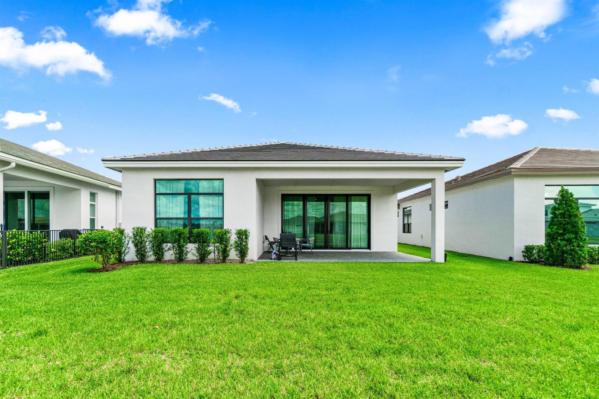 Stunning 3-Bedroom + Office, 3-Bath Home with Lake Views in highly desirable PGA Verano. This beautifully designed residence also features a spacious office, perfect for working from home or transforming into a guest suite or hobby room. Enjoy peaceful lake views from your private backyard, with ample space to build a pool. The open-concept layout seamlessly connects the gourmet kitchen, dining area, and expansive great room, making it ideal for both everyday living and entertaining. The primary suite has a luxurious en-suite bathroom and generous walk-in closet. Two additional bedrooms, each with access to a full bath, provide comfort and privacy for family and guests. Located in a premier gated community offering world-class amenities and minutes from golf, shopping and dining.