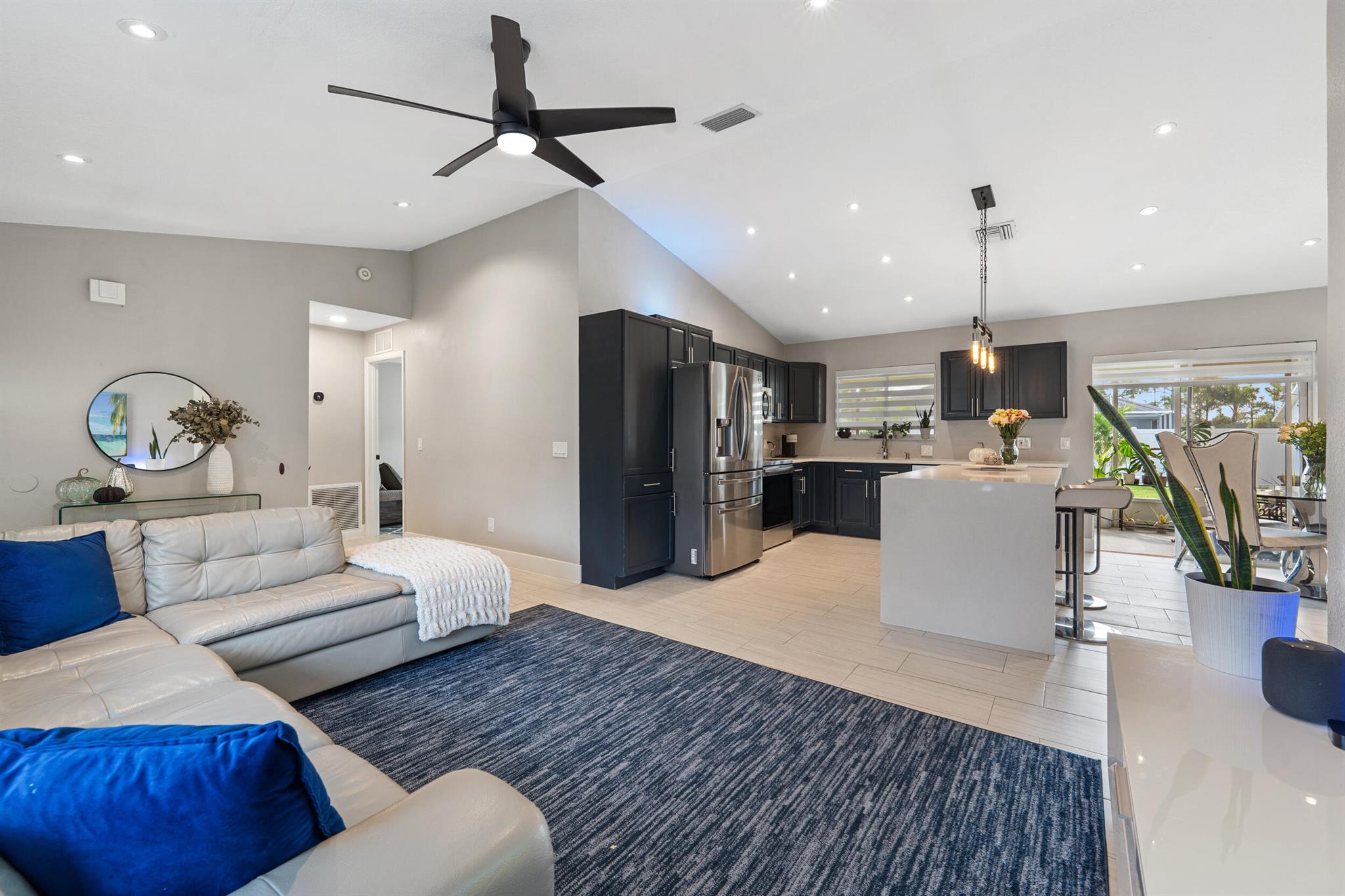 Fall in love with this darling 3-bedroom, 2-bath, 1-car garage home located in the heart of the highly desirable Southbend community -- where peaceful living meets modern style. From the moment you walk in, you'll feel the warmth and comfort this home offers. Every detail has been thoughtfully updated -- from the new flooring, baseboards to the modern kitchen featuring Corian countertops, stainless steel appliances, a spacious island, and sleek new cabinets that make cooking and gathering a joy. The open layout flows effortlessly into the living and dining areas, creating a bright, airy space perfect for relaxing or entertaining. The Master Bathroom is been tastefully updated, and the home shines with fresh paint, designer lighting, and custom blinds that add a clean, contemporary touch...