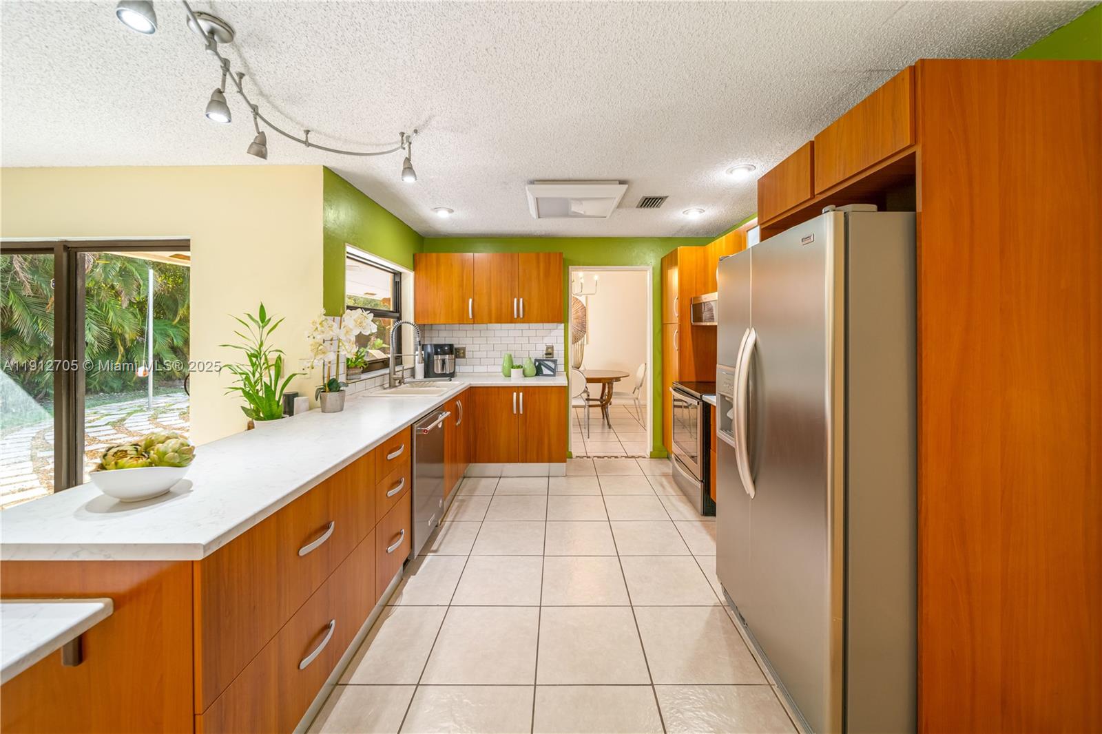 Stunning pool home located on an oversize cul-de-sac lot! Completely renovated Italian modern kitchen with gorgeous custom wood cabinets, stainless appliances, & breakfast bar open to the huge family room. Primary bedroom with direct access to pool & patio features a massive bathroom with a double vanity, free-standing elegant tub, and walk-in shower. Renovated guest bathroom. Whole-house hurricane protection with high impact windows and sliding doors. The back yard is a dream come true with its free form pool and surrounding patio, expansive designed paver play area with fire pit, covered patio, and lush privacy landscaping. Side yard offers space to park your boat. Excellent schools. Easy access to highways, shopping, theater, restaurants, hospitals. Low $30 monthly maintenance.