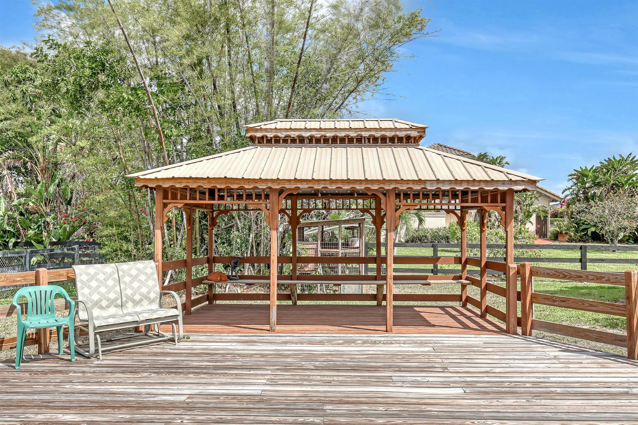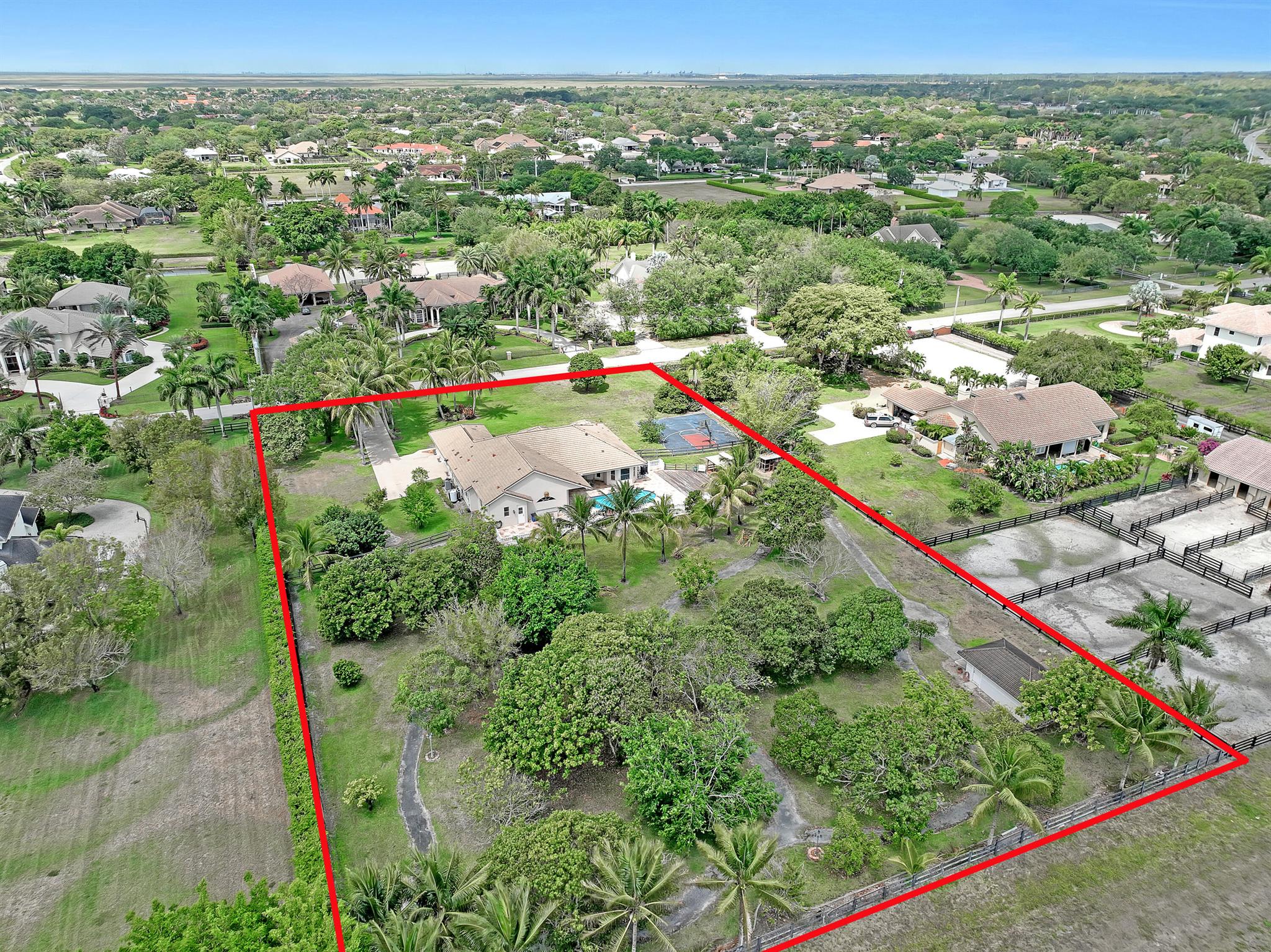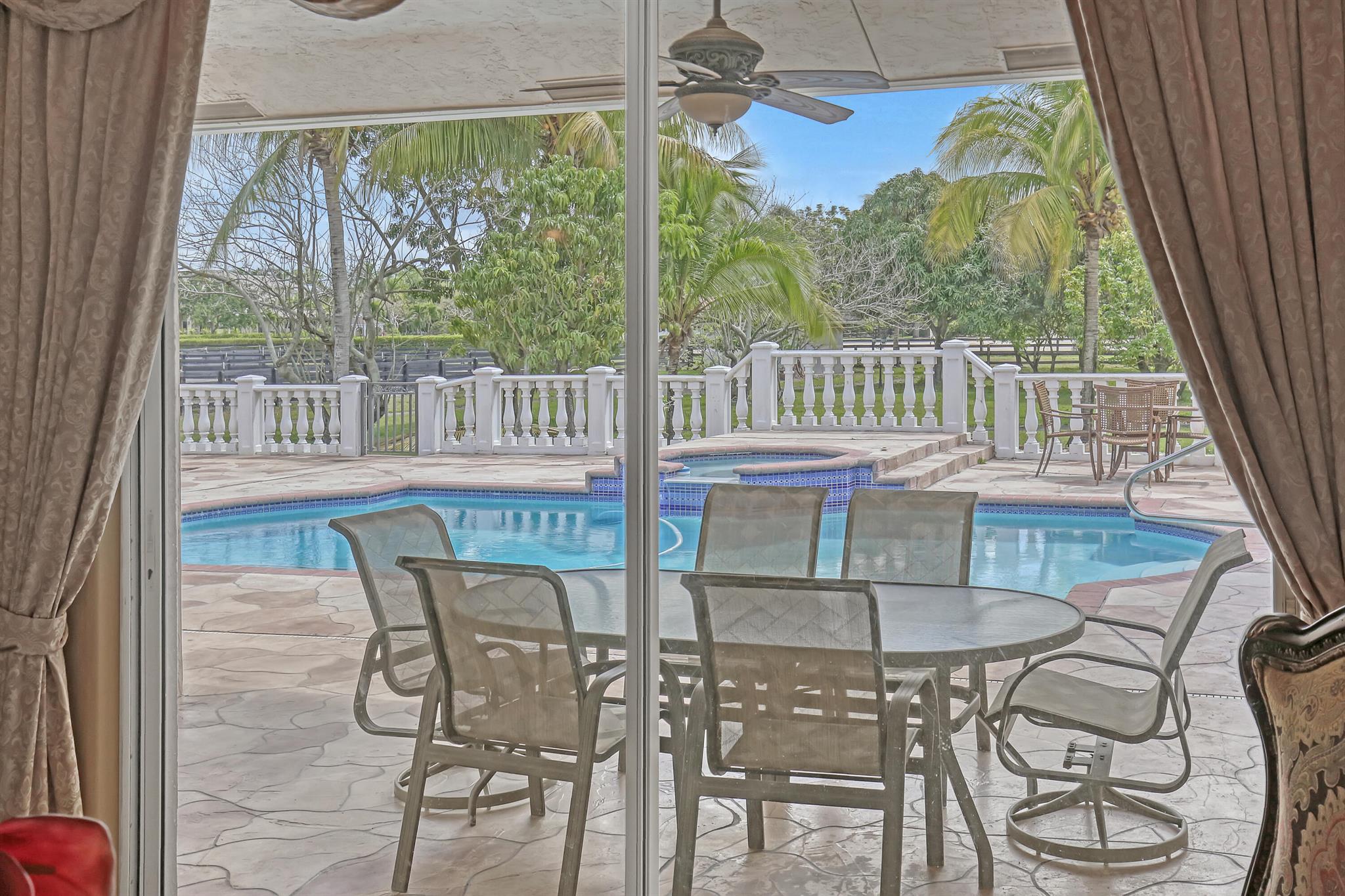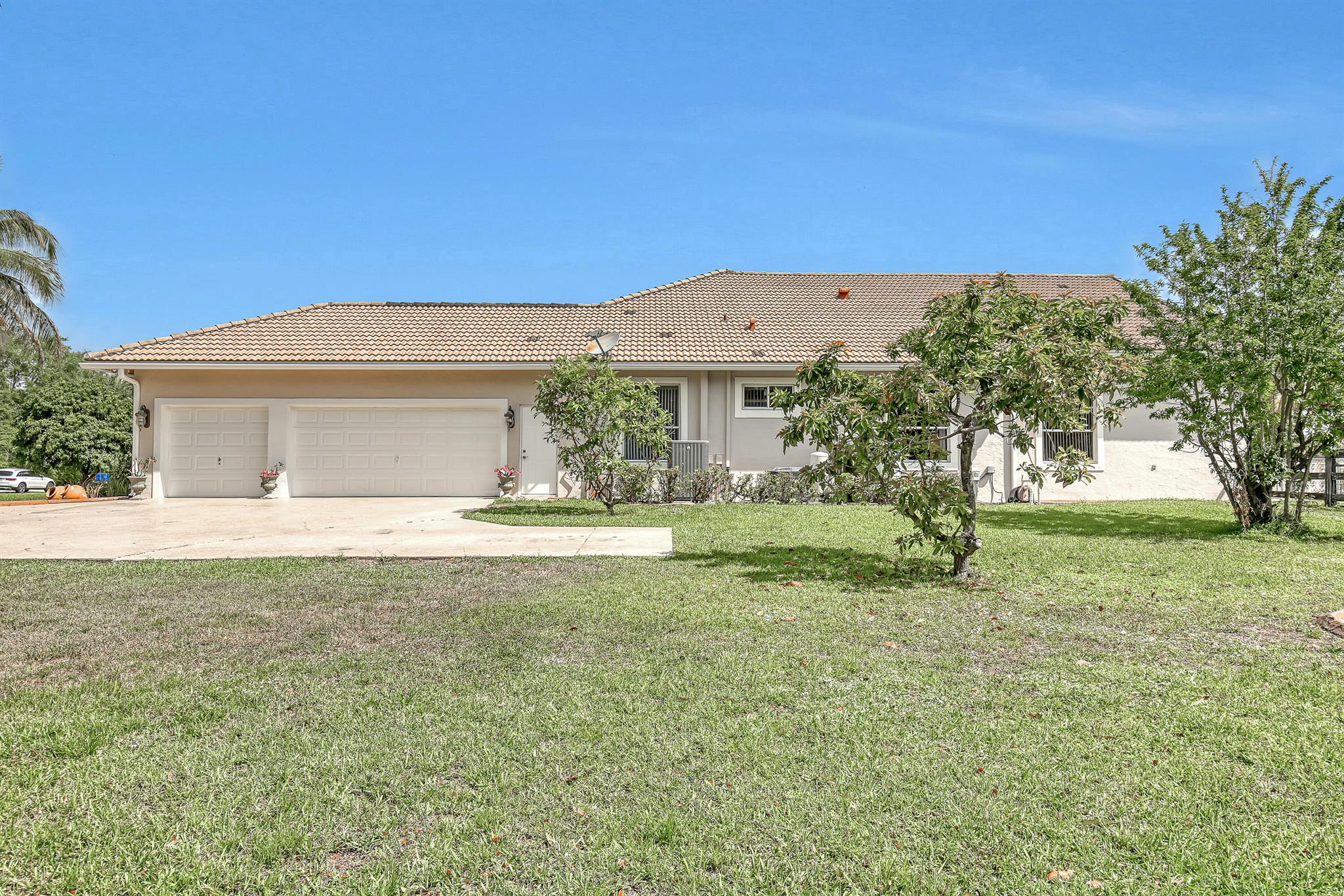 Enjoy all that Wellington has to offer in the beautiful 4 bedroom 3 bath triple split home on 1.91 acres in Paddock Park 2, this property is located on the bridle path and is hacking distance to Wellington International and Global Dressage. This home has soaring ceilings, heated pool with Jacuzzi, summer kitchen, air conditioner and water heater from 2021, washer and dryer from 2022, porcelain tile throughout, attached three-car garage plus additional detached one-car garage.