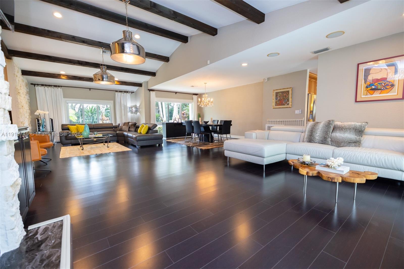 Live, gather and grow in this beautiful, impeccably maintained 4 bed /3.5 bath pool home located on a manicured 16,920 sf lot in Palmetto Bay, one of Miami’s most coveted neighborhoods. Generously proportioned, the living/dining area has vaulted ceilings, powder room and overlooks the pool & patio. The eat-in kitchen has granite countertops, ample cabinetry and wet bar. With 3218 adj sf, the well designed, one level split floor plan offers a primary suite, 2 bedrooms and cabana bath on the east wing and a separate junior primary suite on the west side. Features include impact glass, laundry room, 2 car garage, circular driveway, shed, covered patio, new septic/drain field & sprinkler system, flood zone X and great schools. Once you see it, you’ll feeling it could be your FOREVER HOME.