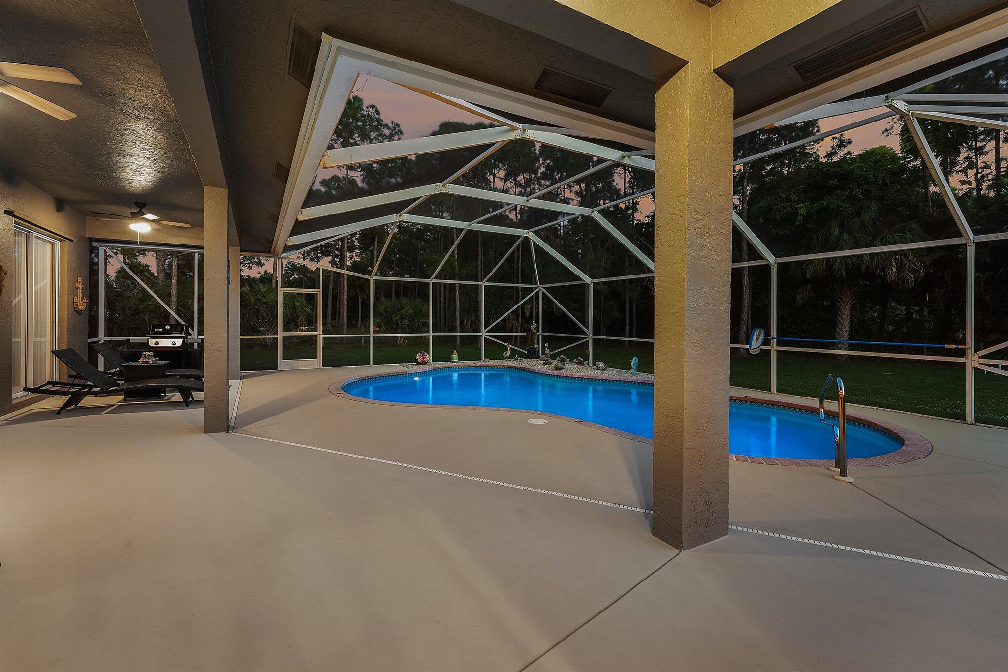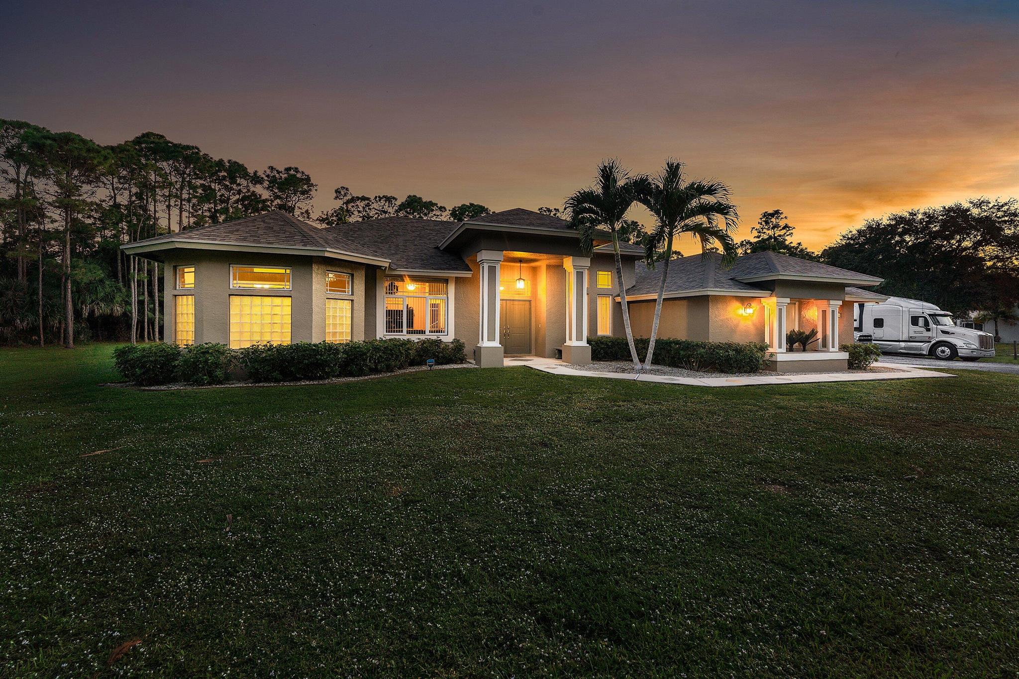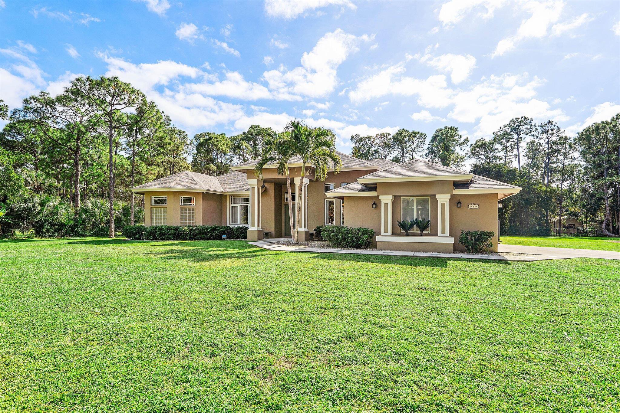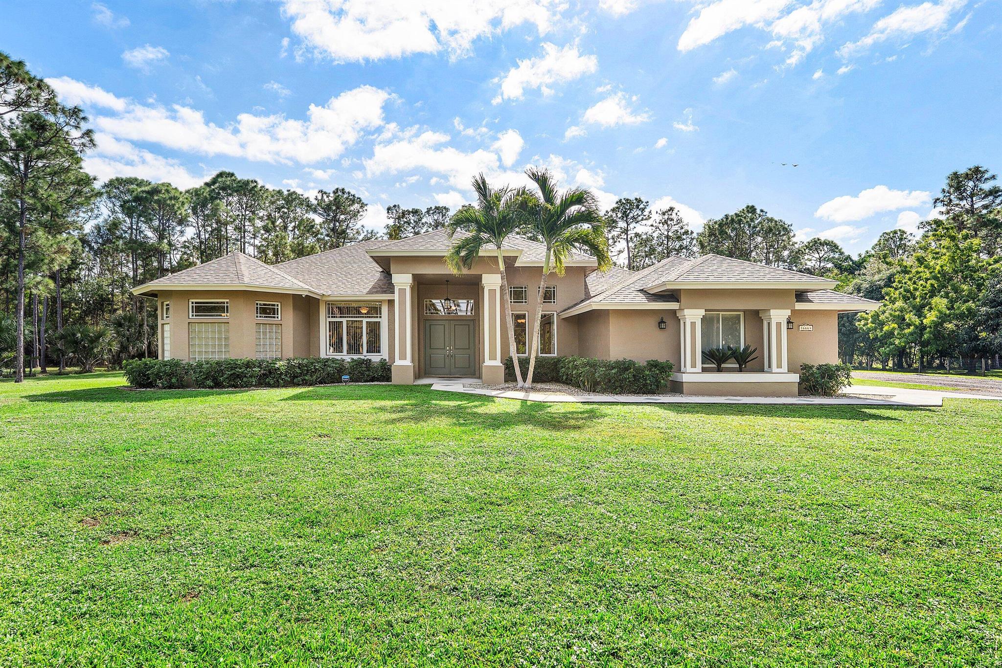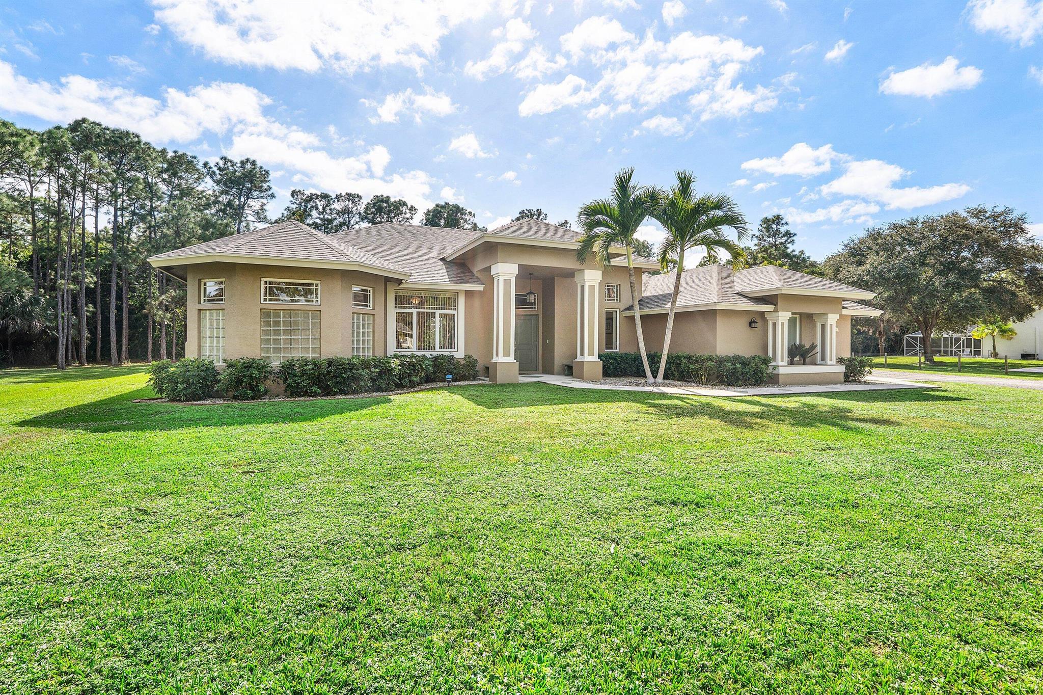 If your looking for an amazing move in ready pool home in the heart of the Acreage than this home is a must see! This stunning 3 bedroom 2.5 bath Vista Builders Cambridge model is the definition of craftsmanship and care. This gorgeous home has been meticulously cared for updated. From the amazing wood & lvp floors to the custom mill-work such as the chair rails and crown molding through out the home, no detail was missed. This stunning home is on a quiet low traffic paved road and features and open 1.18 acre lot that is fenced on 3 of 4 sides. The recently painted home features new exterior light fixtures, a new roof, newer, A/C system, new water heater and so much more. As you step in to this wonderful home you will notice the high ceilings that run throughout the home which give this