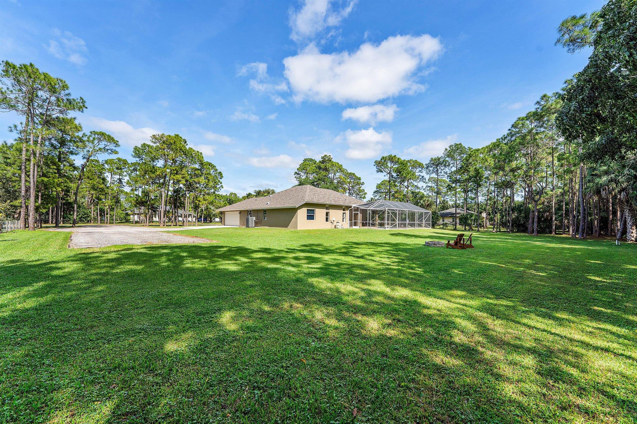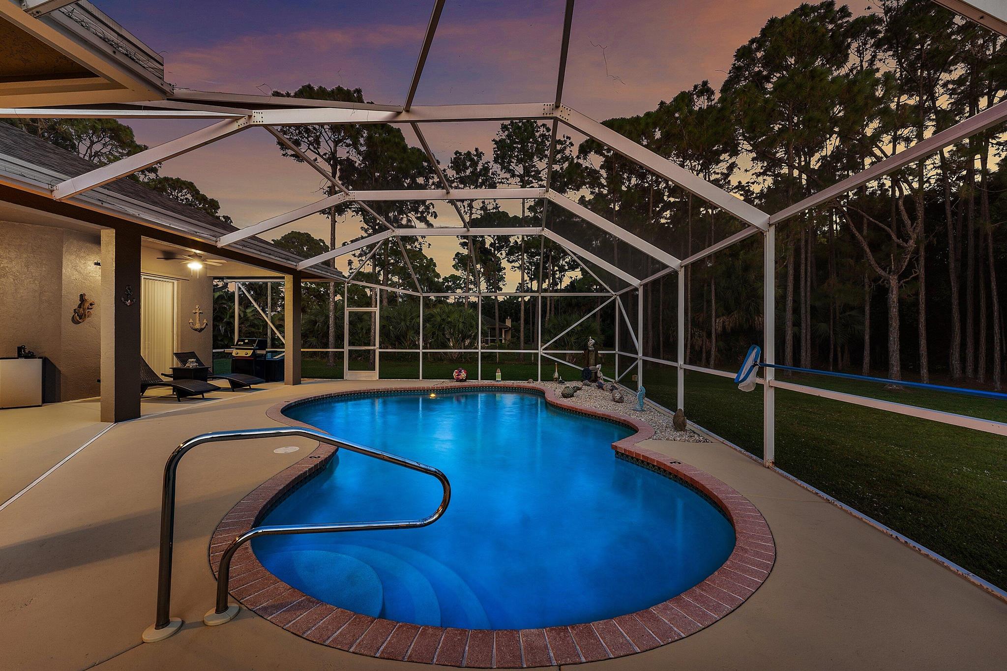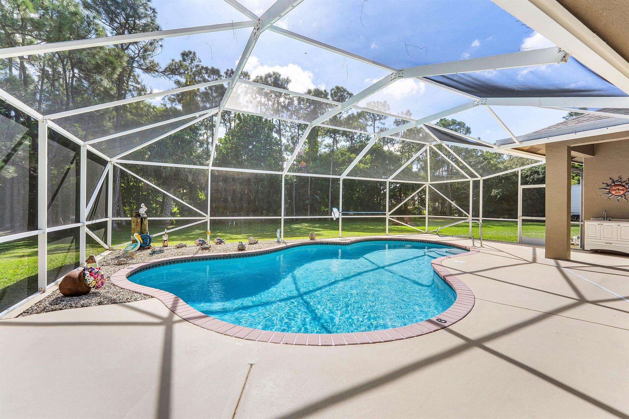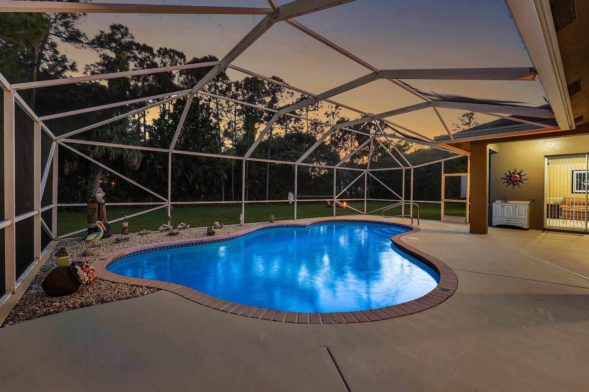 If your looking for an amazing move in ready pool home in the heart of the Acreage than this home is a must see! This stunning 3 bedroom 2.5 bath Vista Builders Cambridge model is the definition of craftsmanship and care. This gorgeous home has been meticulously cared for updated. From the amazing wood & lvp floors to the custom mill-work such as the chair rails and crown molding through out the home, no detail was missed. This stunning home is on a quiet low traffic paved road and features and open 1.18 acre lot that is fenced on 3 of 4 sides. The recently painted home features new exterior light fixtures, a new roof, newer, A/C system, new water heater and so much more. As you step in to this wonderful home you will notice the high ceilings that run throughout the home which give this