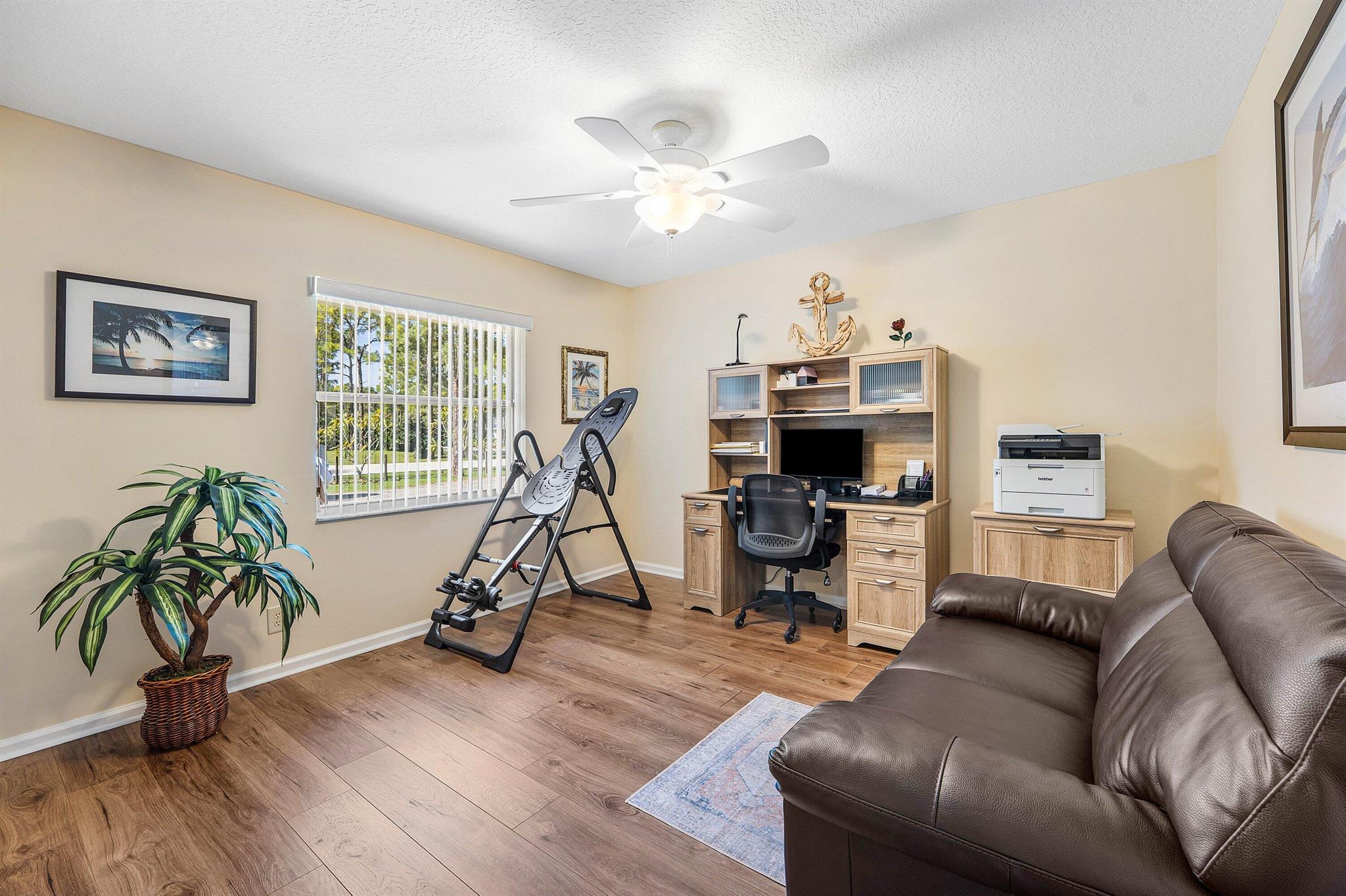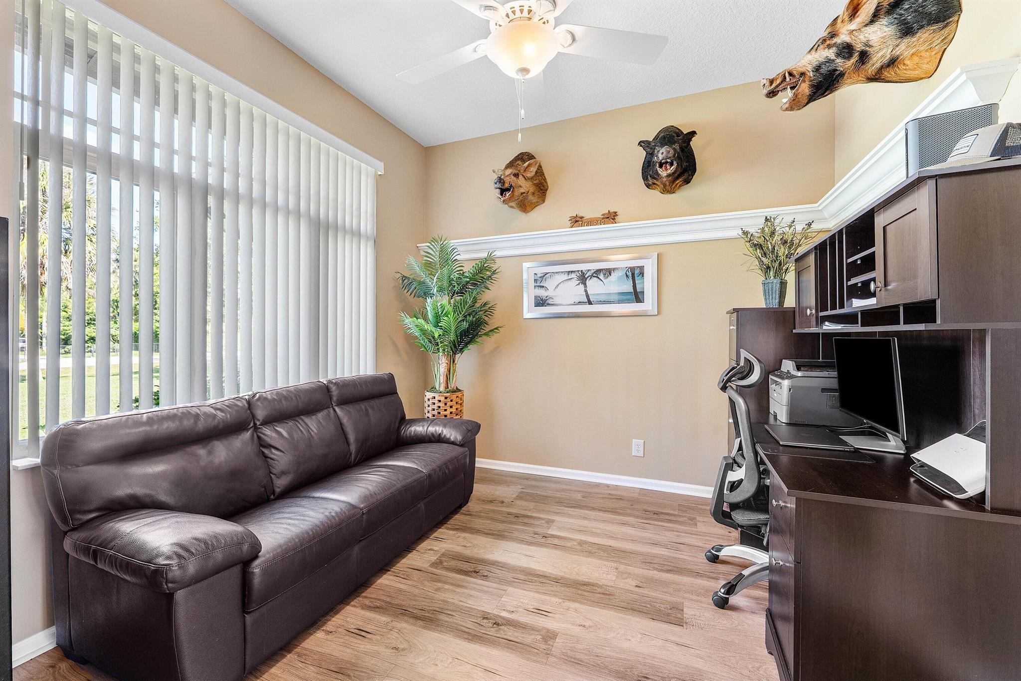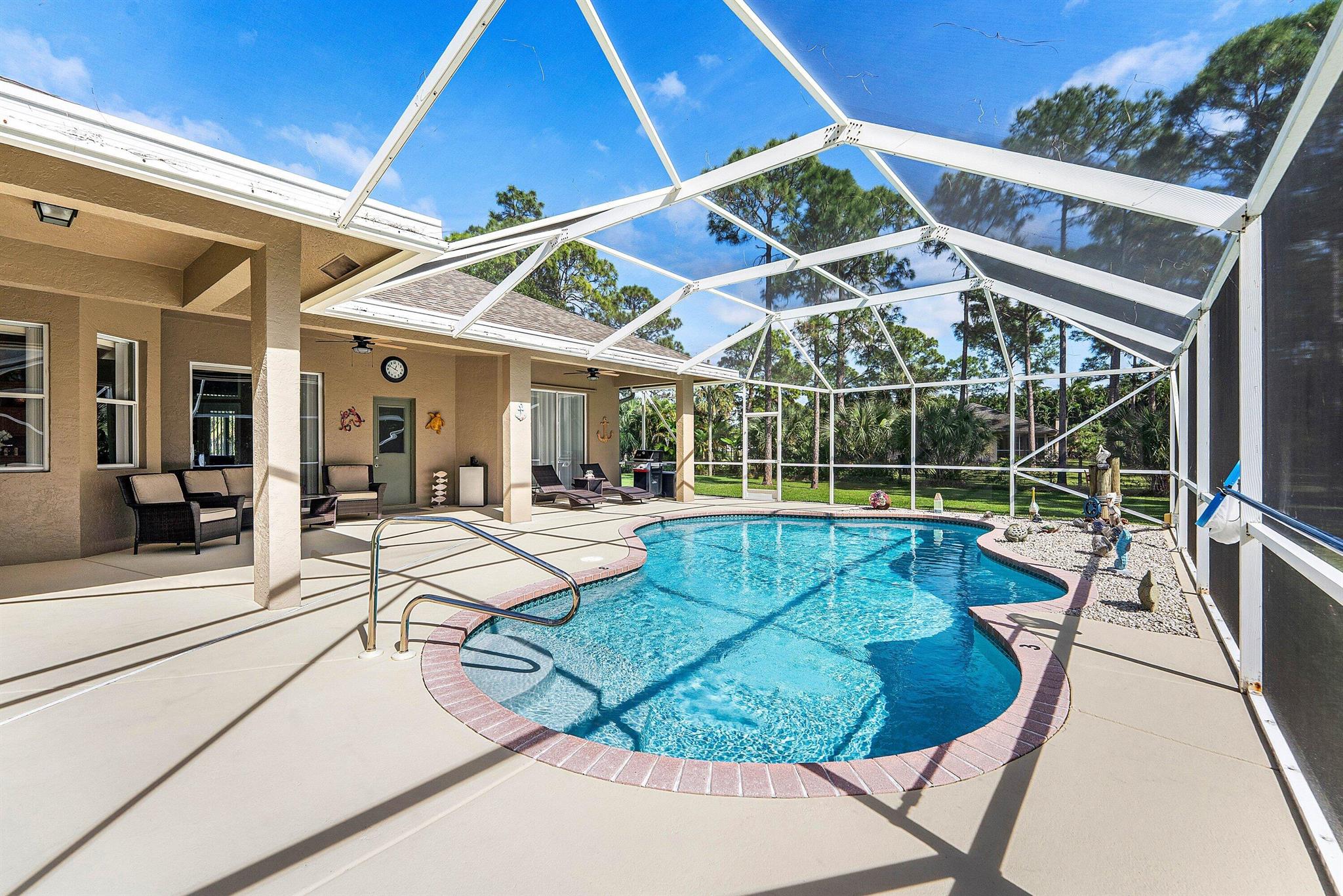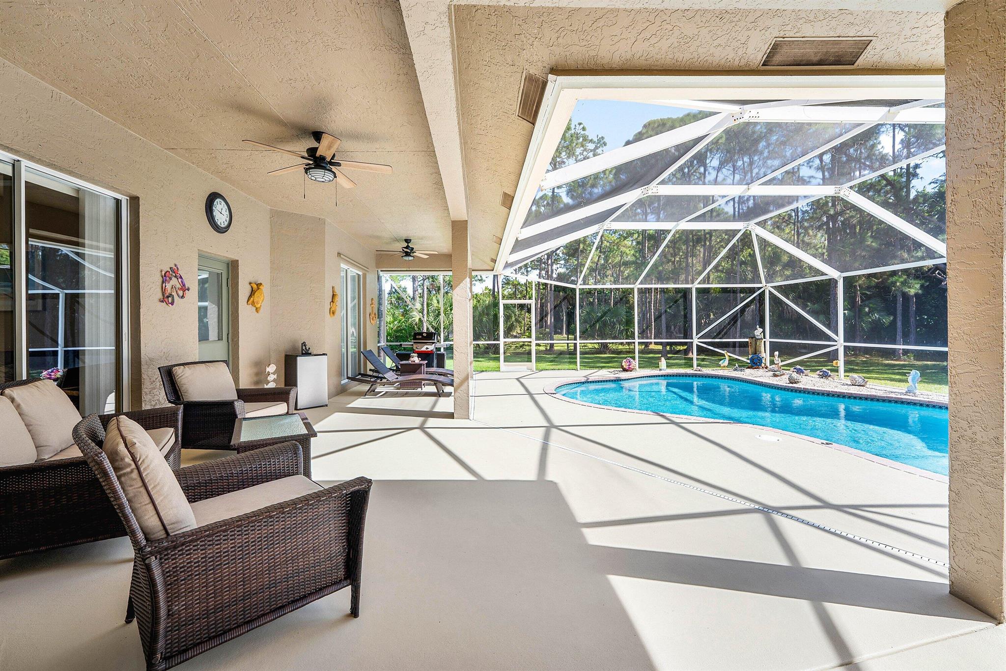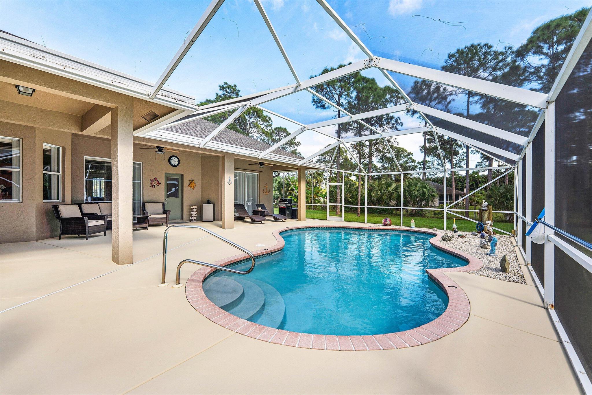 If your looking for an amazing move in ready pool home in the heart of the Acreage than this home is a must see! This stunning 3 bedroom 2.5 bath Vista Builders Cambridge model is the definition of craftsmanship and care. This gorgeous home has been meticulously cared for updated. From the amazing wood & lvp floors to the custom mill-work such as the chair rails and crown molding through out the home, no detail was missed. This stunning home is on a quiet low traffic paved road and features and open 1.18 acre lot that is fenced on 3 of 4 sides. The recently painted home features new exterior light fixtures, a new roof, newer, A/C system, new water heater and so much more. As you step in to this wonderful home you will notice the high ceilings that run throughout the home which give this