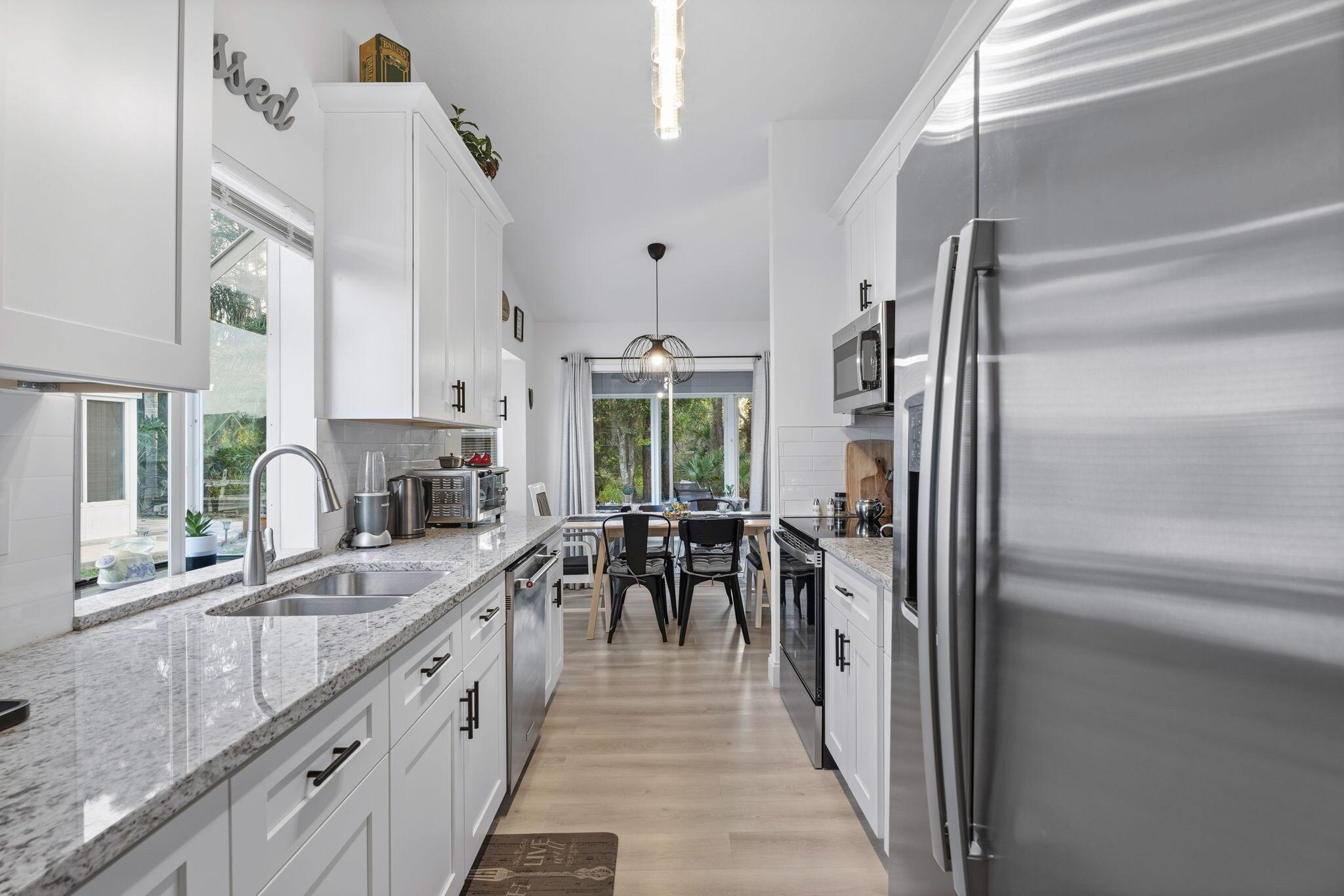 Set within the tranquil 55+ community of Duckwood, this beautifully renovated three-bedroom, two-bath home offers timeless comfort and contemporary ease. The open plan features new luxury flooring and a bright white kitchen appointed with granite surfaces, stainless-steel appliances, and abundant cabinetry. Both baths are reimagined with modern finishes. Beyond the enclosed porch, a lush preserve provides a private natural backdrop for quiet mornings or evening gatherings. With a new roof and meticulous updates, this home embodies the relaxed elegance of Florida living.