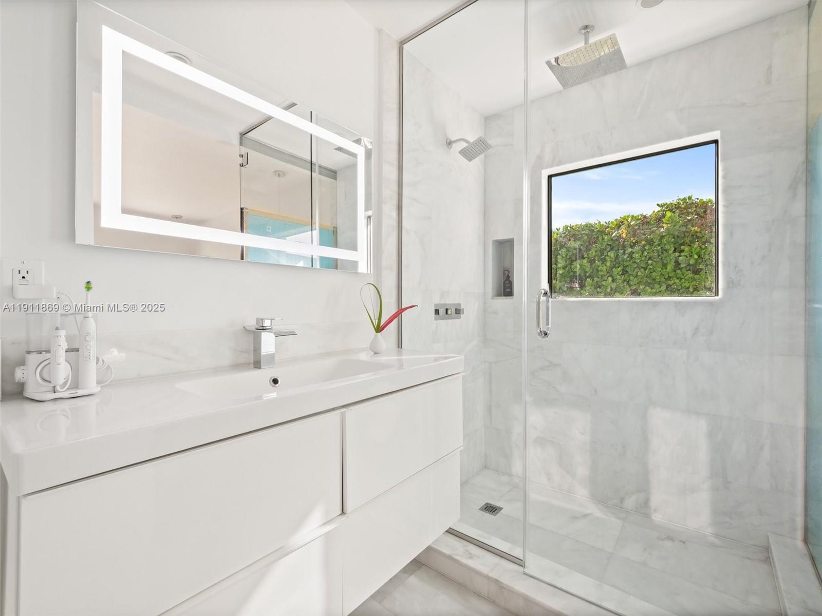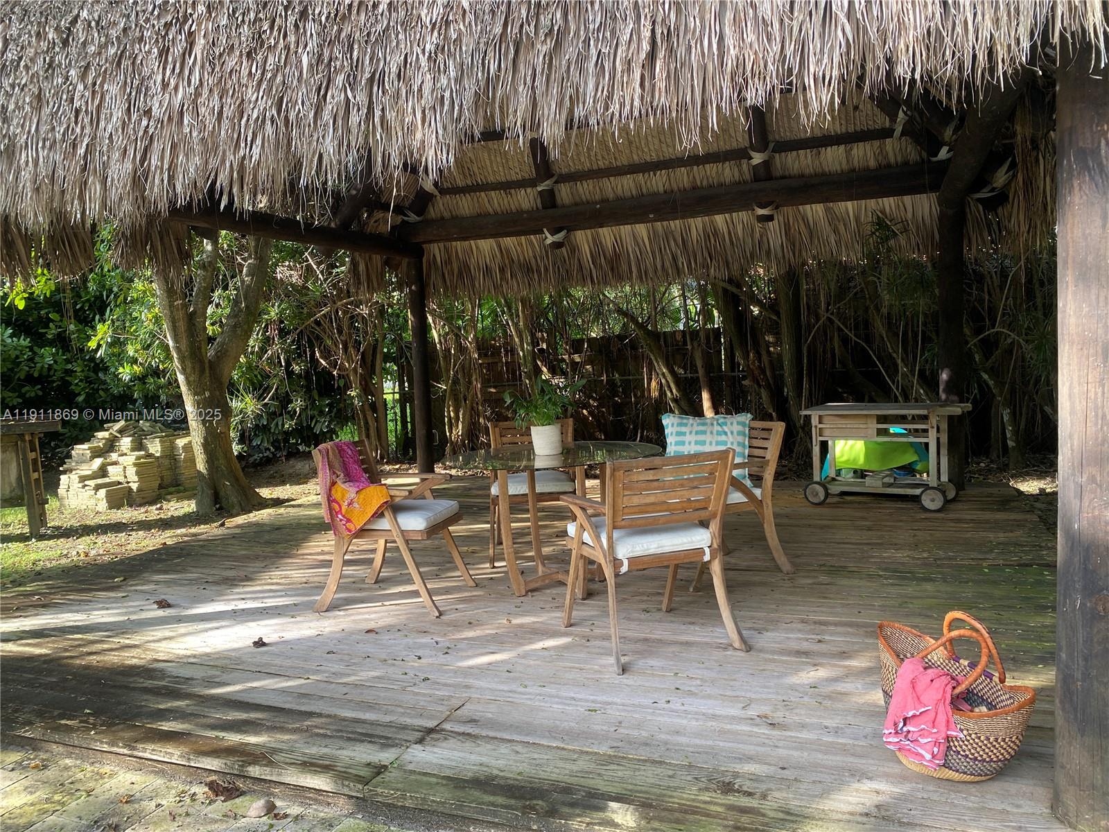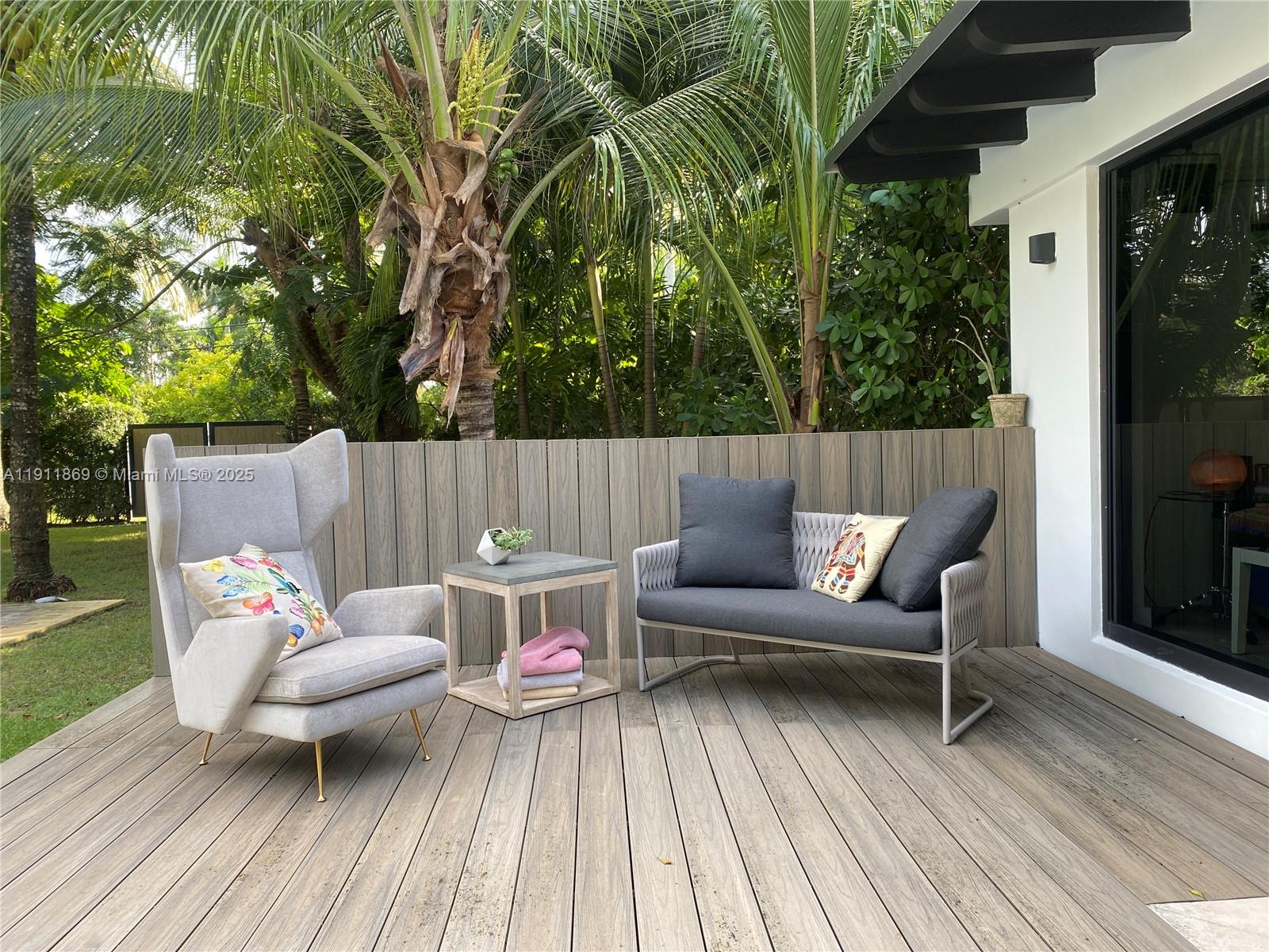 Enter this quiet, tropical retreat with the calming feel of Southeast Asia. Fully Renovated in 2018 this 3 BD/3BA home sits on a 19,600 SF double lot with towering coco palms. Inside, solid oak floors and marble baths ground the home with simple & beautiful materials. The chef’s kitchen opens to a glass-lined living area with views of the garden & pool. The modern home has impact doors & windows, a new roof, and sky lights. A wide deck offers space for meditation or lounging. The tiki hut creates an easy outdoor living area, perfect for relaxing in the shade, reading, or dining. The large salt water pool completes the outdoor sanctuary. The entire setting feels blessed and transportive. Located in El Portal, where streets are lined w mature shade trees and time moves a little slower.