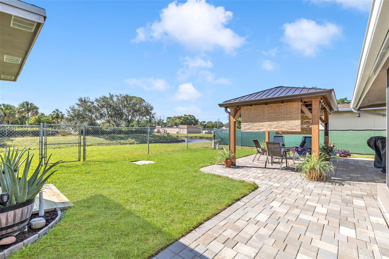 Welcome to paradise! Pride of ownership shows with this well-maintained home! Completely renovated 3/2 waterfront home awaits you! Neutral 24x24 tile throughout. Complete hurricane protection for peace of mind. Gourmet kitchen offers glass tile backsplash, SS appliances, granite countertops plenty of cabinets, & island for casual dining. Both bathrooms tastefully updated. So many upgrades to this amazing home. Here are a few...new roof 2023, new AC 2022, exterior painted 2025, new electrical panel 2023, new water heater 2019, solar panels & cast-iron pipes replaced in 2024. Retreat to the backyard oasis with view of water, complete with a 14x10 gazebo. Fully fenced yard & separate screened patio. Huge shed for extra storage. Close to shopping, eateries & walk to elementary school. No HOA.