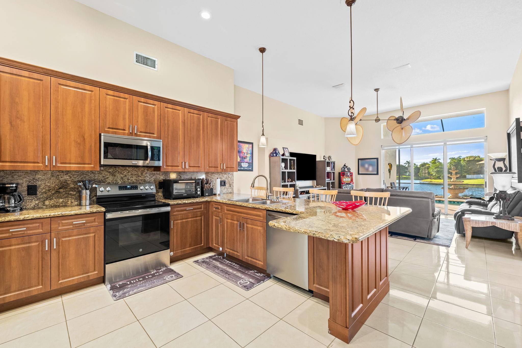 Stunning Lakefront Home, screened-in lanai complete with salt water pool, and spectacular water and sunset views and additional side yard, ideal for kids and pets. Open-concept Kitchen-Family Room plus separate living room. A-rated schools. Recently Renovated Clubhouse, with Gym, Tennis, Resort Style Pool, Jacuzzi, Sauna, A MUST SEE - One of finest homes offered in Boca Isles!