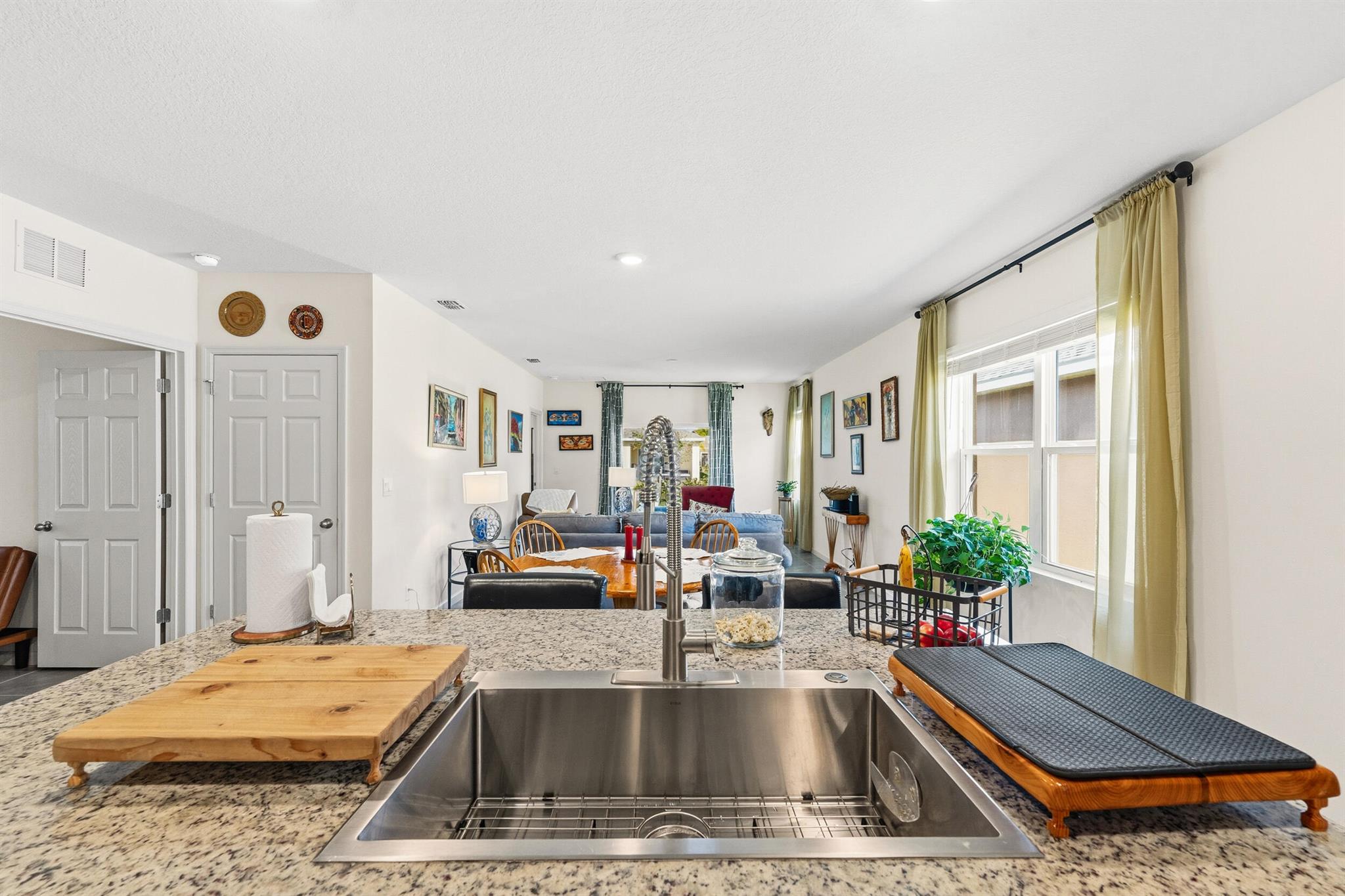 Welcome home to this 3 bedroom 2 bath 2 car garage home in Central Park. An amazing floor plan that is open layout where entertaining is inviting if not encouraged. White cabinets with granite countertops, stainless appliances and a pantry made for a home chef to store all of their accoutrements for masterfully creating the most perfect of meals. Tile flooring throughout the living areas, carpet in the bedrooms for cozy feet to walk on. The garage is also a place of pristine where the floor has been upgraded to EPOXY FLAKES and ready for its next creative tinkerer to work in. The community has an amazing clubhouse with a RESORT SWIMMING POOL, splash pad, game room, craft room, bar with tv, sidewalks, walking paths, tennis, dog park, and more. Watch the video of the community attached.