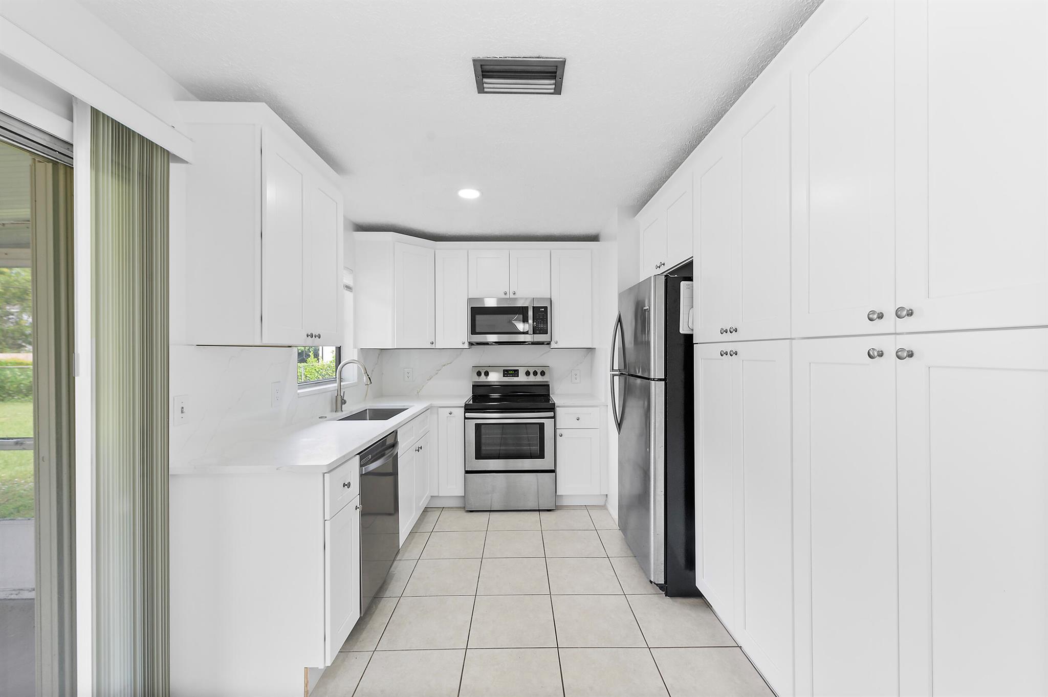 Beautifully updated 2-bedroom, 2-bath home with a new 2024 roof and 2025 AC. This property features a renovated kitchen and bathrooms, stainless steel appliances, quartz countertops, a new garbage disposal, and extra soft-close cabinetry for added storage. Tile flooring throughout, new light fixtures, and accordion shutters for full hurricane protection. The spacious, fully fenced backyard offers plenty of room for a pool, perfect for entertaining or relaxing outdoors.Conveniently located near I-95 and close to shops, supermarkets, and schools, this home offers both comfort and accessibility. Move-in ready and beautifully maintained, this one's a must-see!