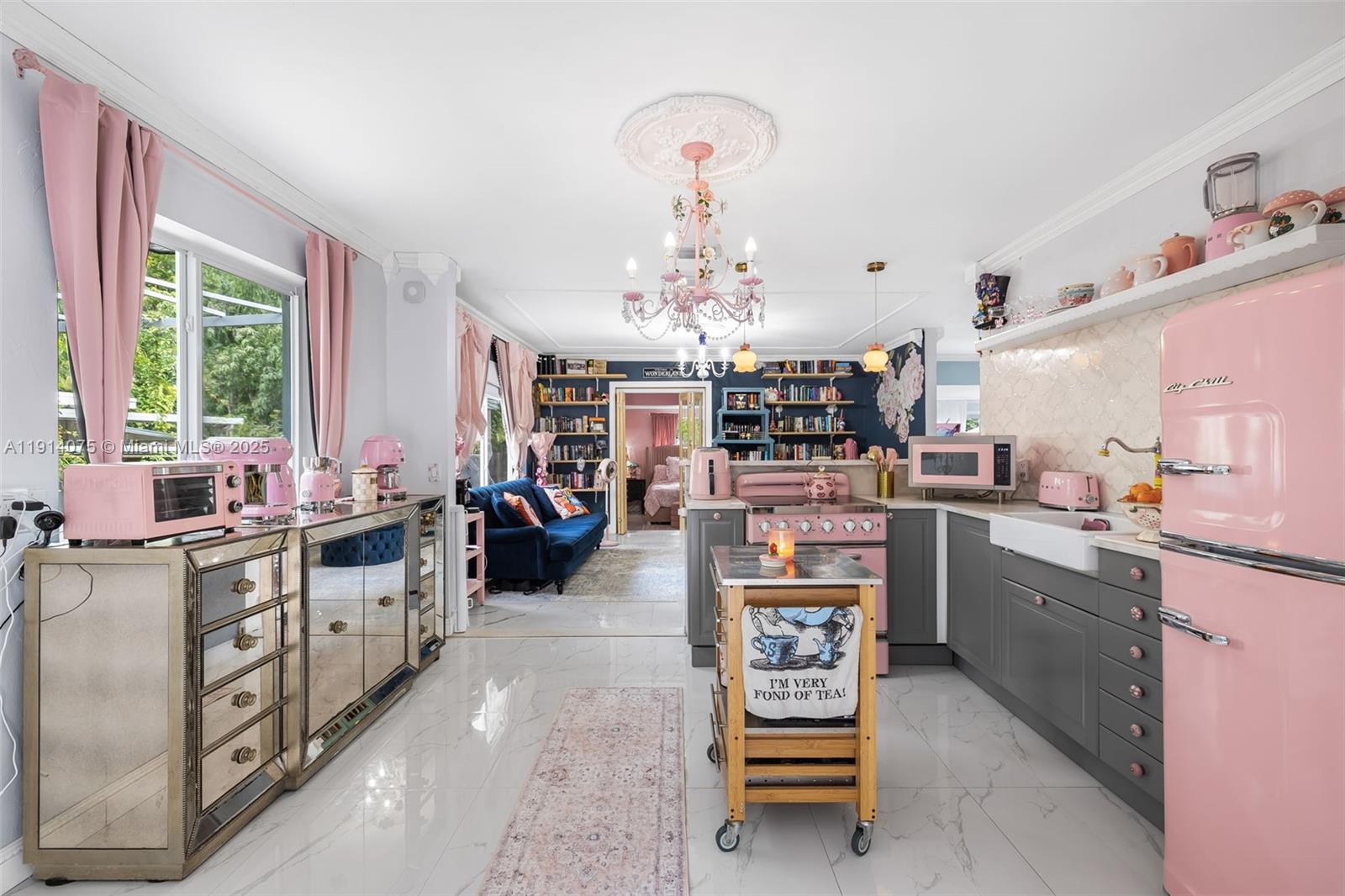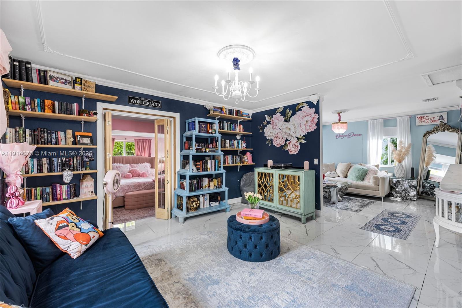 A charming one-story home on an exceptionally deep, tree-lined lot just blocks from Coral Gables and Douglas Park. Located on a quiet street, this property captures the essence of Florida living with mature trees, lush shade, and an enchanting “Alice in Wonderland” atmosphere that makes every corner feel whimsical and full of possibility. Inside, upgrades include an updated kitchen and bathroom, new flooring, new roof, and impact windows. Sitting on a rare, extra-deep double lot and zoned duplex, the property offers options to add a second floor, build a new duplex, create a guest house, expand the home, or simply enjoy it as is—an excellent opportunity for both homeowners and investors