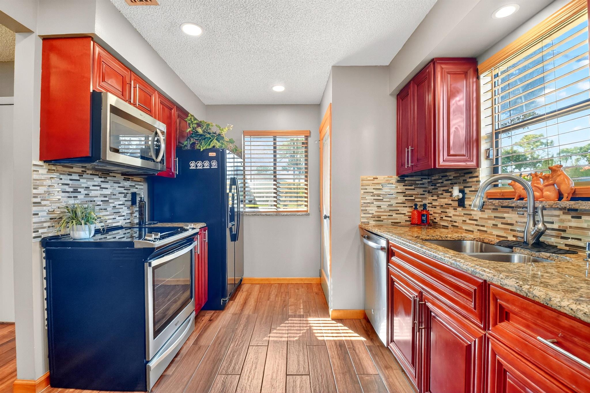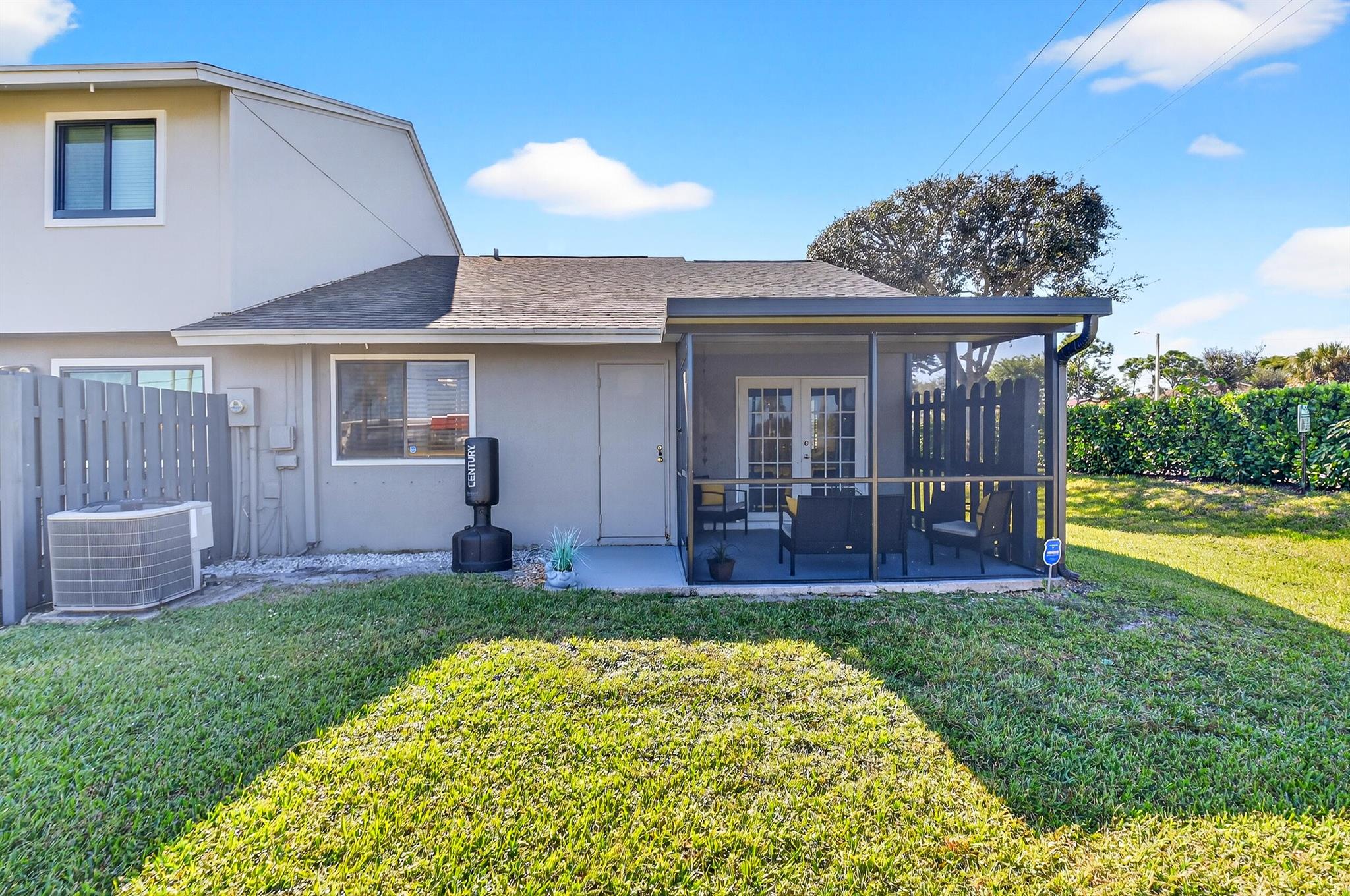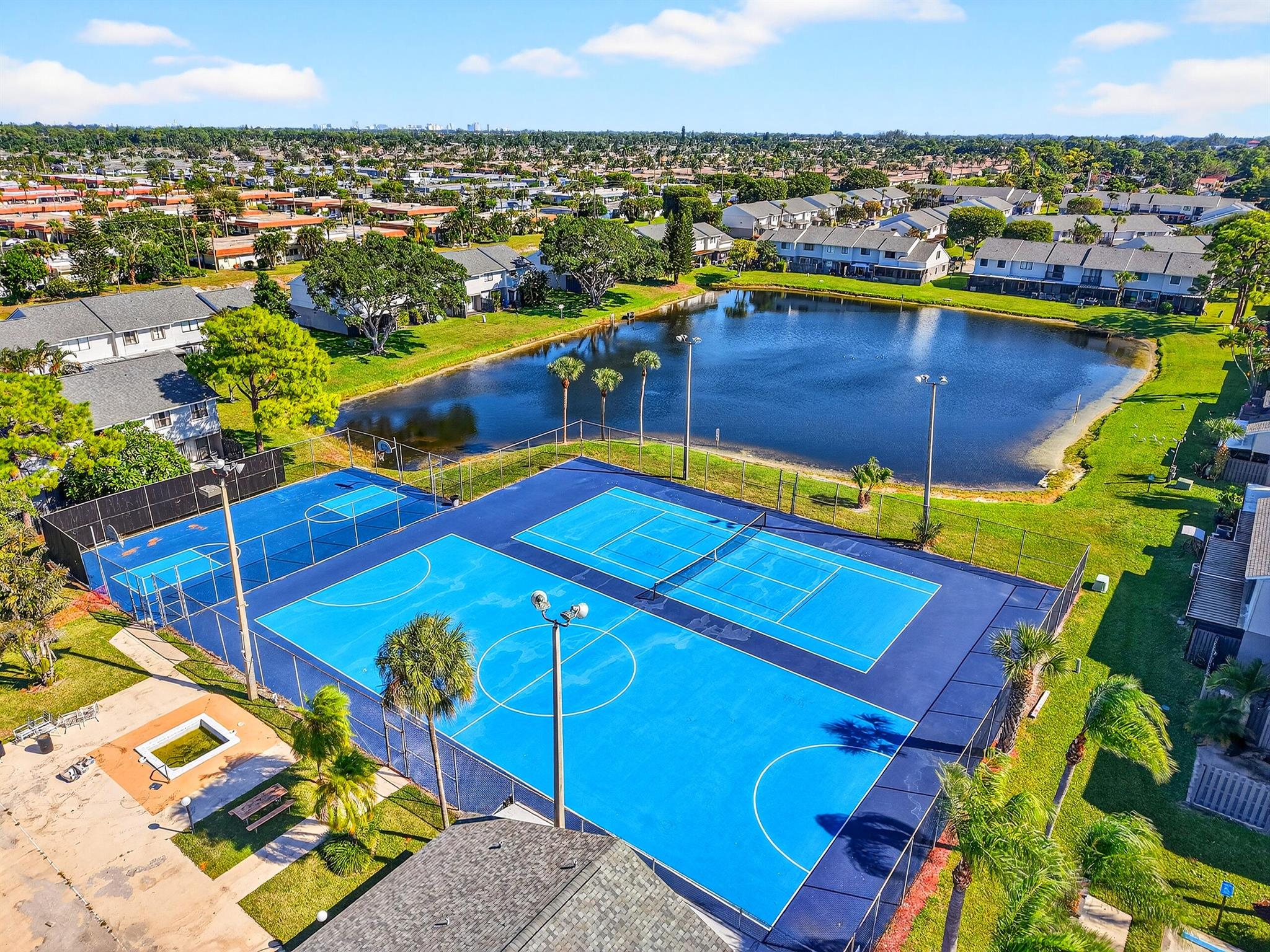 Beautiful upgraded end unit townhouse in centrally located community. As you enter this home, you will notice that it is meticulously maintained and features updated kitchen with high hat lighting, new cabinets and granite counter tops. The kitchen opens into the dining/living space which leads out to the screened patio. This end unit offers added privacy, which is great for entertaining Both bathrooms have been nicely renovated. It is tiled throughout with both bedrooms featuring large closets and ceiling fans. The community offers a pool, which is being renovated, as well as tennis/pickleball courts and a large club house. The unit has a front patio and a back screened in patio. The roof was replaced in 2023. Furniture is negotiable. TVs do not convey.
