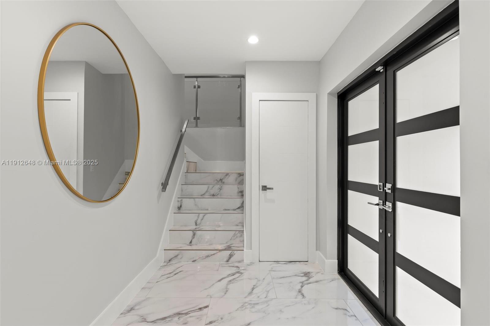 Unique and fully renovated 4/3 tri-level home in the guard-gated Country Club of Miami Estates with 24-hour security. Filled with natural light, this home features panoramic golf course views, a resort-style heated pool, spa, and a teak deck with heated built-in hot tub. Interior highlights include a Jenn-Air kitchen with paneled appliances, quartz countertops with large island, glass-enclosed wine display, and an impressive entertainment/theatre room with full bar and cabana bath access. The downstairs primary suite offers a spa-style bath with soaking tub and private garden views. Upstairs includes a balcony bedroom with golf views and a walk-in closet room that can convert back to a bedroom. Roof & AC 2016. Impact windows/doors and upgraded landscaping complete this exceptional home.