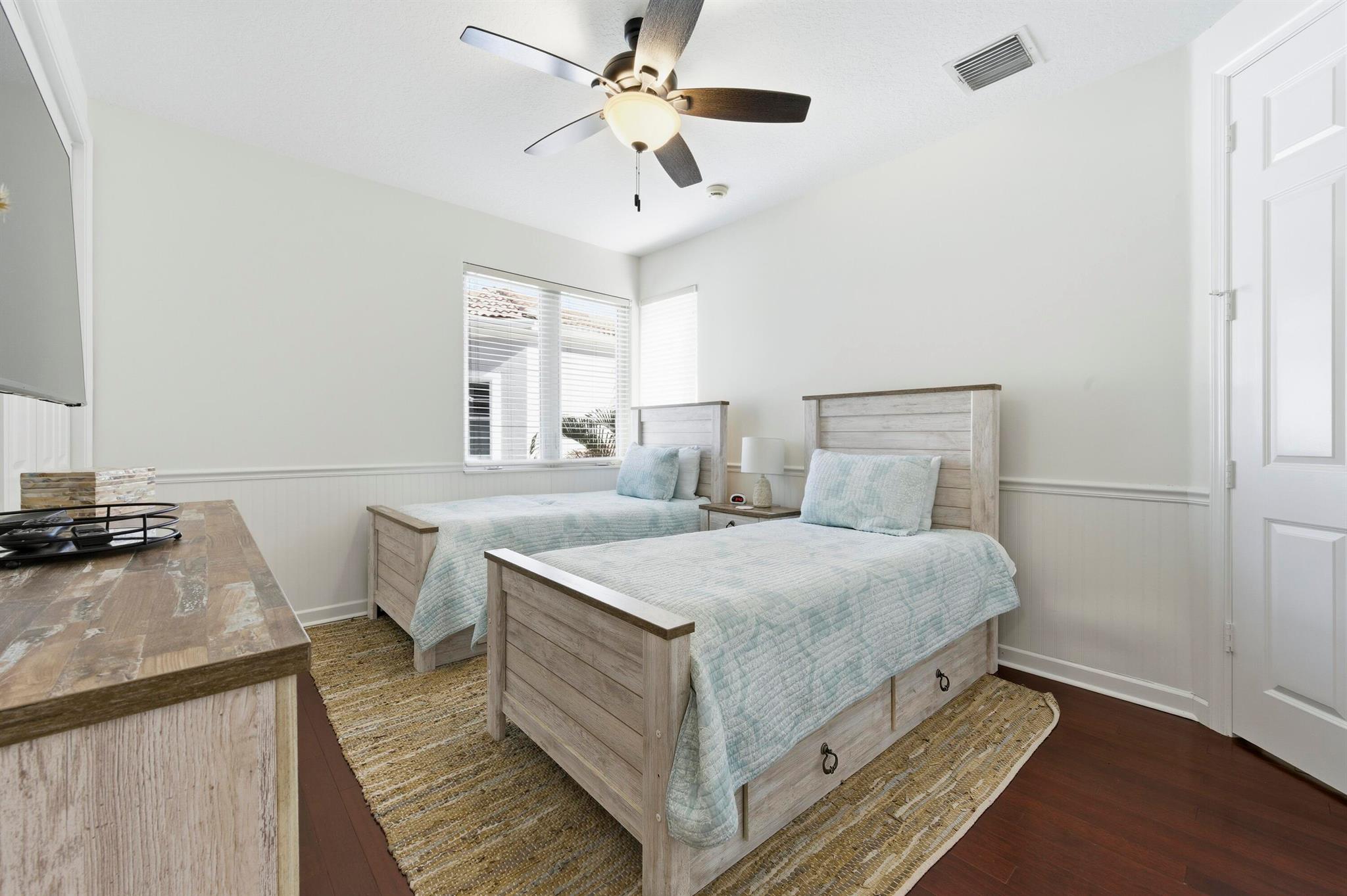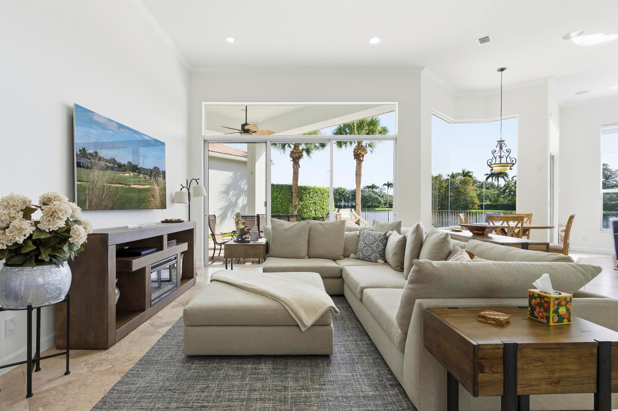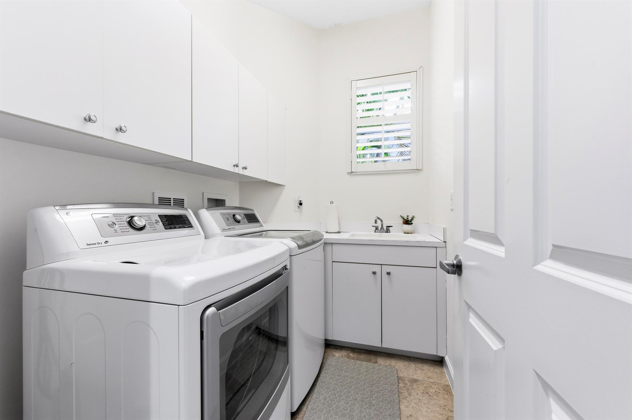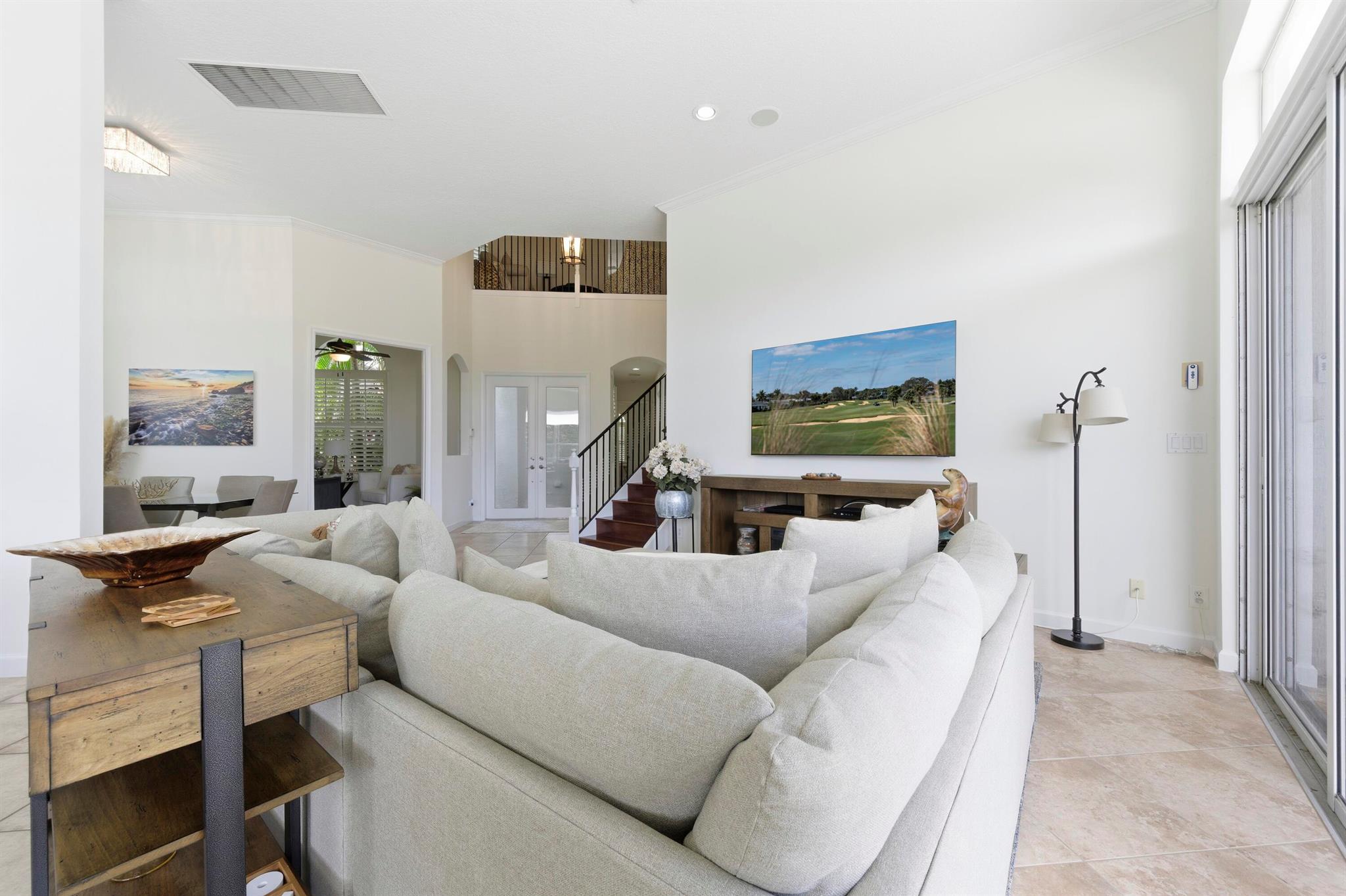 Step into this 4 bedroom plus loft and office/den on a beautiful lake. This extremely light,bright home features a redone kitchen with new cabinets, counter and subway tile backsplash. The stainless steel appliances and island sink have all been updated. The open spaces give you a view of the lake in many rooms in this home. The primary bedroom and another guest suite and office/ den is downstairs . There are 2 guest bedrooms with a jack and Jill full bathroom and a loft for your guests to enjoy upstairs. The backyard has a pool and spa and a lanai looking at the lake where there is a small pier for fishing or just taking in the lake view . There is a grassy area for children or dogs to run. Come see this well cared for, open airy space floorplan for absolute relaxation and enjoyment!!
