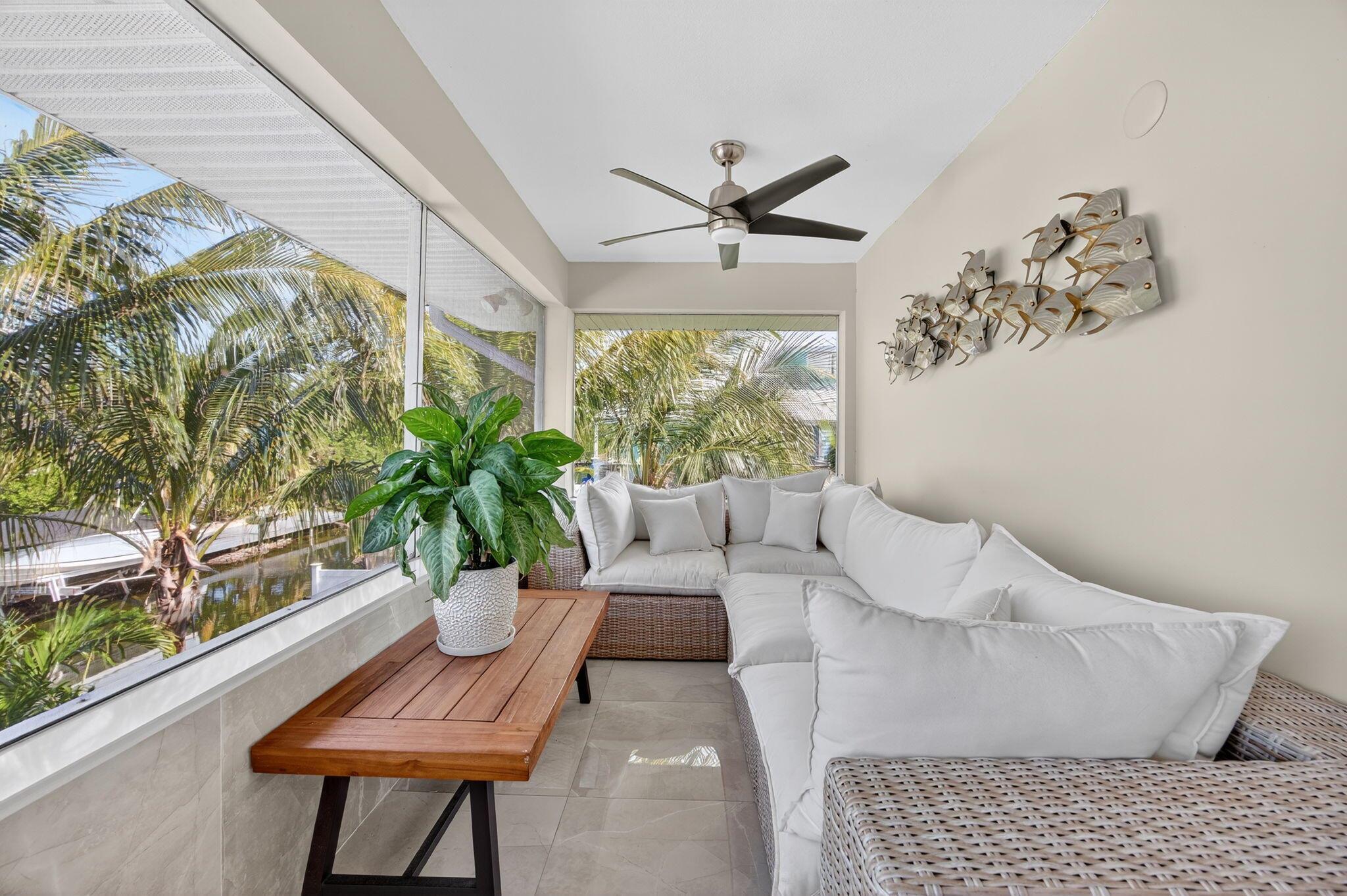 Tropical Keys Oasis -- Waterfront Luxury Living -- Come experience this one-of-a-kind tropical oasis that feels like living at a Keys resort. Surrounded by lush landscaping, vibrant grass is the backdrop for nine coconut palms, five banana trees, two mango trees, and an avocado tree, this property bursts with natural beauty. Vibrant bougainvillea archways create a stunning entry to one of the most exquisitely landscaped homes on the island. Enjoy 60 feet of waterfront with an expansive maintenance free deck, a 15,000-lb boat lift for up to a 33-foot boat and a drop dock perfect for swimming in the lagoon or launching kayaks. Outdoor living is elevated to the next level--exactly what you'd expect in the Florida Keys. Inside, discover a newly renovated beautiful 4-bedroom