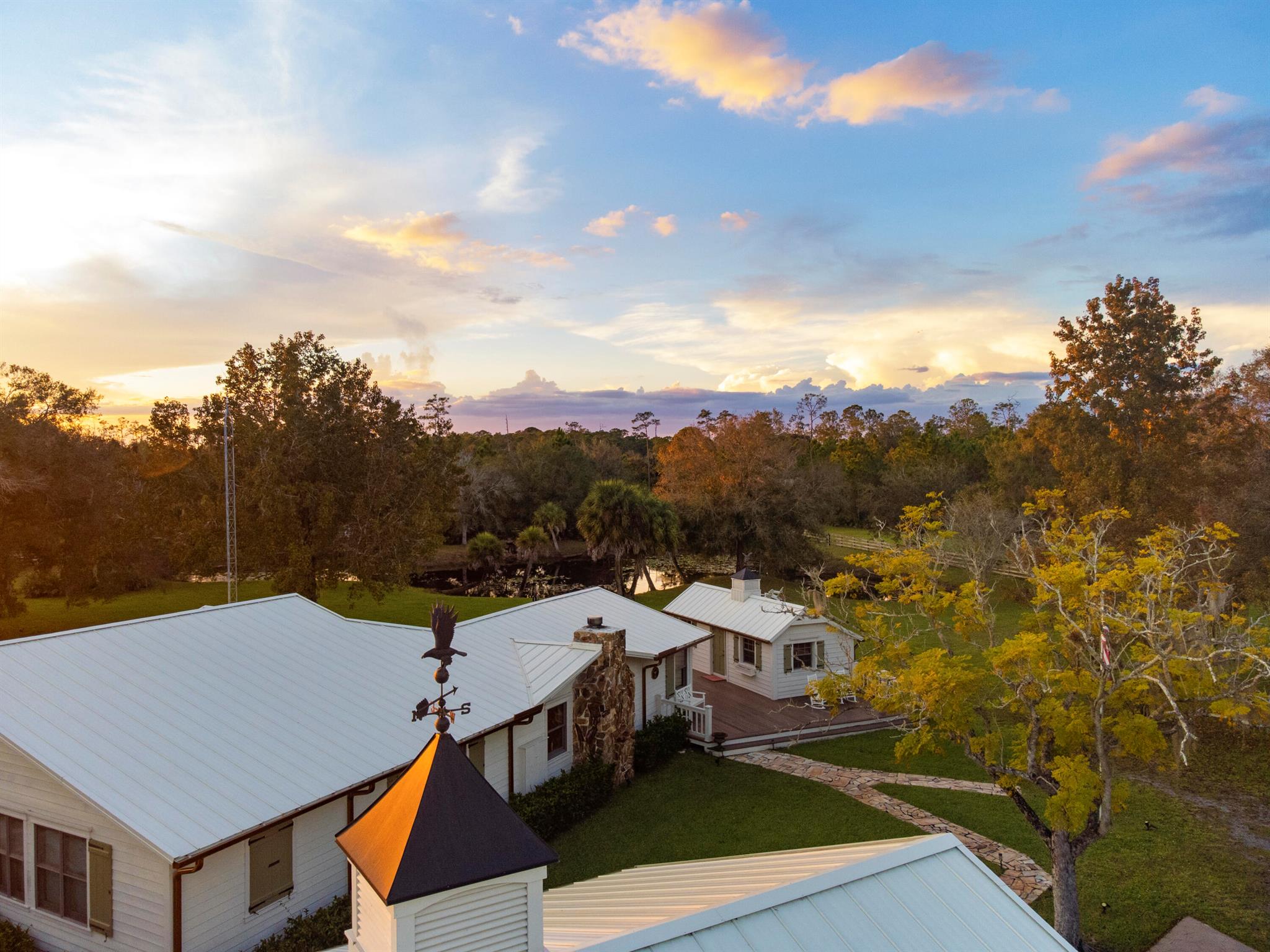 Step into a life less ordinary in this designer-owned escape on 5.13 pristine acres in Florida's most unique community. A beautifully appointed main residence and guest cottage tucked beneath ancient oaks. Every corner reflects warmth, serenity, and connection to nature. Beyond the doorstep lies a world unlike any other: 3,000 acres of private land with over 150 miles of off-road trails, stocked fish ponds, stables, horse ring, skeet shooting, rifle range, and big game hunting reserved for members. Enjoy pickleball and tennis courts, pool and fitness center with yoga, lodge, restaurant, outdoor chapel, grills, and charming Beer Tree, where neighbors become lifelong friends. Fly in via private air strip/hangar. On-property pond, golf, and barn w/ stables. A legacy of freedom and tradition!
