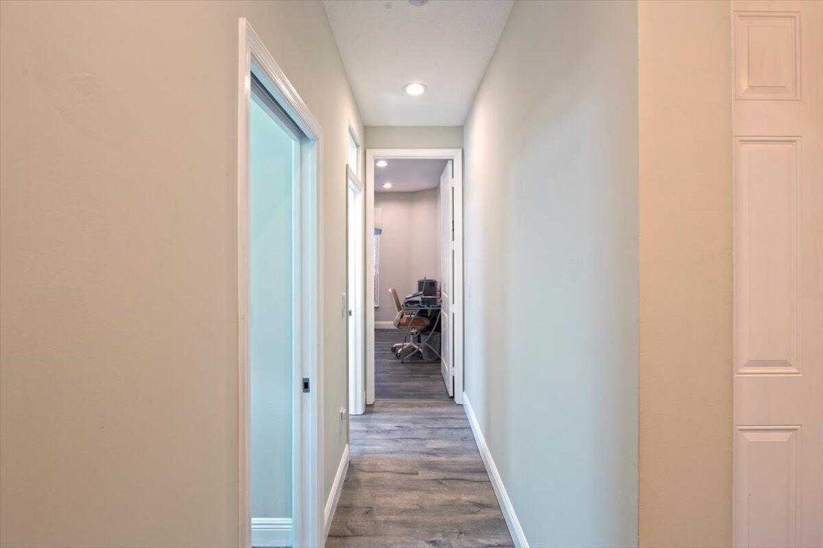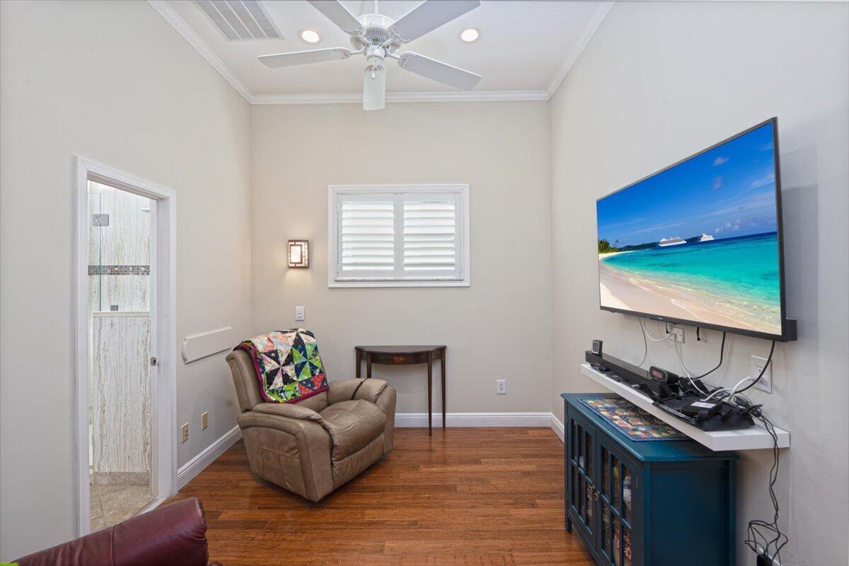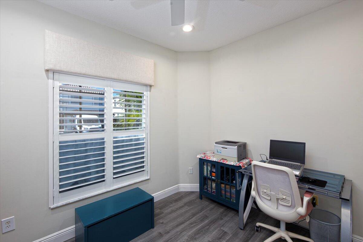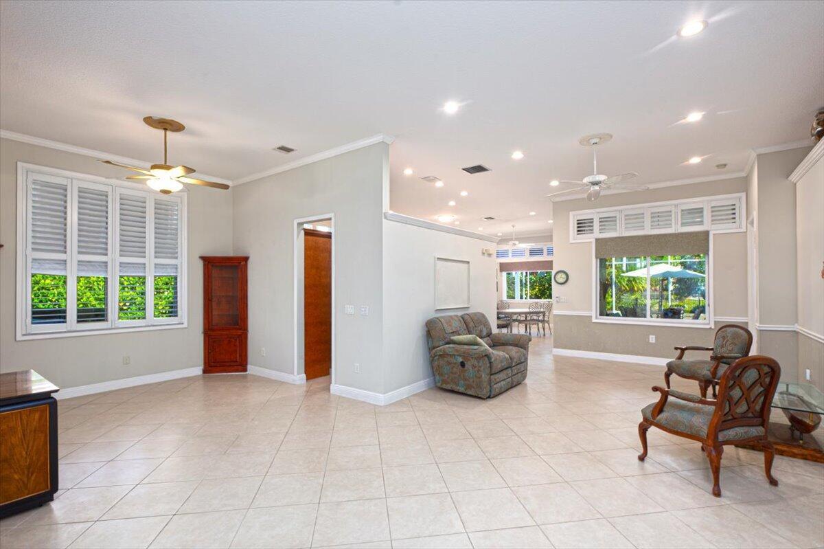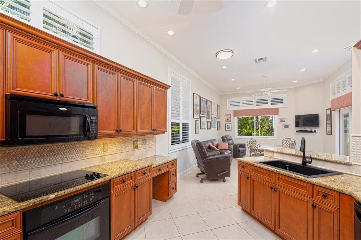 Stunning CBS 3 bed/2bath + DEN lakefront home in TownPark at Tradition. Step through the covered and screened entryway into double front doors to find yourself greeted with ceramic tile flooring throughout the main living areas and a spacious great room with crown molding. The versatile kitchen was built for function/flexibility, and features granite countertops w/ a custom Italian tiled backsplash, custom wood cabinetry with copious storage space, and a breakfast bar/nook for easy dining. The master suite features voluminous ceilings, two walk- in closets, lakefront views, and an ensuite bath complete with dual sinks and a separate walk in shower. The covered and screened lanai features views of an expansive and serene lake. Fenced in yard and impact window/accordion hurricane shutters.