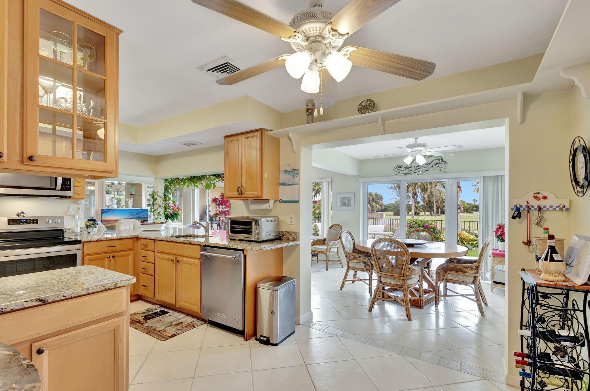 This immaculately maintained Midcentury home is nestled along the northern end of the golf course in Eden Place. Meet the day with a cup of coffee in hand watching the sunrise over the Intracoastal and golf course. This solid CBS constructed home is 2 bedrooms, 2 baths, the primary bedroom featuring an en suite bath, and two living areas, plus a large 11 by 9 dedicated laundry room with abundant pantry storage, and an attached 2-car garage. Every room looks onto the golf course through large picture windows. There is expansive outdoor space. The 32 foot by 12 foot patio deck overlooking the course has a retractable awning, making this a beautiful outdoor room to enjoy in any weather. Don't miss this opportunity to own a piece of paradise! Hip and artsy downtown Lake Worth Beach